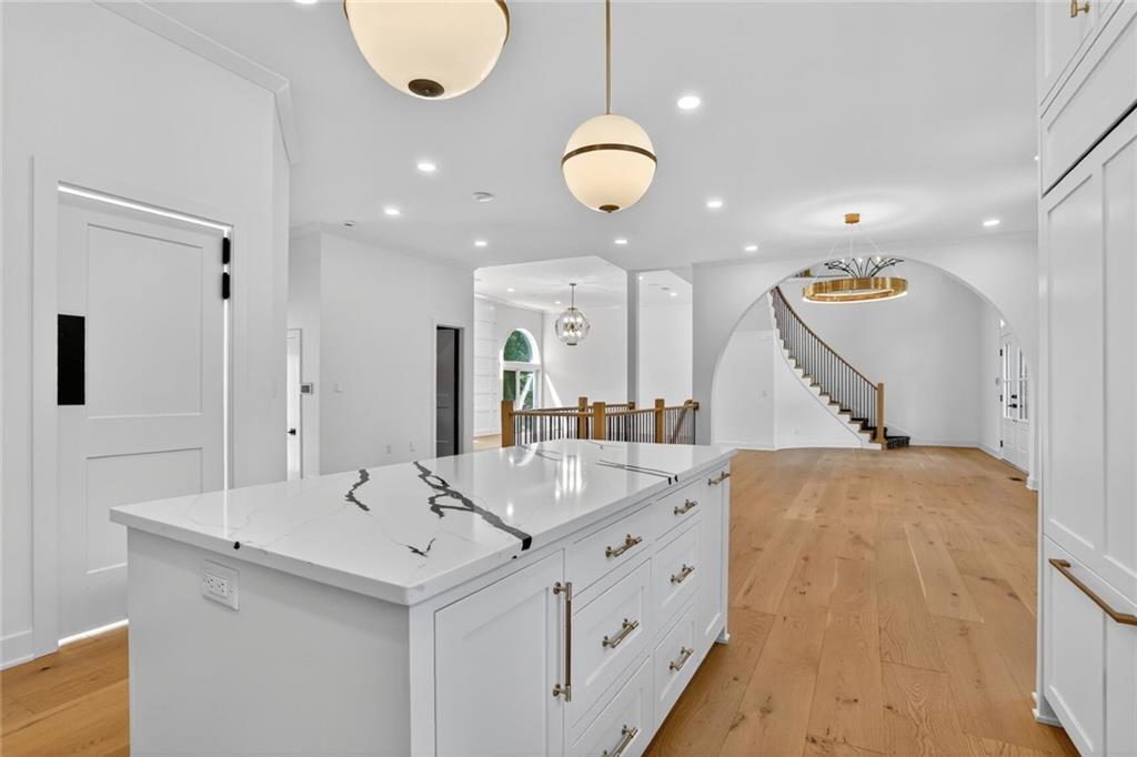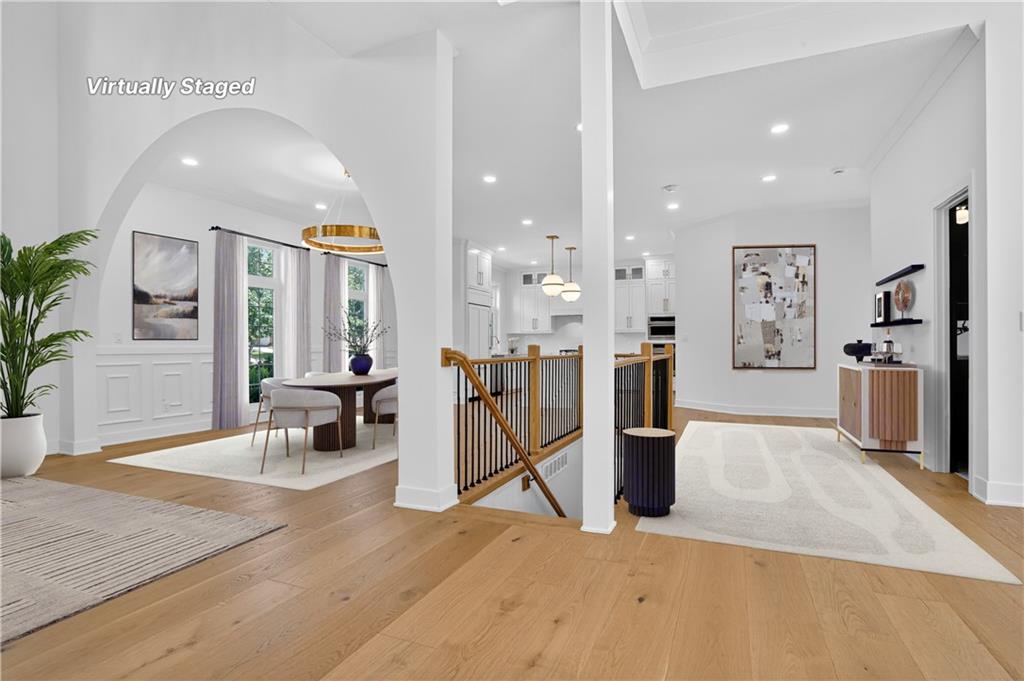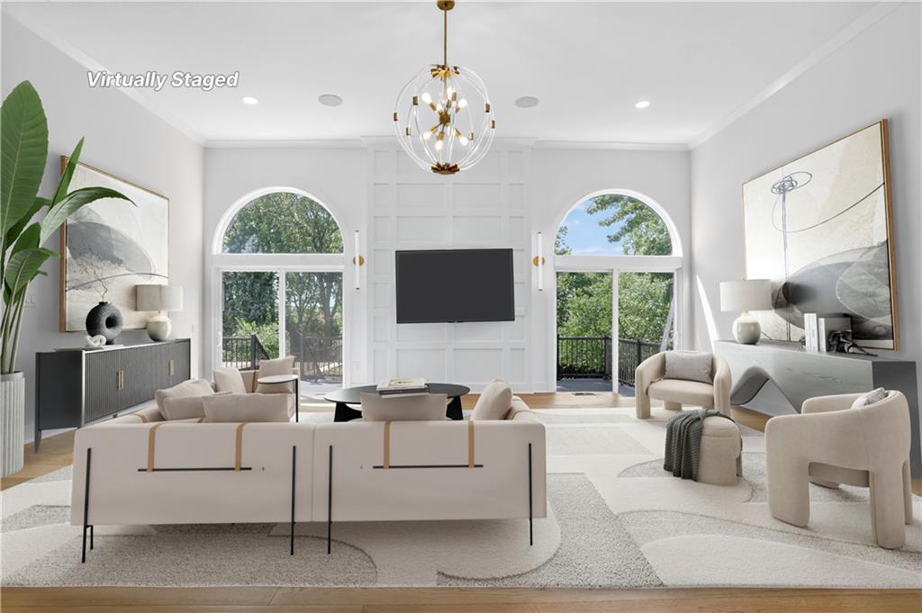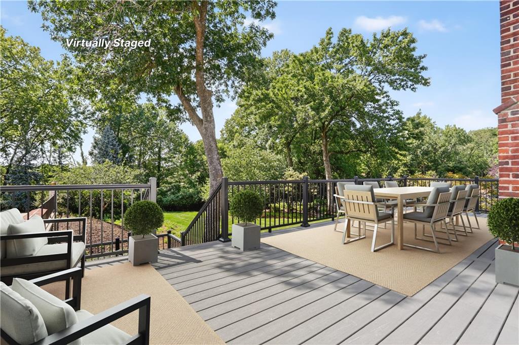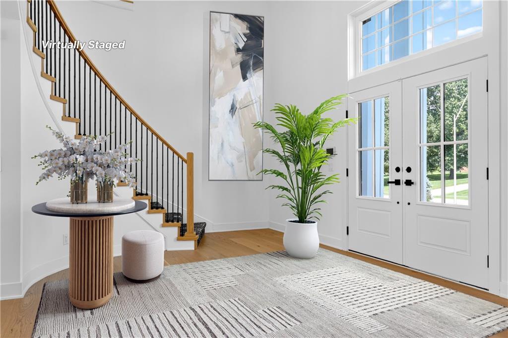 Commanding attention with its classic façade and lavishly updated interiors, this 1.5-story Colonial redefines modern elegance & is perfectly positioned on just under an acre of lush, tree-lined grounds. This beautifully updated home blends classic architectural charm with a fresh, open floor plan designed for today’s lifestyle. Step into a bright, inviting interior where the gourmet kitchen seamlessly connects to expansive living and dining spaces—ideal for both everyday living and grand entertaining. The main-level primary suite is a private retreat, featuring a warm fireplace, an oversized walk-in closet with custom built-ins, and a washer/dryer hookup for added convenience. Indulge in the spa-inspired bath with its soaker tub, large walk-in shower, and elegant finishes. Upstairs, you’ll find a second primary suite, three additional bedrooms, a loft area, and a second laundry space—perfect for busy households or guests. The walk-out lower level was built for entertainment, offering a spacious rec room with wet bar, a dedicated theater room, wine room, and abundant storage. Car lovers will appreciate the six garage spaces, while the charming carriage house above provides a complete living space with its own living room, kitchenette, bedroom, and full bath—ideal for in-laws or guests. Extensive updates include new paint, flooring, light fixtures, windows, HVAC, Trex deck, and more, making this home truly move-in ready. Located just minutes from Tiffany Greens Golf Club, the airport, shopping, and dining, this property offers both convenience and privacy. Don’t miss the chance to make this extraordinary home your own!