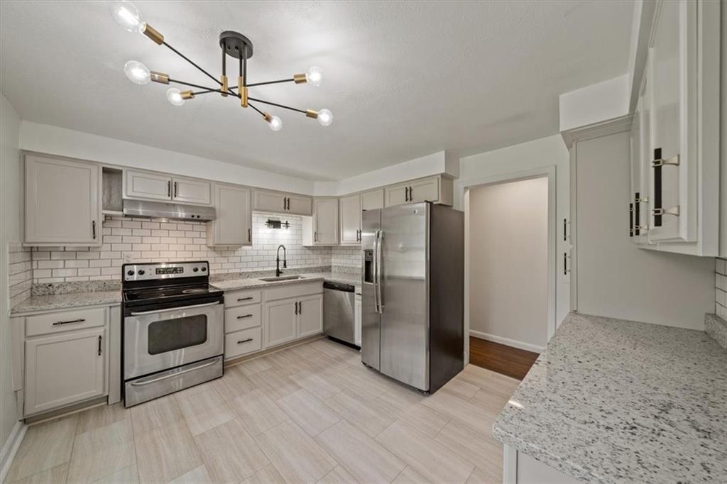 This classic brick raised ranch home offers timeless charm and practical living spaces in a convenient location. Featuring 3 bedrooms and 1 full bathroom on the main level, the home is thoughtfully laid out for comfortable everyday living. The inviting oversized living room welcomes you with natural light, creating a warm space to relax or entertain. The kitchen comes with stainless steel appliances and new granite countertops. Adjacent to the kitchen, the formal dining room provides a lovely spot for meals and gatherings, highlighted by a striking fireplace that adds character and a cozy ambiance. The unfinished basement presents plenty of potential for customization to suit your needs—whether you envision a workshop, hobby area, or additional living space. It also includes a second full bathroom, ready for use or add your own personal touch to it. Enjoy the convenience of the tandem 2-car garage, offering extended space for tools, equipment, or recreational gear. Perched on a hill, this property offers a unique vantage point and a sense of privacy, along with an attractive view of the surrounding area. The sturdy brick exterior provides low-maintenance durability, and the layout makes the home as practical as it is charming. Whether you’re looking for a place to call home or an investment with rental potential, this raised ranch delivers classic appeal, flexible space, and an excellent setting.