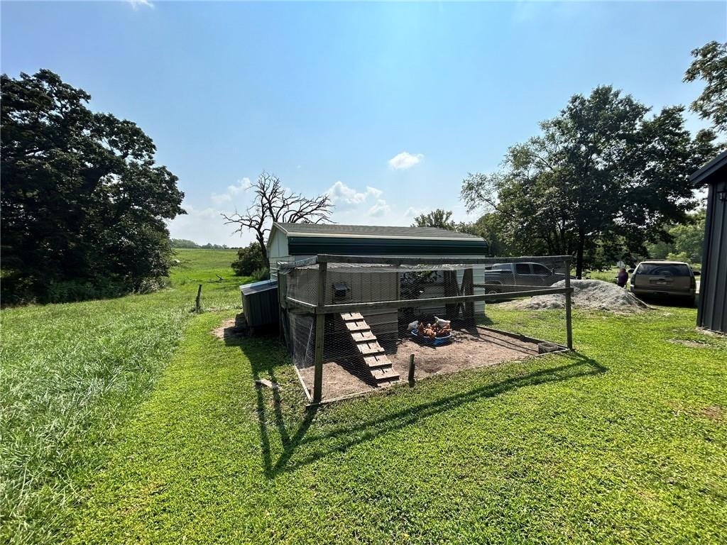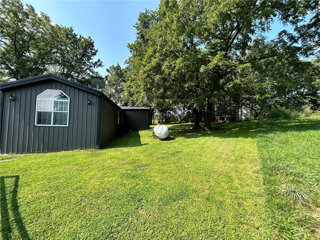 At no fault of the seller this nice home is back on the market. It is has passed inspection previously and appraises. This home has many updates including floors and trim and newer paint. Also a new all metal roof and metal siding put on in 2023. Has a beautiful back yard with big shade trees and an unattached garage. Another storage building with fencing for a few farm animals as well as a chicken coop with a little patching would be good for chickens. Gravel drive directly off the blacktop for easy access to I35.