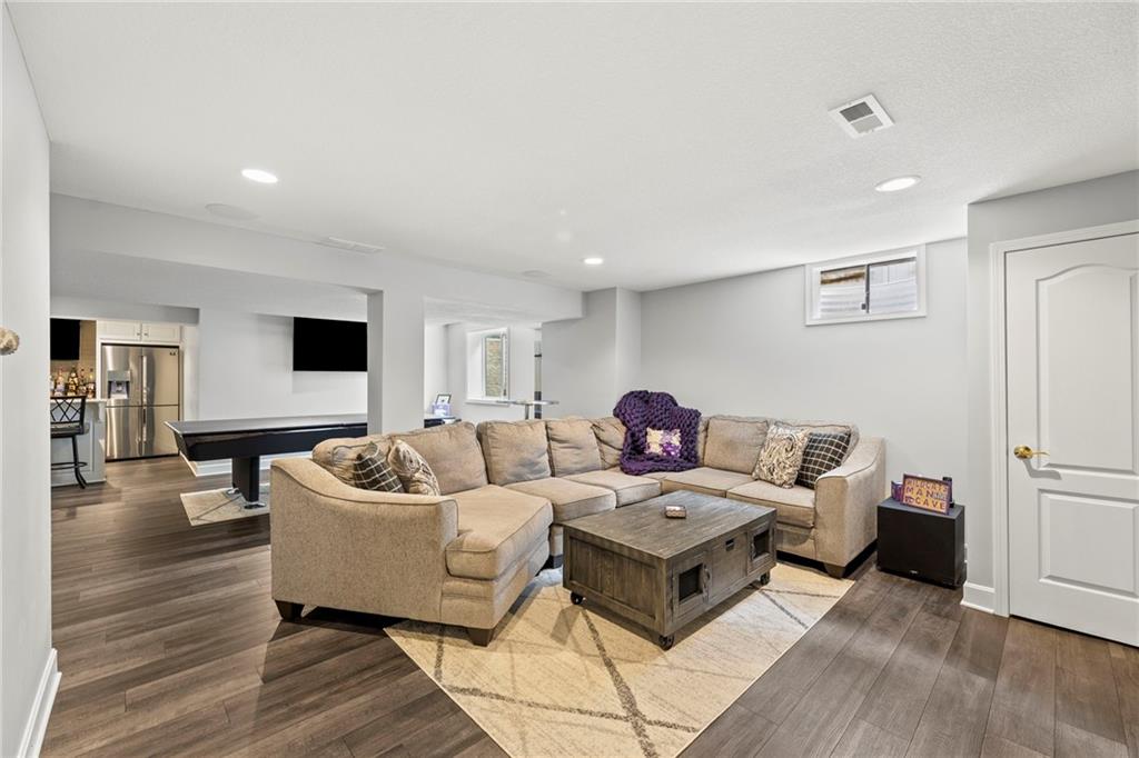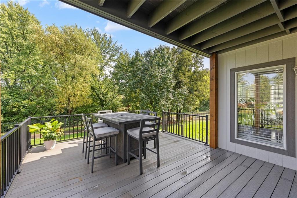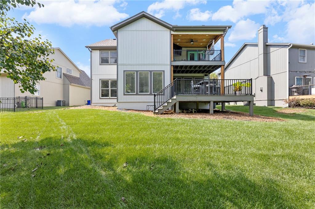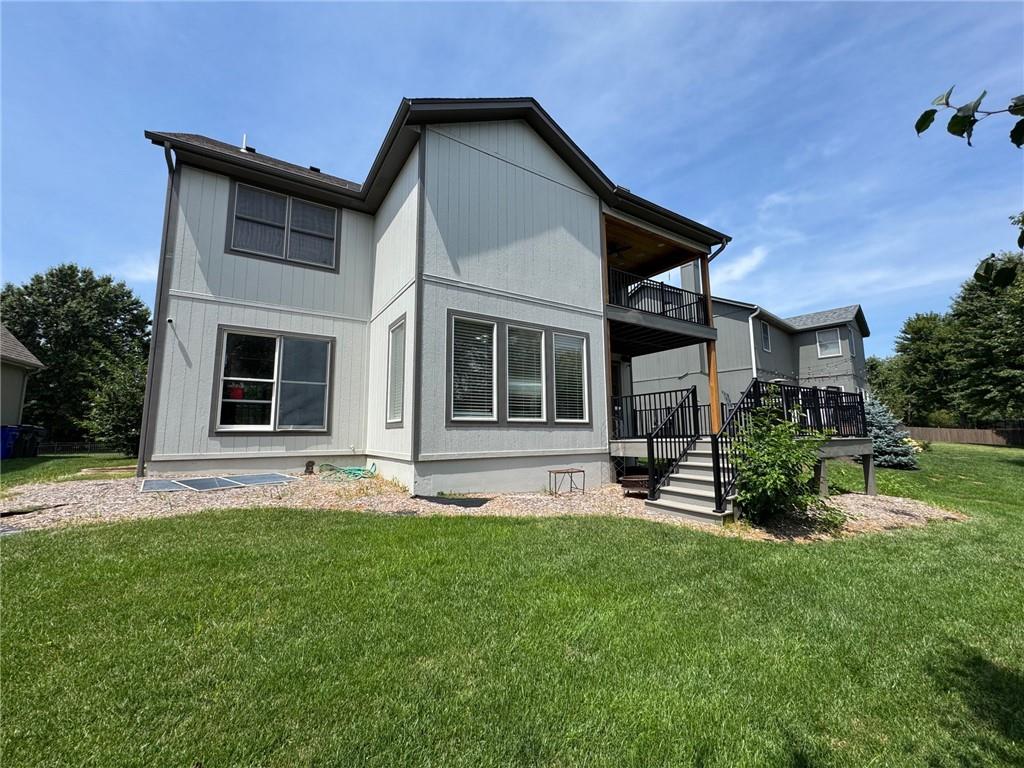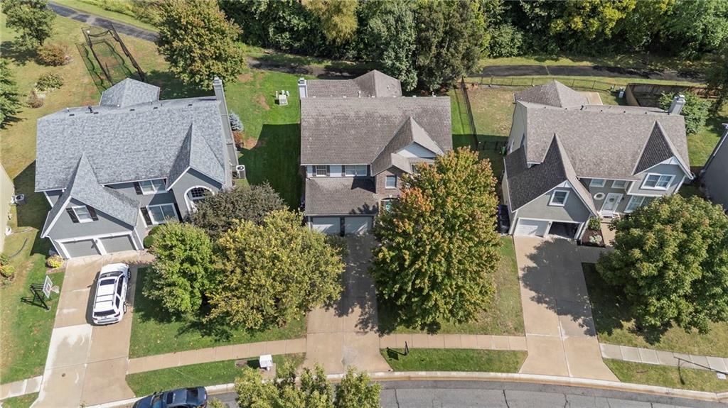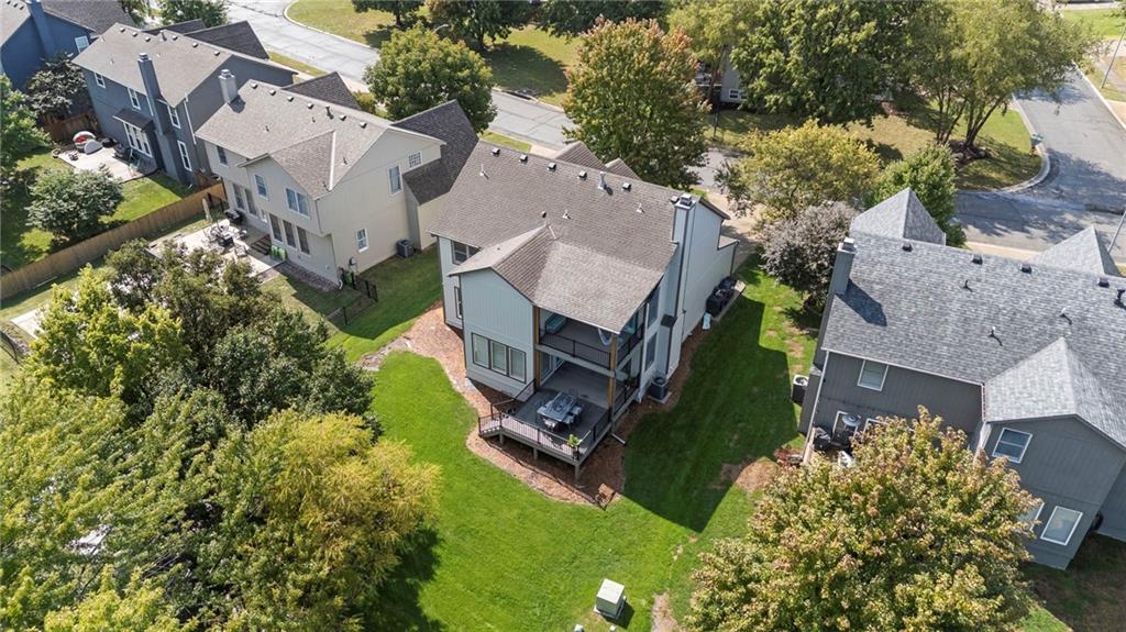 A Perfect 10! This Palisade Park stunner backs green space/walking trail to school & pool! Beautiful Open Floor Plan with HARDWOODS in FORMAL LIV/DIN ROOMS, Kitchen and Great room flowing seamlessly! Light and Airy Neutral Colors Throughout! Great Room features stacked stone fireplace. Delight the Chef in this Kitchen showcasing Granite Countertops, Eat-In Island, Pantry and NEW SS Appliances including Smoothtop Cooktop and Built-In Microwave and Oven! AMAZING OVERSIZED COVERED DECK is the perfect place to entertain this fall! The master bedroom is the perfect sanctuary to relax in with ample space, walk-in closets & ensuite bath with separate shower and soaking tub and dual vanities. Bonus: COVERED MARTINI DECK OFF MASTER!! The second level has spacious secondary bedrooms; one w/an updated ensuite and the other two share jack/jill bath. The basement is an entertainer's dream with a custom bar & 4th full bath. This fun space is ready to celebrate the Chief's this fall! Get ready to play games, get cozy and make memories. Palisade Park boasts an internal walking trail to the pool & playground, or walk up the street to the community park. Close to Garmin, easy access to I-35 or 169 hwy.