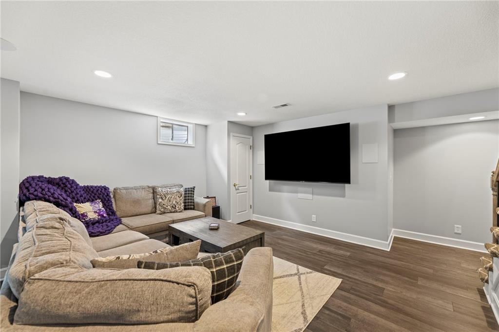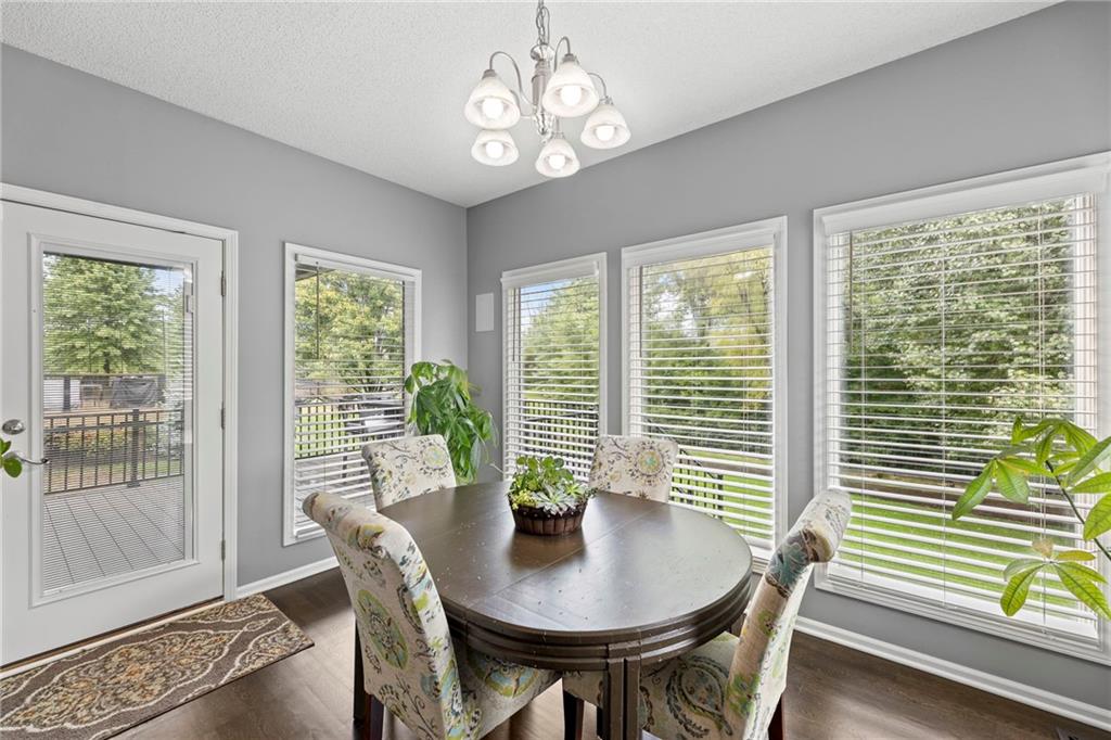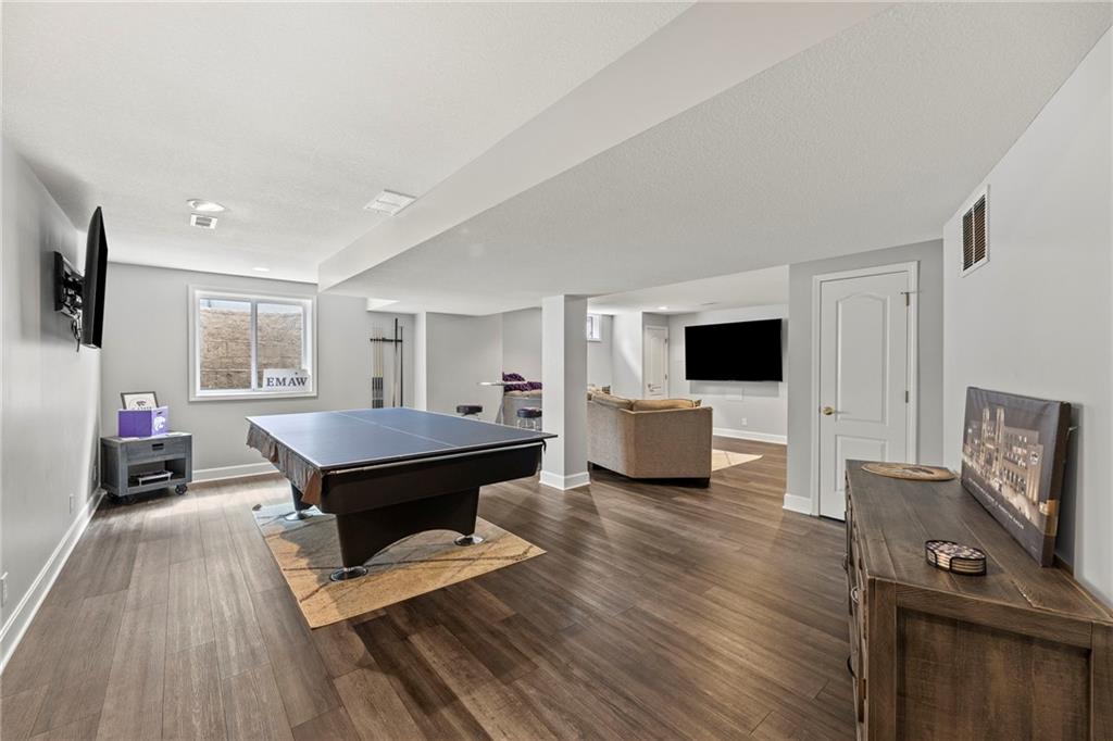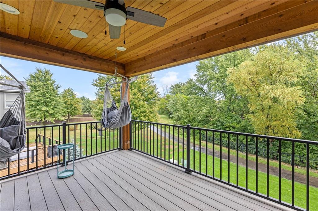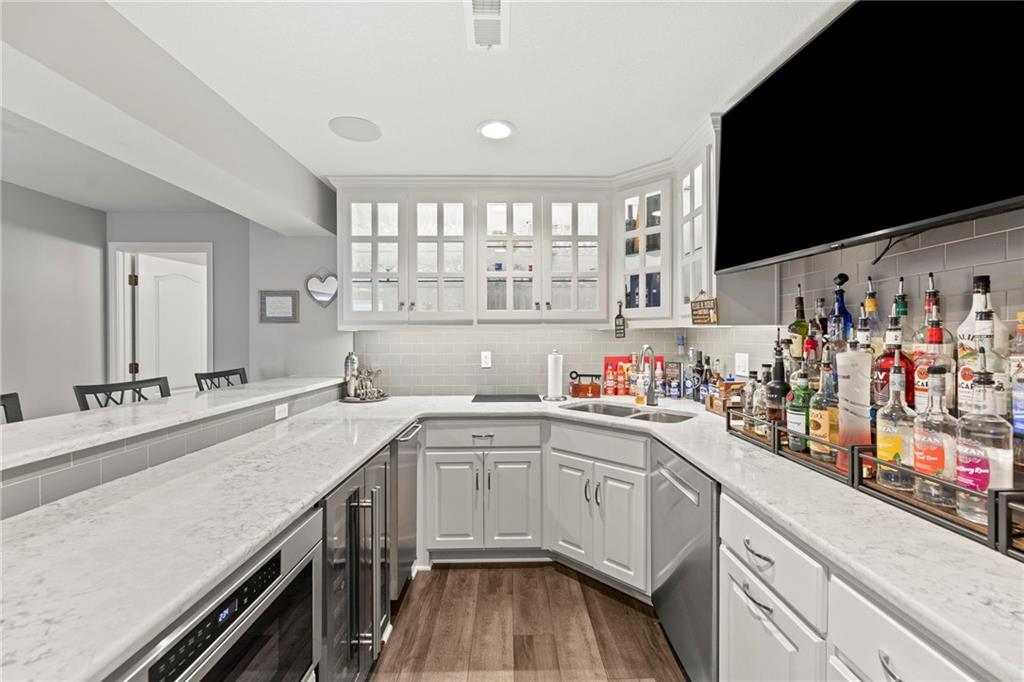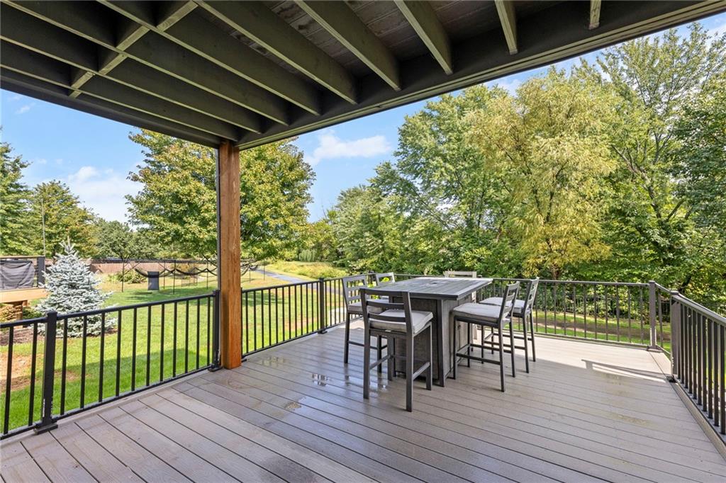 A Perfect 10! This Palisade Park stunner backs green space/walking trail to school & pool! Beautiful Open Floor Plan with HARDWOODS in FORMAL LIV/DIN ROOMS, Kitchen and Great room flowing seamlessly! Light and Airy Neutral Colors Throughout! Great Room features stacked stone fireplace. Delight the Chef in this Kitchen showcasing Granite Countertops, Eat-In Island, Pantry and NEW SS Appliances including Smoothtop Cooktop and Built-In Microwave and Oven! AMAZING OVERSIZED COVERED DECK is the perfect place to entertain this fall! The master bedroom is the perfect sanctuary to relax in with ample space, walk-in closets & ensuite bath with separate shower and soaking tub and dual vanities. Bonus: COVERED MARTINI DECK OFF MASTER!! The second level has spacious secondary bedrooms; one w/an updated ensuite and the other two share jack/jill bath. The basement is an entertainer's dream with a custom bar & 4th full bath. This fun space is ready to celebrate the Chief's this fall! Get ready to play games, get cozy and make memories. Palisade Park boasts an internal walking trail to the pool & playground, or walk up the street to the community park. Close to Garmin, easy access to I-35 or 169 hwy.