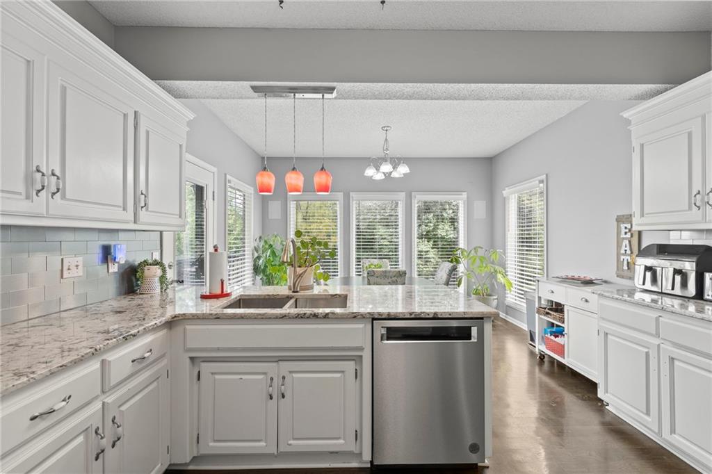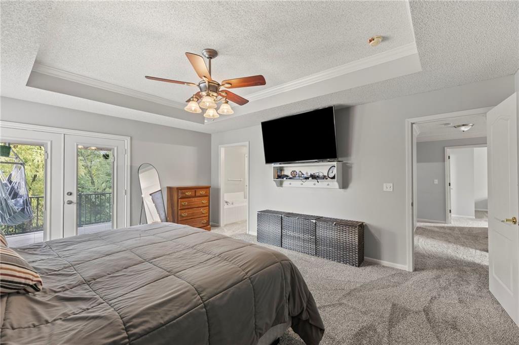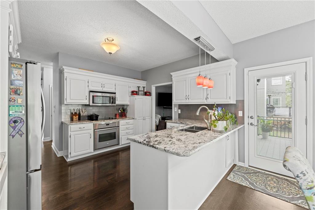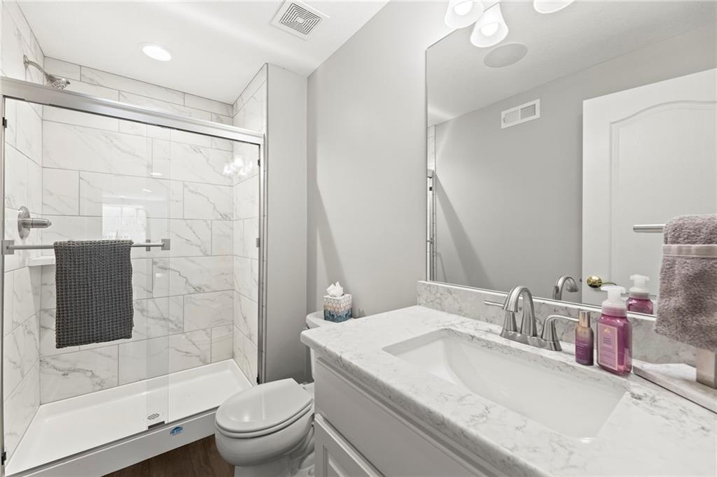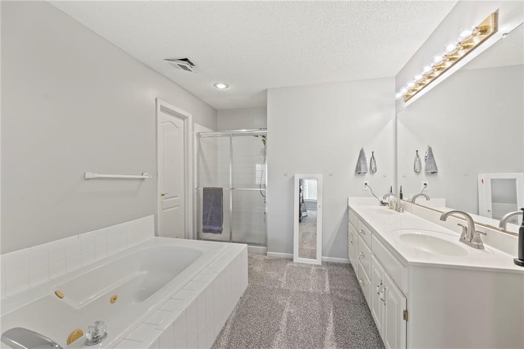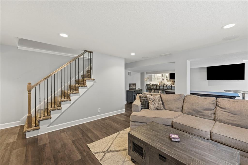 A Perfect 10! This Palisade Park stunner backs green space/walking trail to school & pool! Beautiful Open Floor Plan with HARDWOODS in FORMAL LIV/DIN ROOMS, Kitchen and Great room flowing seamlessly! Light and Airy Neutral Colors Throughout! Great Room features stacked stone fireplace. Delight the Chef in this Kitchen showcasing Granite Countertops, Eat-In Island, Pantry and NEW SS Appliances including Smoothtop Cooktop and Built-In Microwave and Oven! AMAZING OVERSIZED COVERED DECK is the perfect place to entertain this fall! The master bedroom is the perfect sanctuary to relax in with ample space, walk-in closets & ensuite bath with separate shower and soaking tub and dual vanities. Bonus: COVERED MARTINI DECK OFF MASTER!! The second level has spacious secondary bedrooms; one w/an updated ensuite and the other two share jack/jill bath. The basement is an entertainer's dream with a custom bar & 4th full bath. This fun space is ready to celebrate the Chief's this fall! Get ready to play games, get cozy and make memories. Palisade Park boasts an internal walking trail to the pool & playground, or walk up the street to the community park. Close to Garmin, easy access to I-35 or 169 hwy.