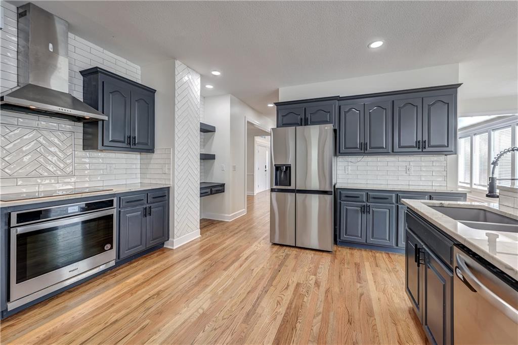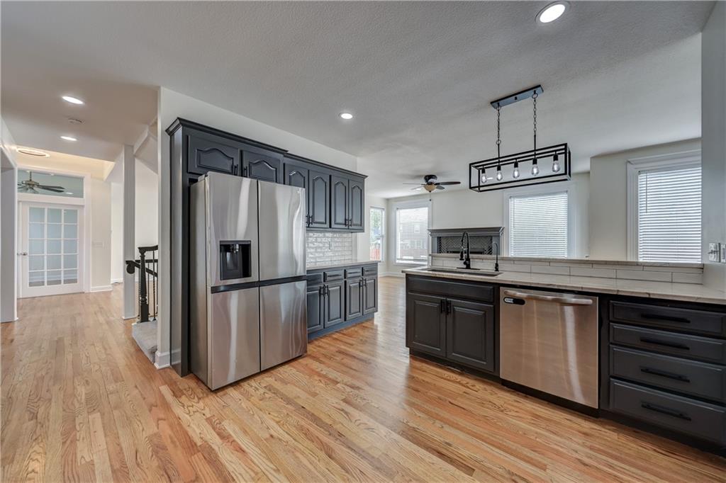 ? Stunning Home Upgrades – Inside & Out? The House is blocks away from Blue Valley Schools. Buyers have the right for their children to use Blue Valley Schools, if available, and are guaranteed the same options as Olathe Schools, including the ability to choose other Olathe Schools if available. This home has been thoughtfully updated from top to bottom, blending modern style with everyday comfort. Nearly every space has been refreshed with high-end finishes and smart upgrades. The basement shines with sleek epoxy floors, fresh paint, new tile in the game room and bathroom, upgraded vanity, LVP flooring in the fifth bedroom, and new carpet on stairs. A new sump pump system with battery backup adds peace of mind. The main level has been freshly painted throughout with refinished hardwoods updated just four years ago. This floor features a quartz kitchen with backsplash, coffee bar shelves, new vanities, toilets, light fixtures, LED can lighting, and an updated fireplace. Outdoor living is elevated with a new fire pit and WiFi-enabled smart sprinkler system. Upstairs offers new paint, LVP flooring, can lighting, fixtures, a dramatic chandelier, and a stairway accent wall. Every detail has been designed for a modern, cohesive feel.The luxurious master retreat boasts a custom built-in entertainment center with electric fireplace, custom closets with dresser, and a fully remodeled spa like bathroom with floating vanity, LED mirror, oversized rainfall shower, and premium finishes throughout. Bedrooms 1 & 2: Full Jack & Jill remodel with tile, vanities, faucets, bathtub, toilets, and fixtures.Bedroom 3: Bathroom refresh with tile, faucets, fixtures, shower head, and vanity paint. Even the laundry room shines with new tile, updated plumbing, floating butcher block shelves and dimmable lighting. Finished with new tile, plumbing, floating butcher-block shelves, and dimmable lighting.