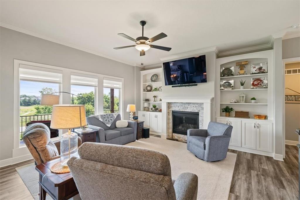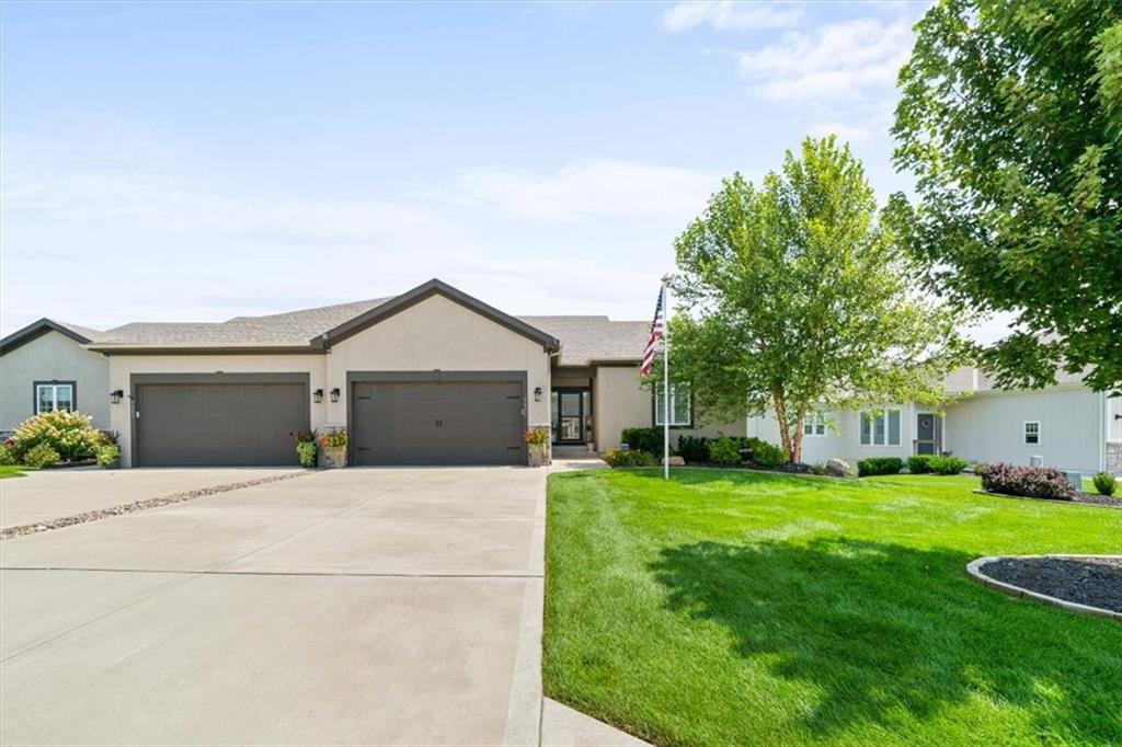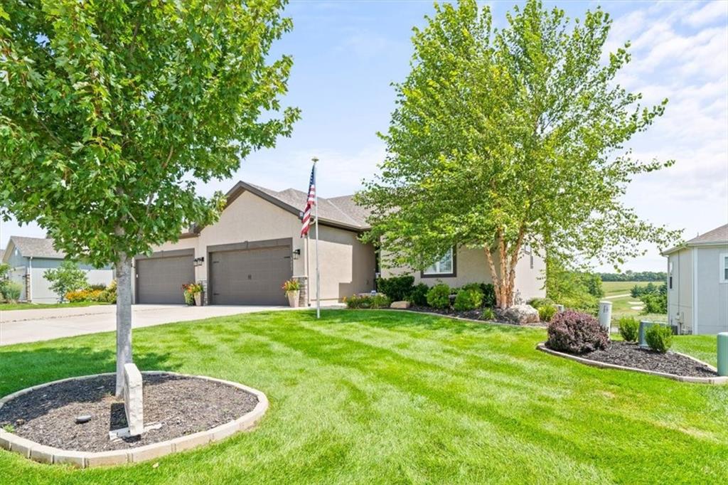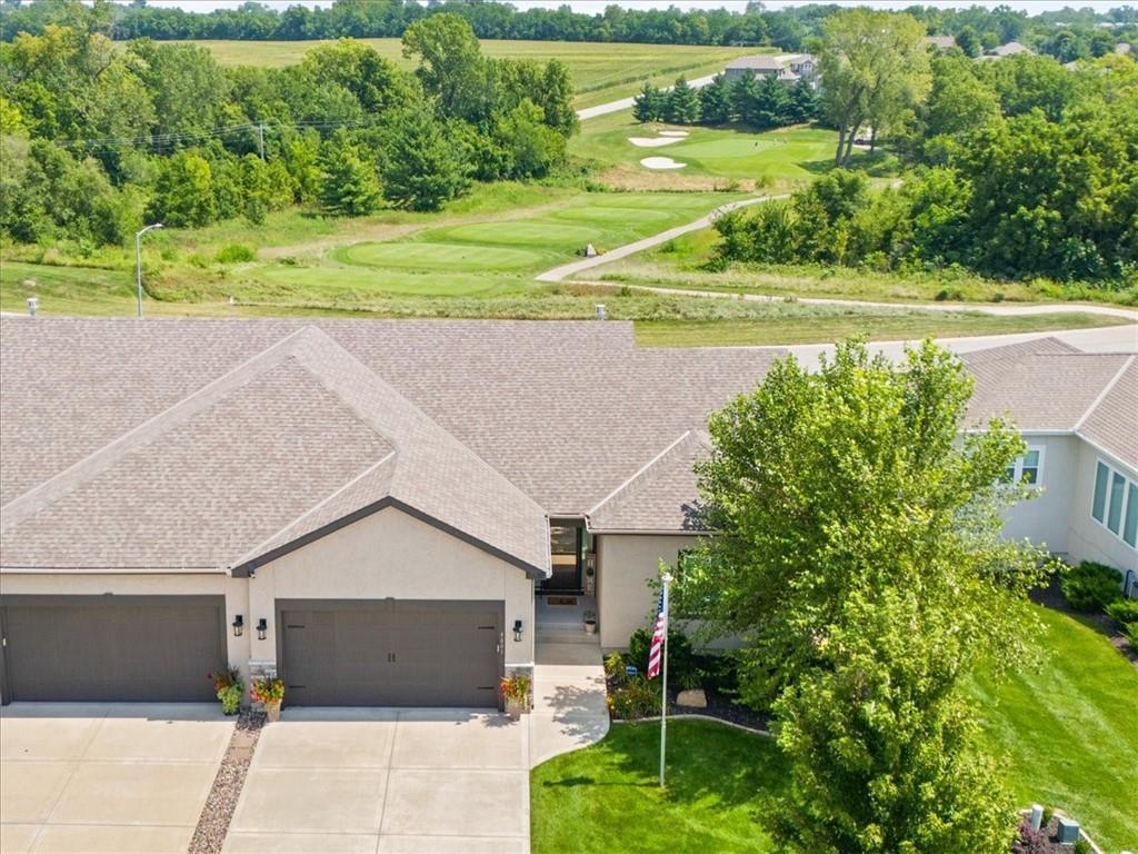 Back on the market at no fault of seller with a New Price on this lovely villa with a GOLF COURSE view! Enjoy the sunrise every morning! This immaculate home is on an amazing walkout lot with a large back yard maintained by the HOA! Enjoy the view or watch the sunrise from the dining room, living room, primary bedroom, the upper deck and the lower patio! The sellers have made many improvements to the home including storm doors, composite deck, custom window treatments, and additional insulation in attic. The home includes a main floor primary bedroom, primary bathroom with laundry attached to the oversized primary closet as well as a "pocket" office. The great room boasts cabinets on either side of the fireplace and a wall of windows for that view! The lower level includes a rec room that walks out to a patio, bedroom and a bath plus a fantastic workshop area with door out to the lower patio. Don't miss this opportunity to live in a beautiful golf course community for well under $500K!! HOA maintenance includes lawn maintenance (mow/trim, weed/feed, sprinkler turn on/off, landscape maintenance) and snow removal over 2 inches. Also includes the replacement of paint, gutters, and roof as needed. Falcon Lakes is just 10 minutes to the Legends Dining and Entertainment district and 30 minutes to the airport. Easy highway access makes it easy to get any where in the metro area. Acclaimed Basehor-Linwood schools!