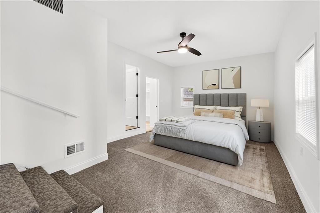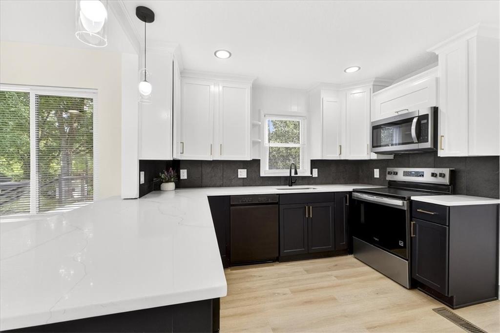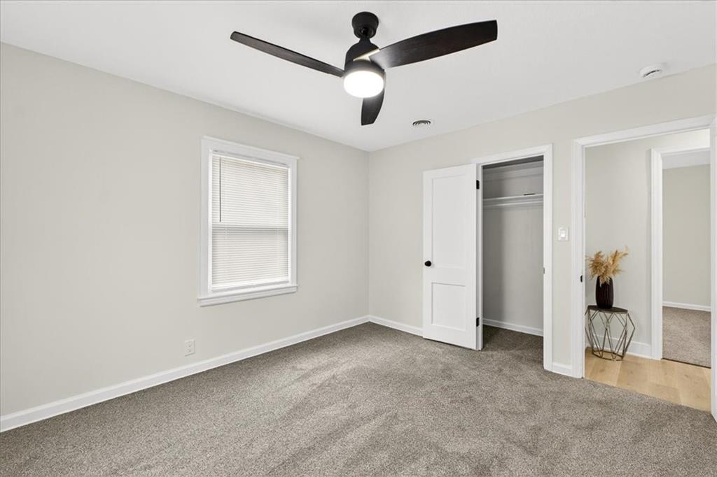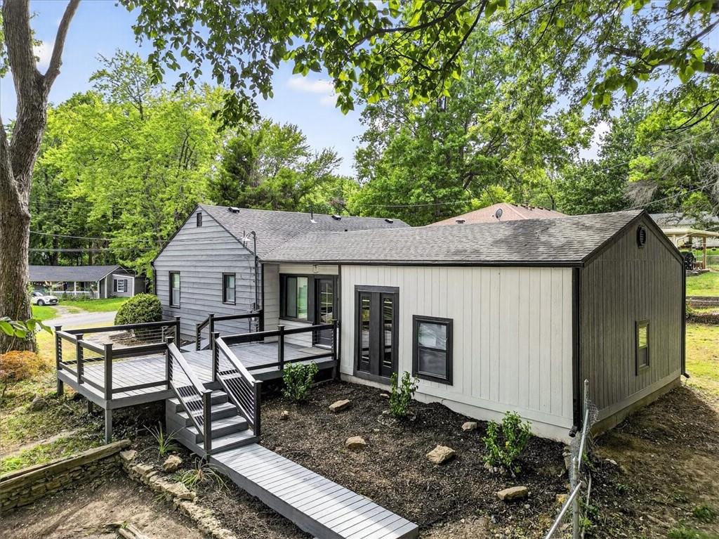 Welcome to this beautifully renovated ranch-style home featuring 4 bedrooms and 2.5 bathrooms. A long driveway leads you to a detached garage with a new roof, new concrete, and a new garage door. The home itself also boasts a new roof, new windows, and all of the big-ticket items have been replaced, including plumbing and electrical, giving you peace of mind for years to come. Follow the path along the side of the home to a spacious deck, where a side entrance opens into the dining room. If you arrive through the front, you’re greeted by a charming porch before stepping into the inviting living room. With no basement, you’ll enjoy the convenience of single-level living. On one side of the home, you’ll find three comfortable bedrooms with brand-new carpet and a beautifully updated full bathroom, perfect for family or guests. On the opposite side, the owner’s suite offers maximum privacy with soaring ceilings, large windows for abundant natural light, brand-new carpet, a private bathroom, and a spacious walk-in closet. The freshly renovated kitchen boasts quartz countertops, a large island, generous pantry, and a nearby laundry closet. A half bath is located just off the kitchen for added convenience. The dining room features a sliding door that opens to a partially fenced backyard with a new partially screened-in deck—perfect for privacy and keeping bugs at bay. A huge privacy fence has been added, providing even more seclusion and security for outdoor enjoyment. A backyard shed provides extra storage space. Come take a look at this beautiful home and make it yours!
