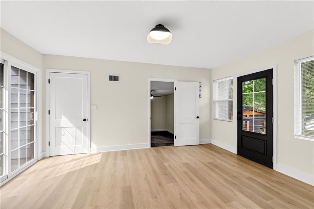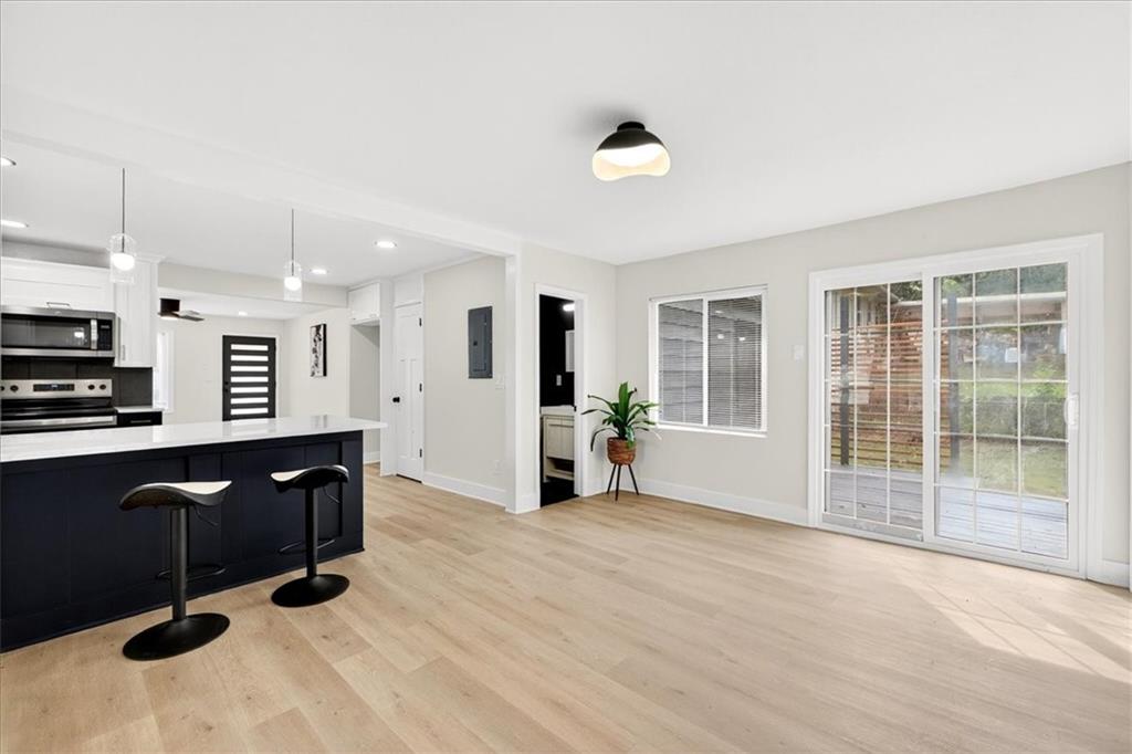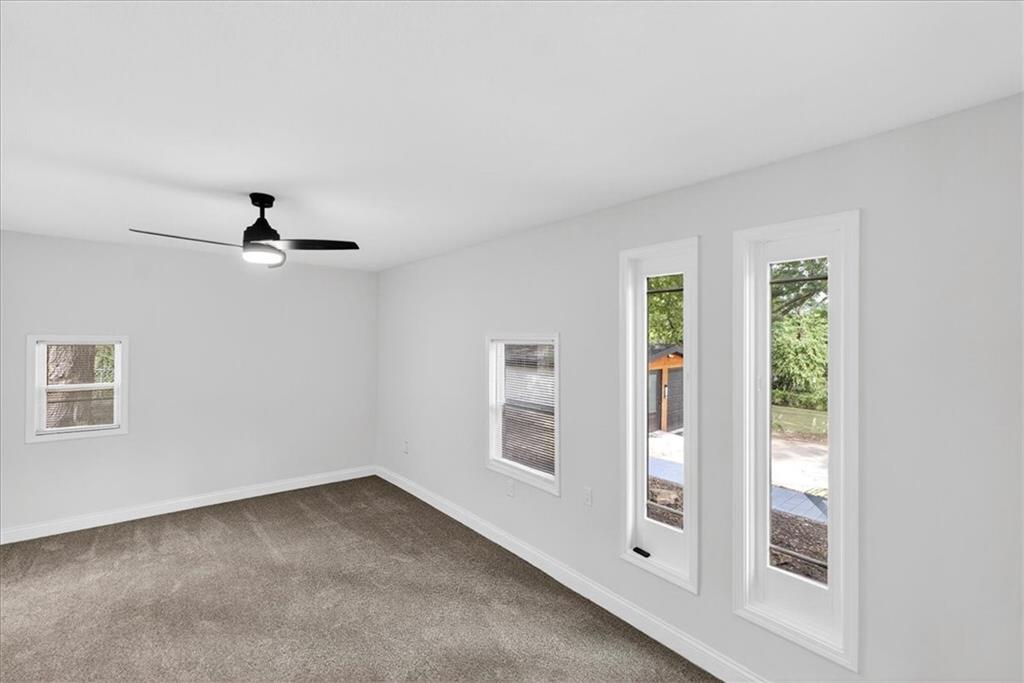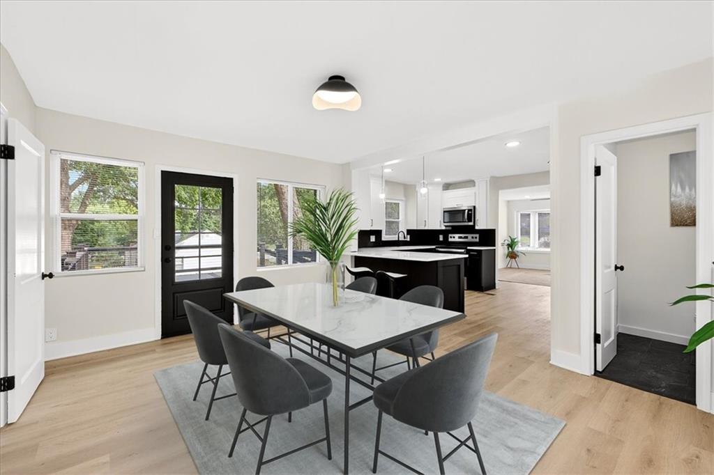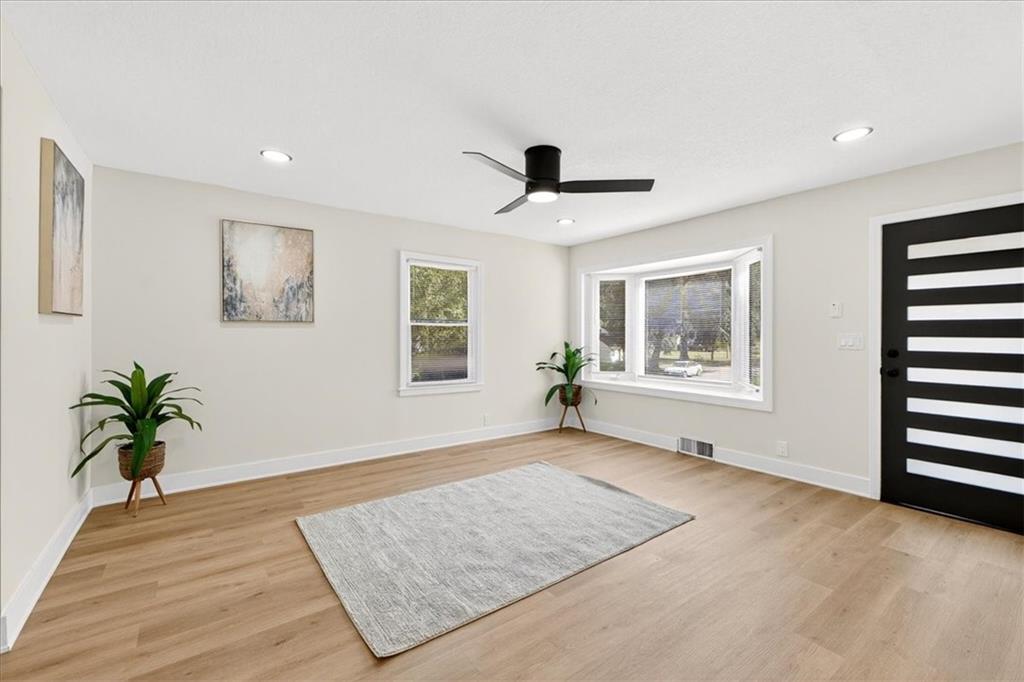 Welcome to this beautifully renovated ranch-style home featuring 4 bedrooms and 2.5 bathrooms. A long driveway leads you to a detached garage with a new roof, new concrete, and a new garage door. The home itself also boasts a new roof, new windows, and all of the big-ticket items have been replaced, including plumbing and electrical, giving you peace of mind for years to come. Follow the path along the side of the home to a spacious deck, where a side entrance opens into the dining room. If you arrive through the front, you’re greeted by a charming porch before stepping into the inviting living room. With no basement, you’ll enjoy the convenience of single-level living. On one side of the home, you’ll find three comfortable bedrooms with brand-new carpet and a beautifully updated full bathroom, perfect for family or guests. On the opposite side, the owner’s suite offers maximum privacy with soaring ceilings, large windows for abundant natural light, brand-new carpet, a private bathroom, and a spacious walk-in closet. The freshly renovated kitchen boasts quartz countertops, a large island, generous pantry, and a nearby laundry closet. A half bath is located just off the kitchen for added convenience. The dining room features a sliding door that opens to a partially fenced backyard with a new partially screened-in deck—perfect for privacy and keeping bugs at bay. A huge privacy fence has been added, providing even more seclusion and security for outdoor enjoyment. A backyard shed provides extra storage space. Come take a look at this beautiful home and make it yours!