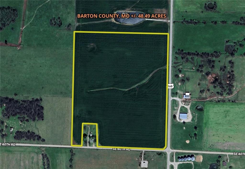Start investing in your dreams! This is a great opportunity to own a prime 48+/- acres right off Highway 160, with fertile soils and several build sites. The property is 99% tillable and has been in a soybean/corn rotation for the last several years. The current owners have done their due diligence in ensuring the integrity of the soils that make up this acreage, by adequately fertilizing each year, implementing cover crops, and ensuring property drainage. The acreage is predominately class 3 soils, and the flat-to-gently-rolling terrain makes farming a breeze with large equipment. Not only is the property lying right on black-top, it is just minutes away from the local grain elevator, making trucking costs a minimal expense. Additionally, the added bonus of having several build sites, perfect for a new home or large shop for your farming equipment, makes this property highly sought after in Barton County. This tract is associated with MLS:2569289 and MLS:2569292. Please note: All interested parties must be accompanied by a licensed real estate agent while touring the property.
