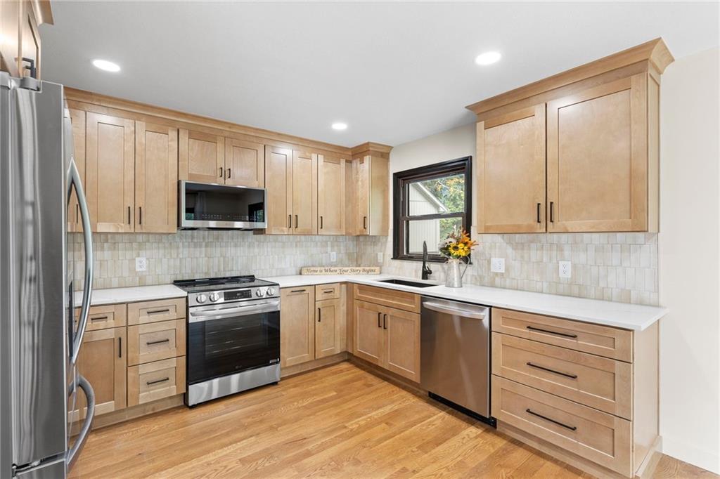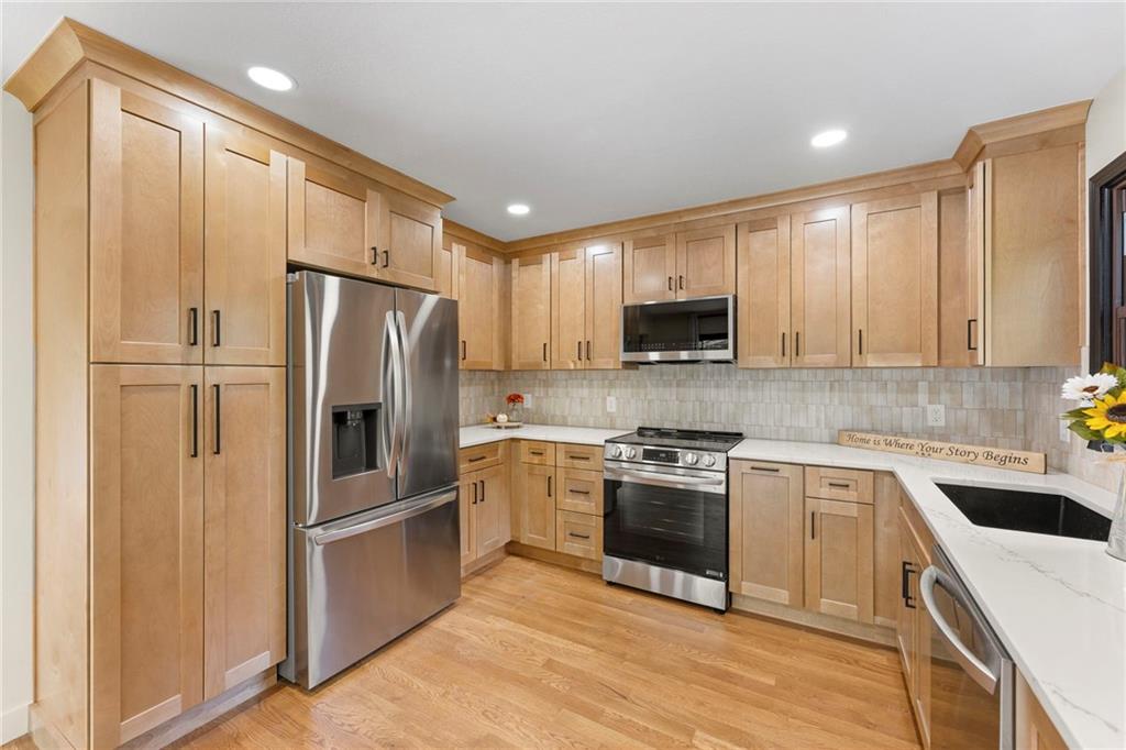 Beautifully updated home in the Raintree Subdivision, nestled in a quiet cul-de-sac surrounded by mature trees, this stunning 4-bedroom, 3 full bath home offers the perfect blend of comfort, style, and location. Step inside to find a completely remodeled interior featuring a brand-new kitchen with quality cabinets, modern appliances, and gorgeous finishes. This home will amaze you with an abundance of natural light from two beautiful sliding glass doors on either side of a stunning stone covered fireplace. Step out onto a quality, low maintenance deck and soak up your peaceful lake view. The main floor boasts hardwood flooring throughout the living areas, with plush carpet in the bedrooms for added comfort. A versatile main-floor office sits conveniently off the entryway, perfect for working from home. Upstairs, spacious bedrooms provide plenty of room for the whole family. The basement offers a large entertaining space and a full bedroom, bathroom and 2 car (28 X 21) oversized garage. Enjoy a serene lake view and all the amenities of the highly sought-after Raintree subdivision, including lake access, walking trails, and a welcoming community atmosphere. This home truly must be seen to be appreciated—a move-in ready gem in one of the area’s greatly desired neighborhoods!