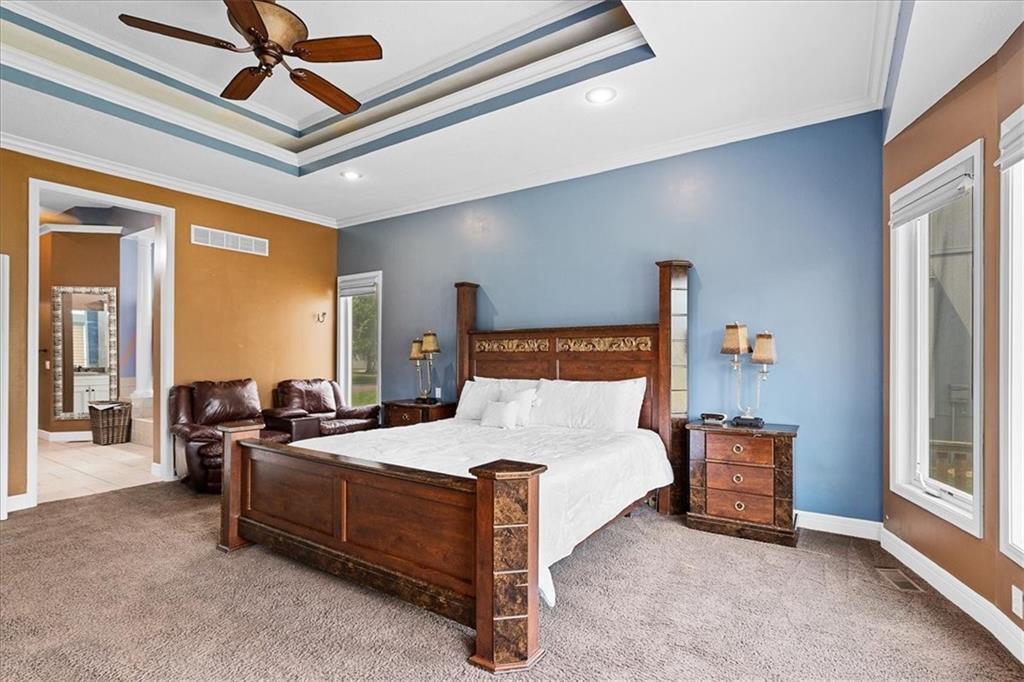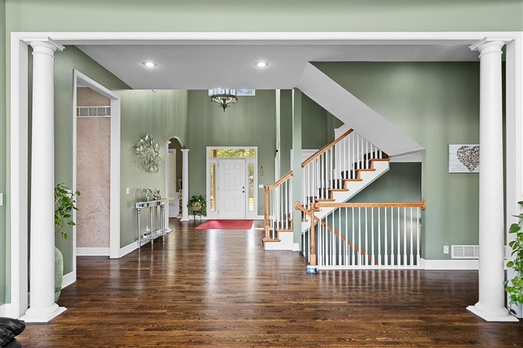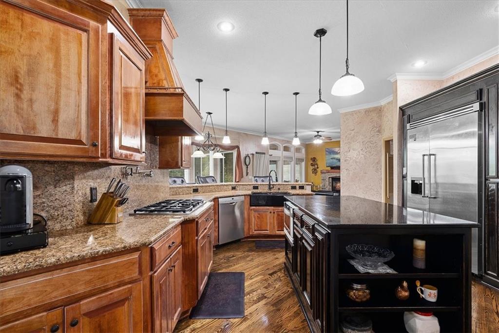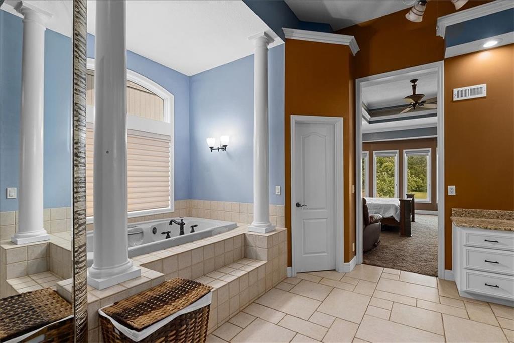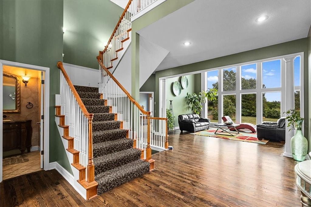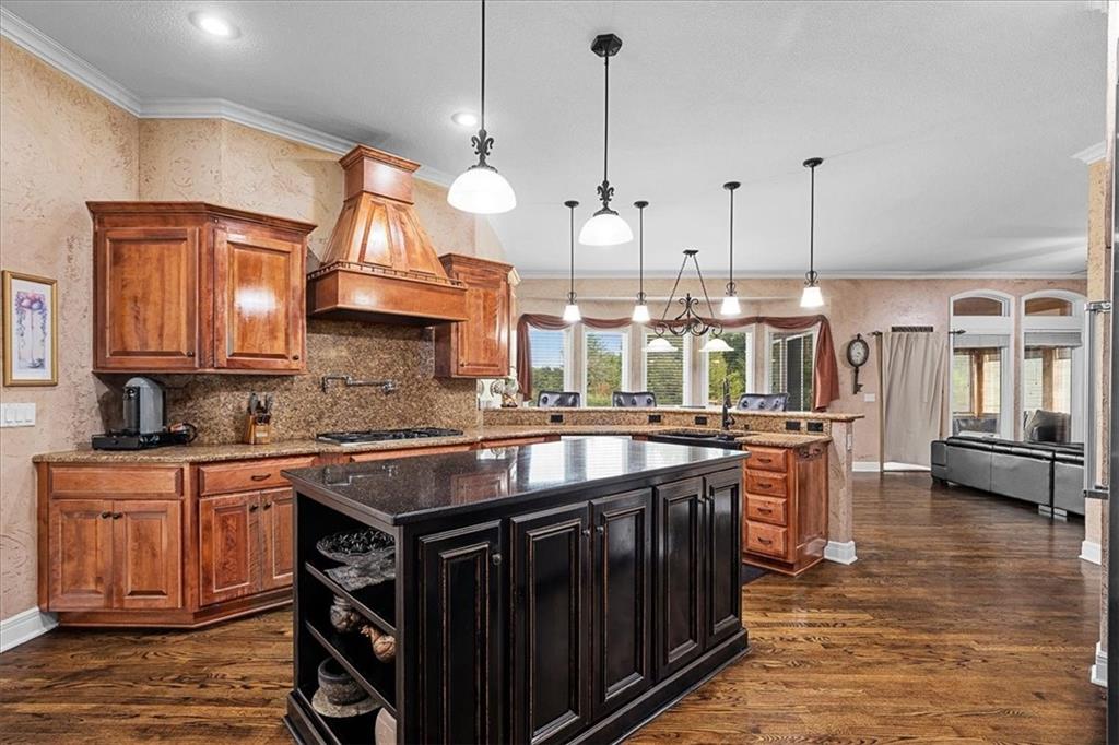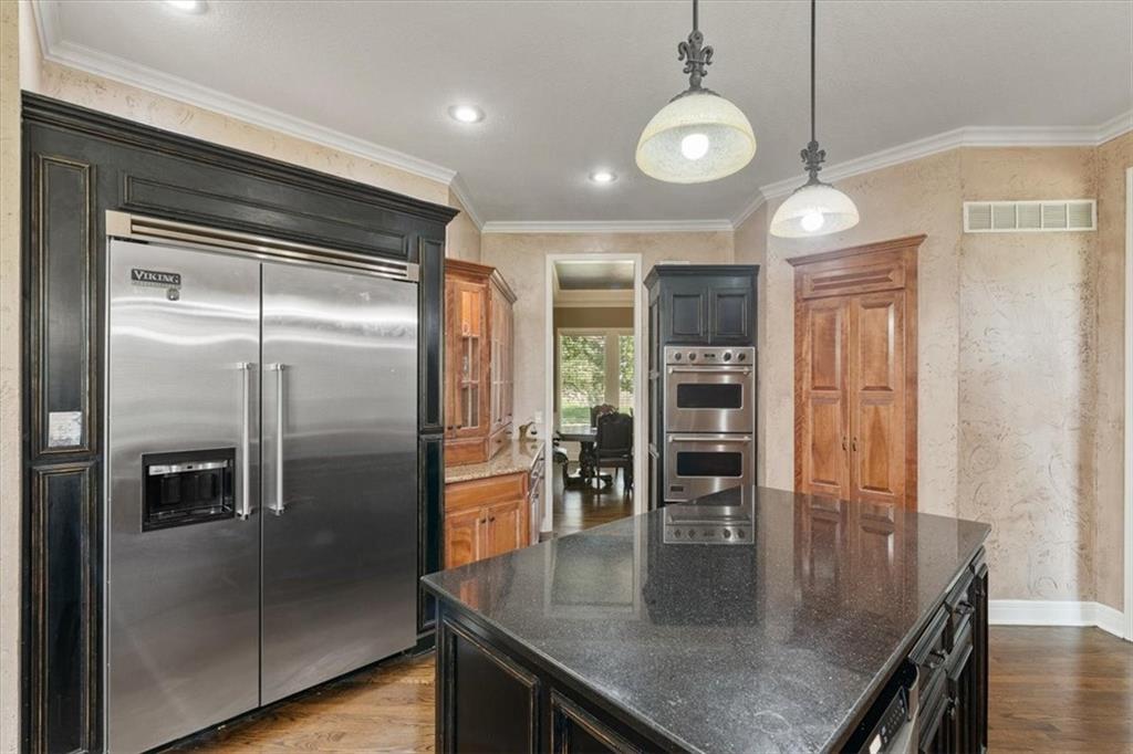 *MOTIVATED SELLER* Custom-built 1.5-story home on a rare 1+ acre cul-de-sac lot in Overland Park, offering 7 bedrooms, 9 bathrooms, and 7,500 square feet of finished living space in the award-winning Blue Valley School District. Originally constructed as the builder’s personal residence, this home was designed for comfort, space, and entertaining. The main level features a hearth-style kitchen with a farmhouse sink, Sub-Zero refrigerator, gas cooktop, stainless steel appliances, and walk-in pantry. The sun-filled great room boasts floor-to-ceiling windows and soaring ceilings, flowing into a spacious primary suite with heated floors and views of the private backyard. Upstairs, generously sized bedrooms each offer private or Jack-and-Jill bath access. The finished walkout lower level includes two additional bedrooms, a large recreation space, wet bar, game area with billiards, and a spa-like bathroom with jacuzzi tub and steam shower. A hidden storm shelter provides peace of mind and additional storage. Other highlights include heated floors in the garage, lower level, and primary suite, an extra-deep heated three-car garage, a sunroom with heat pump, custom built-ins, and zoned HVAC. The expansive backyard offers room to create your own outdoor oasis or add a future pool. Well-maintained with solid original finishes throughout, this home delivers exceptional space and potential in one of Overland Park’s most desirable neighborhoods.