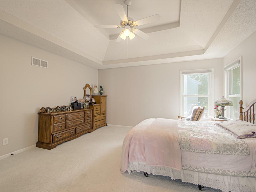 Welcome Home to Ravenwood Place! This beautifully maintained and move-in ready 2-story home offers 4 spacious bedrooms, 2.5 updated baths and many wonderful features. From the moment you arrive, you'll appreciate the charming curb appeal. Step inside to find a warm and inviting layout featuring a sunken family room, bright living room, formal dining area, and a large, recently updated kitchen. Upstairs, all four bedrooms are generously sized, including the primary suite with a soaker tub, walk-in shower, double vanity, and updated bathrooms!! The finished basement bonus room with French doors and a closet is perfect for a home office, guest room, or hobby space. This home is just a short distance to Ravenwood Elementary and only minutes from the neighborhood pool, parks, and shopping. Don’t miss your chance to own this loving updated home in a prime Olathe location!