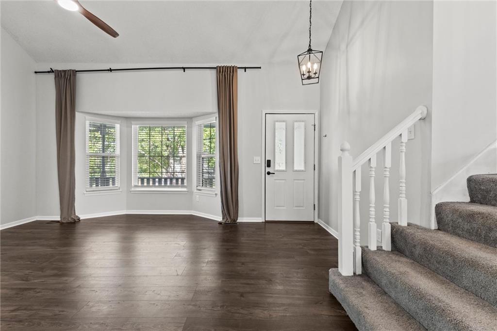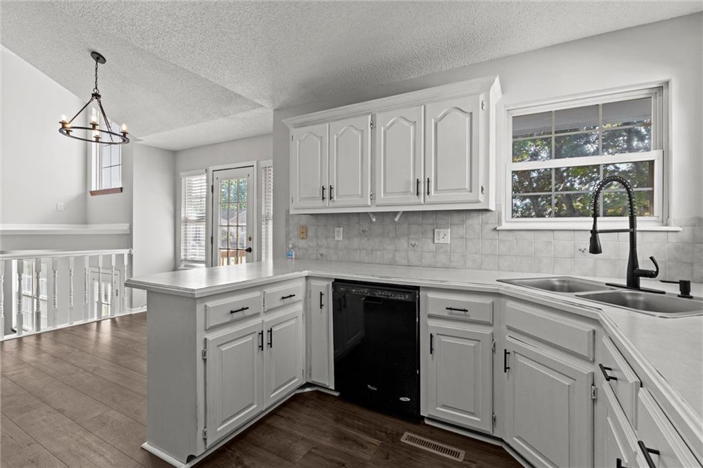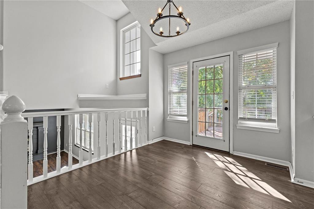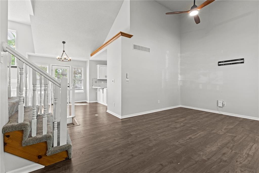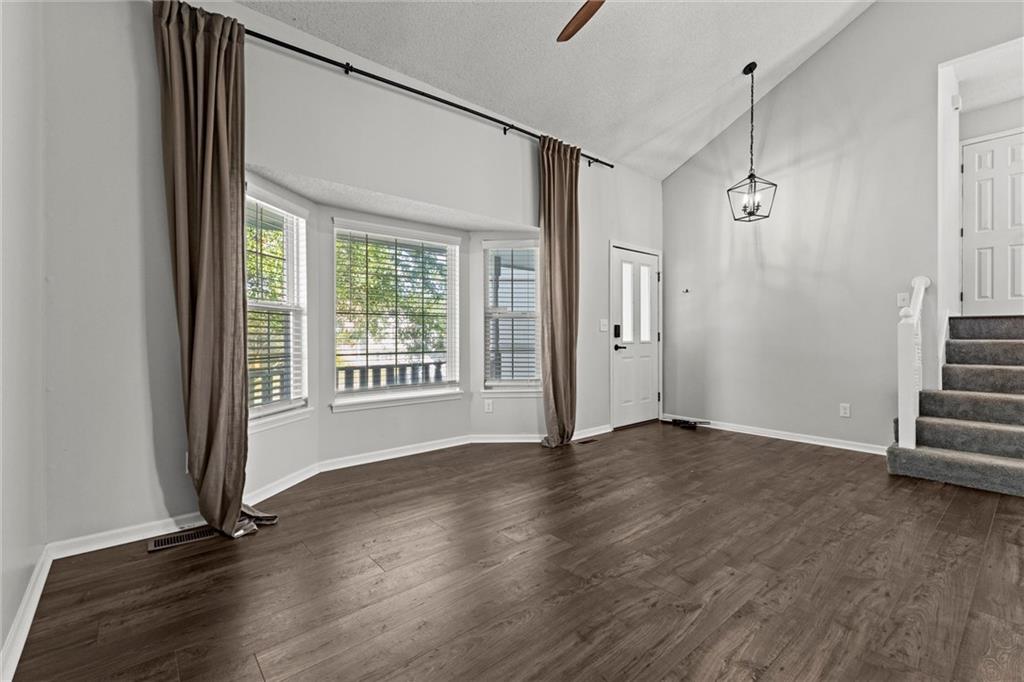 Positioned in a quiet neighborhood, this home showcases a multitude of attractive features. Recent upgrades include new LVP flooring throughout the main level and living areas, new carpeting, all-new fixtures, and a fresh coat of paint. The main floor boasts a formal living room and a kitchen/dining combination that overlooks the main living area. Upstairs, the home is complete with a primary suite, laundry room, and two additional bedrooms. The primary suite features vaulted ceilings, a spacious walk-in closet, a large vanity, and a private shower. The living space is complete with a gas starter fireplace and a half bath. The basement offers a fourth nonconforming room for additional bedroom space or office use. A newer deck, located off the kitchen, leads to the private backyard, which includes a small gardening greenhouse. This move-in-ready home provides ample space for entertaining and is ready for its new owner.