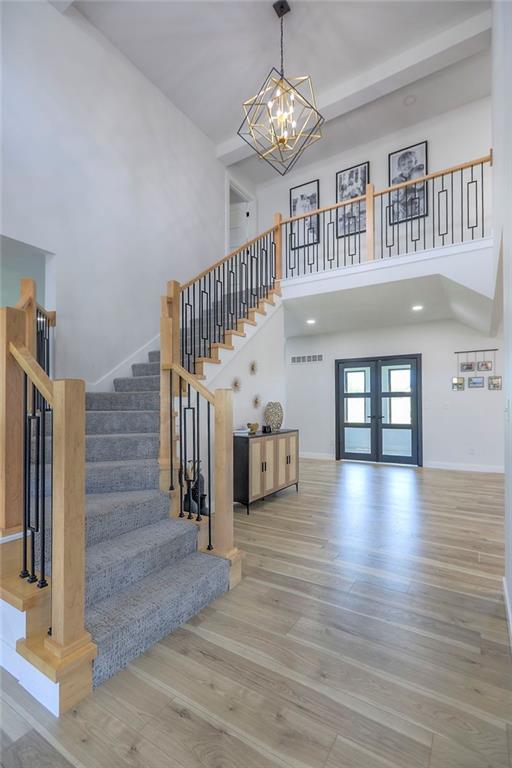 Experience luxury living in this exceptional custom-built home, nestled on over 1.5 acres with a peaceful rural feel just minutes from city amenities. Designed for both comfort and entertainment, this property features an open floor plan with soaring ceilings, rich custom cabinetry in the gourmet kitchen, and spacious living areas throughout. The fully finished walkout basement includes a bar and dedicated theater room, ideal for hosting guests. Enjoy an oversized driveway and a rare suspended lower-level garage, perfect for additional storage, a workshop, or lawn equipment. The home also includes a premium audio system with speakers throughout, an invisible pet fence, and an expansive master suite featuring a stunning oversized shower. Thoughtfully designed from top to bottom, this home blends quality, function, and modern elegance in one incredible package.
