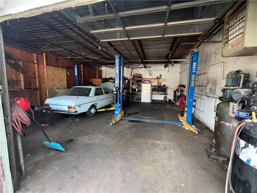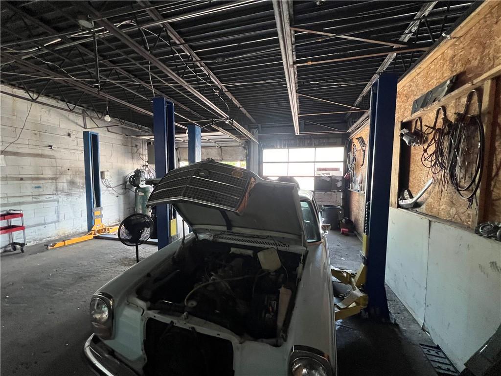 Building has 4 door garage with 3 car lifts. huge 1 acre back lot completely fenced in.