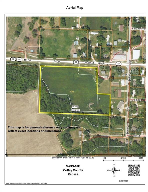 Discover 7.8 acres within the city limits of LeRoy, KS a rare opportunity offering both space and versatility. Mostly level ground with a small wooded area provides the perfect balance of open building space and natural privacy. This property is ideal for development, with room to build multiple homes, or for creating your own secluded retreat while still enjoying the convenience of town. Located on the edge of a peaceful small community, this tract offers endless potential for your vision. Owner financing considered!