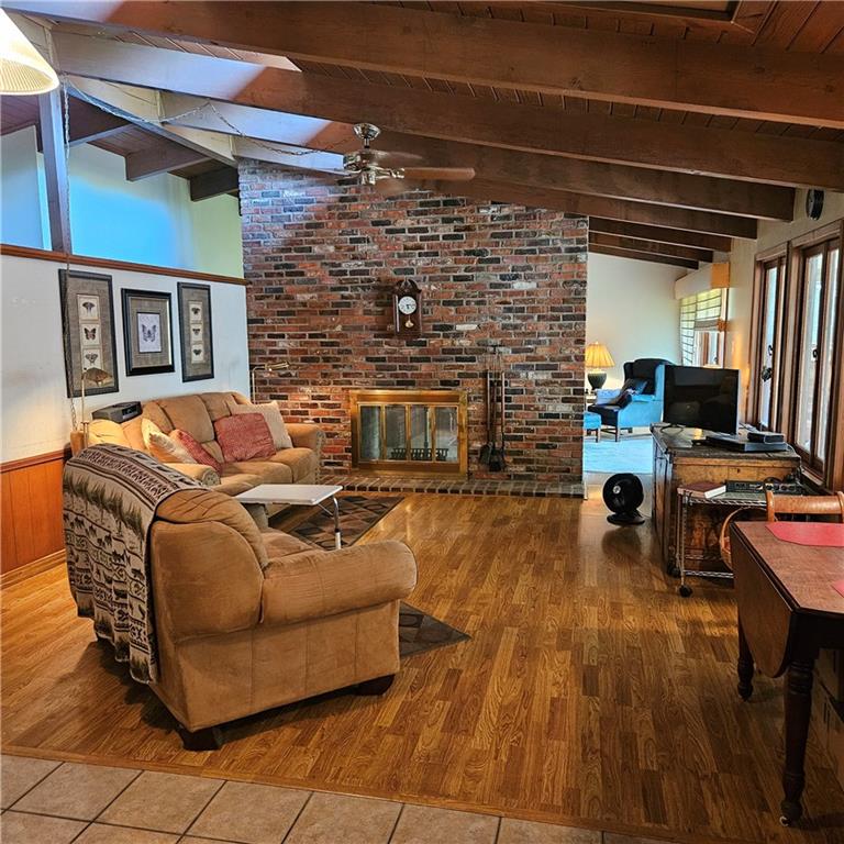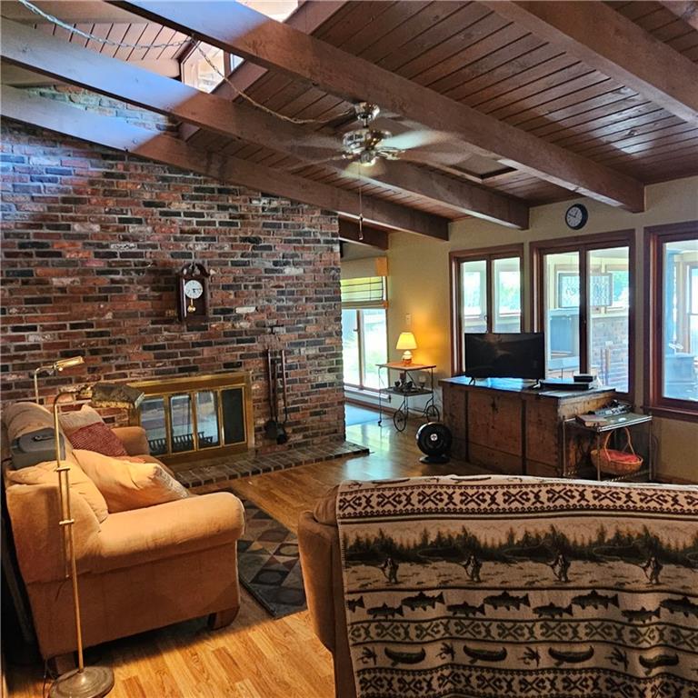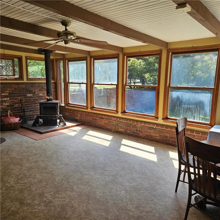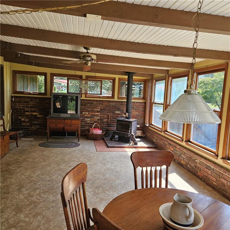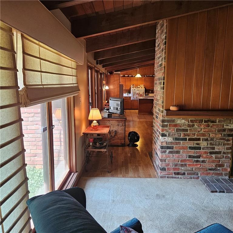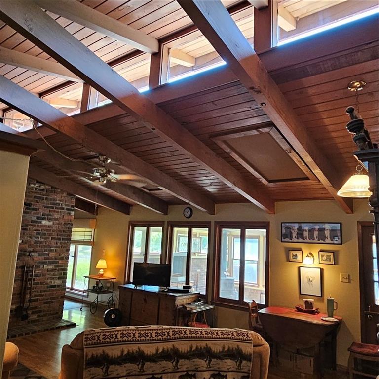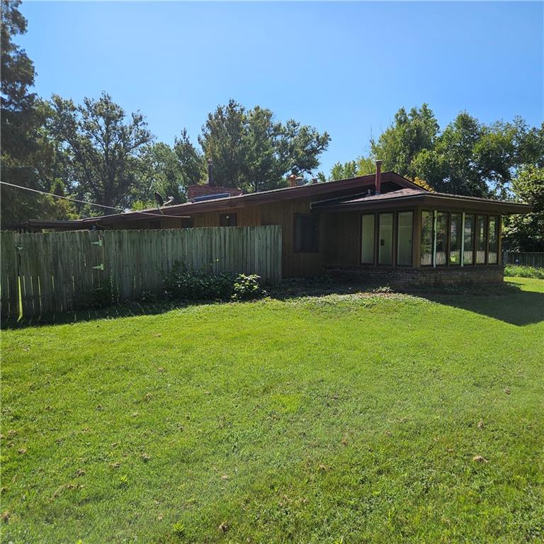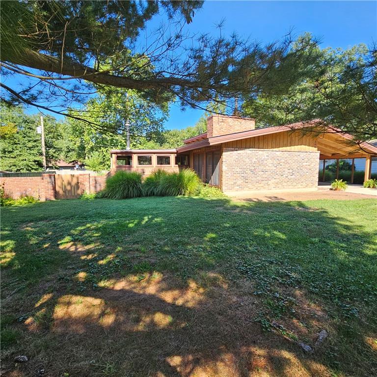 Beautiful Mid-Century Modern home on a huge lot is Priced to Sell! This home features a beautiful cedar wood siding and brick exterior with a 2-car carport. This 3 bedroom, 2 bathroom home was built with many thoughtful interior touches, with clean lines and efficient use of space throughout. A functional, open footprint lets the natural light flow through rooms with beautiful sloped open-beamed ceilings. There is also a 2-sided fireplace that compliments both the living room and family room sides. Spacious bedrooms, bathrooms and an office/craft room bonus space are added features of this amazing home, as well as an open, functional kitchen space. There is also a large 3 season sunroom with a wood-burning stove, and an inviting patio area leading to a large fenced backyard greenspace. The house also had a new roof installed in 2021. This property is an Amazing Value and will not last long.