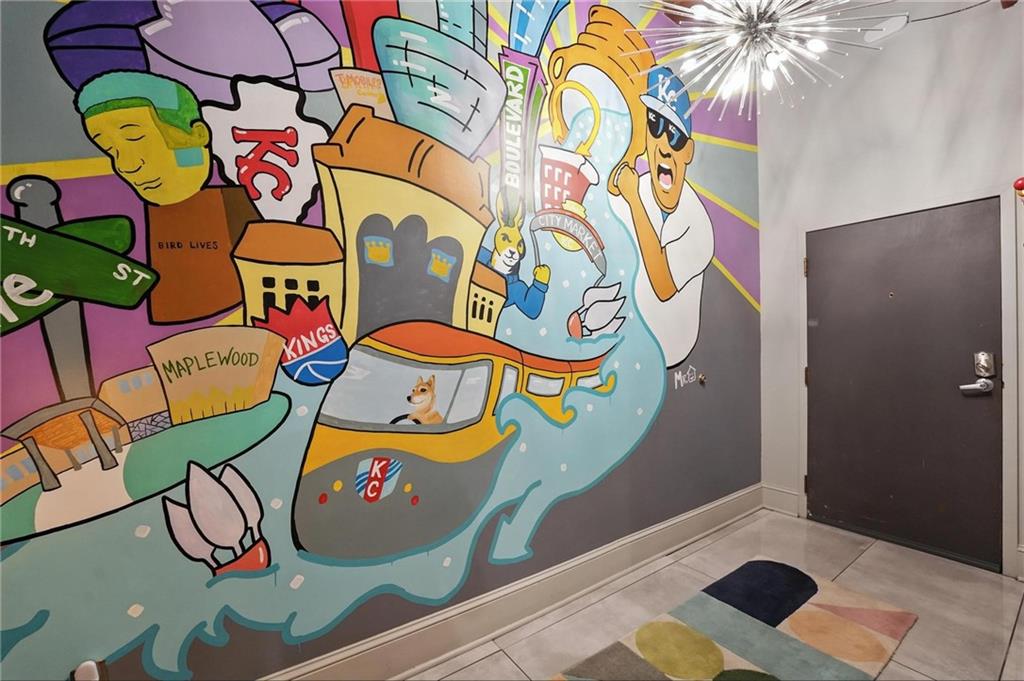 Ready to live in a boutique condo building in the historic Garment District of KCMO? Soho West Condominiums include 21 units with secured private parking. Each unit's floor plan is unique. The professional photos are amazing of Unit 201. Sellers have made some great upgrades, including opening up the main living area for one big open LOFT space. 2'x4' beautiful porcelain floor tiles installed throughout the main living area, great lighting fixtures, and a beautiful artist mural featuring Kansas City favorite points of interest on the entry wall. The loft space can be used in so many different ways, including a gaming area, dining area, multiple conversation areas. Imagine hosting a small group of friends as well as larger parties & gatherings! The front entry to the building was recently renovated by the Association, as well as some windows and the roof! The building has a secured entrance, and the loft itself also has a keypad door lock entry. You can go just a block or so and take the streetcar to the areas of Kansas City you want to explore, including Union Station, Power and Light District, TMobile Center and more! Living in the Garment District you can enjoy coffee shops, restaurants, theaters, working out, City Market: all within a few blocks. This loft looks amazing and has so many great features: all appliances stay, white subway backsplash in the kitchen, custom motorized window blinds, NEST thermostat, built in shelves and since the seller is downsizing, artwork and furniture are also negotiable! The condo association provides assurance on their balance sheet. Association dues of $573 are paid monthly. There is a move in fee of $550 to be paid at closing as well as a $100 transfer fee.
