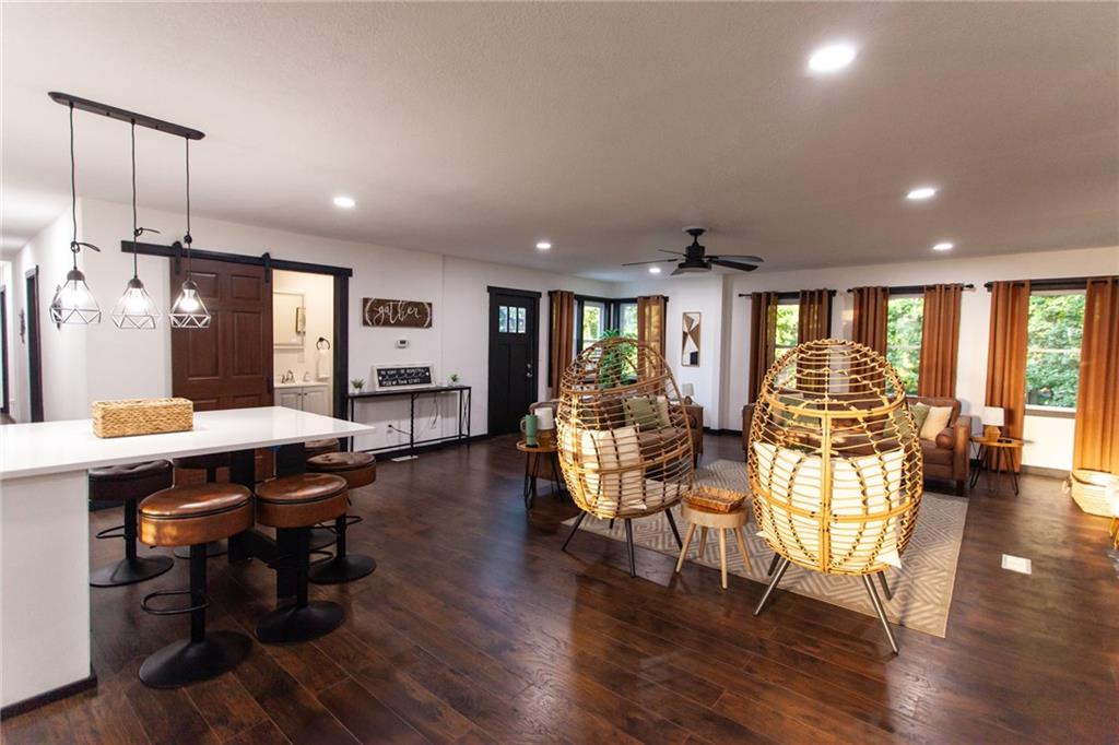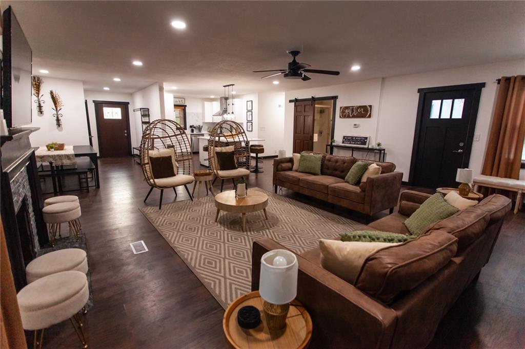 Experience the best of both worlds with this unique property located within city limits! Nearly 3 acres situated on a secluded corner lot just minutes from downtown Kansas City, this open-concept home offers the tranquility of suburban living combined with the convenience of city life. The property includes two additional residential lots, providing you with flexible options: keep them as they are, develop them separately, or sell. The choice is yours! Inside, you'll discover two primary bedroom suites, each accessible from separate entry doors. The home features a total of five bedrooms (possible sixth non-conforming bedroom) and four full bathrooms, ensuring comfort and privacy—ideal for large families, hosting guests, or shared living situations. The main level is perfect for entertaining, featuring a game room and a large patio that opens up to a spacious backyard. You'll also find nearby community activities, biking trails, parks, and pools for added recreation. Additionally, there is a second rear driveway off 47th Street to accommodate large equipment, RVs, or other vehicles. Enjoy ample space between neighbors for a true sense of privacy while still being within the city limits. This is a must-see property!