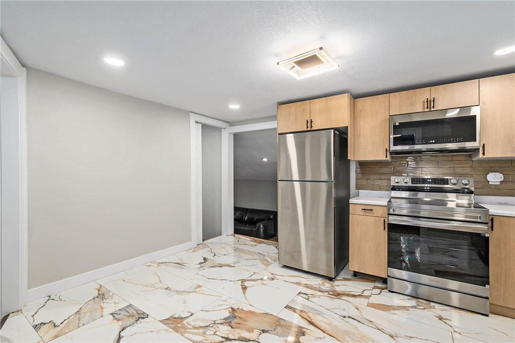 Welcome to 3128 Puckett Road – a beautifully updated mid-century modern side-to-side split that blends timeless style with today’s modern comforts. This 2-bedroom home also features a third non-conforming bedroom in the fully finished basement, offering plenty of flexibility for your lifestyle. Step inside and you’ll love the open feel, highlighted by floating stairs to the second level and a calming neutral paint palette throughout. The kitchen has been modernized with light wood cabinetry, sleek hardware, stainless steel appliances, and striking marble-style tile flooring—creating a bright, fresh space that’s both functional and stylish. The full dining room is perfect for gatherings but could also double as a home office. The basement expands your living space with a full bathroom, laundry room, and non-conforming bedroom—ideal for guests, hobbies, or a private retreat. Outside, the property truly shines with a rare four-car garage plus additional carport—perfect for a small business owner, car enthusiast, or anyone needing extra storage. The fenced yard offers both privacy and space to enjoy the outdoors. Conveniently located right on the Wyandotte and Johnson County line, you’ll have quick access to I-35, shopping, and all the amenities both counties have to offer. The exterior has been freshly painted in a sleek smoky gray with black trim, giving the home striking curb appeal. Don’t miss the chance to own this unique Kansas City gem that’s move-in ready and full of possibilities! *******Ask how qualified buyers may receive up to $10,000 in LENDER CREDIT toward closing costs, available through participating lenders.*********