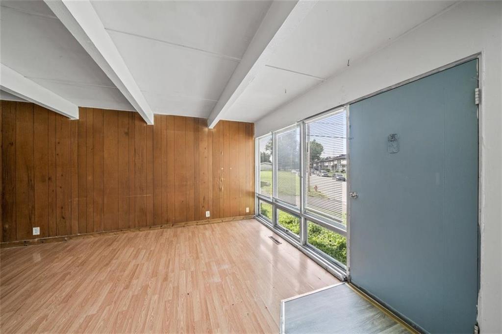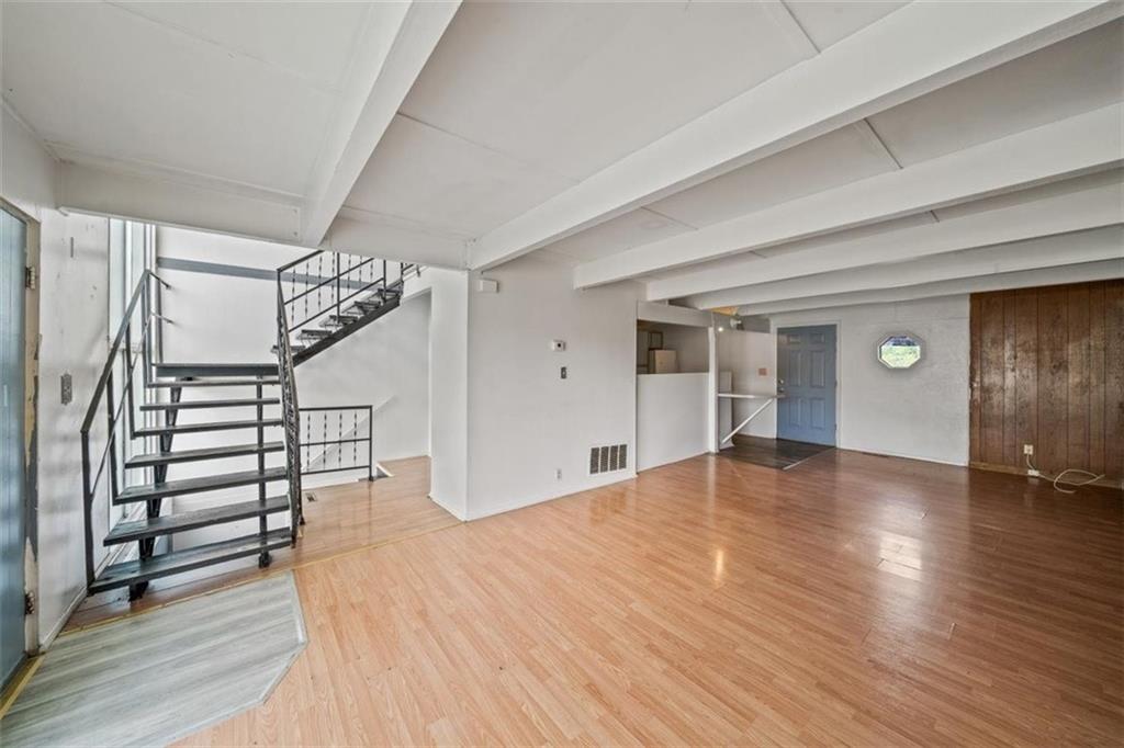 This end-unit townhouse blends mid-century design with an abundance of natural light and functional space. The front entry showcases dramatic floor-to-ceiling windows and exposed beams, creating an open and airy living room that flows seamlessly into the dining area and kitchen. The kitchen offers plenty of cabinet storage and counter space, with sightlines into the main living areas, and a half bath conveniently serves the main floor. Upstairs, you’ll find three bedrooms with fresh carpet and ample light from modern horizontal windows, along with a full bath. A striking metal staircase anchors the interior and adds architectural character. The lower level features a basement with additional space that can be used for storage, hobbies, or entertainment, including a retro-style bar area. The property also includes a private fenced backyard with direct access to covered parking. As an end unit, this townhouse offers extra privacy with green space on one side. Located near State Avenue, this home provides quick access to I-70 and I-635, along with nearby shopping, restaurants, and services.