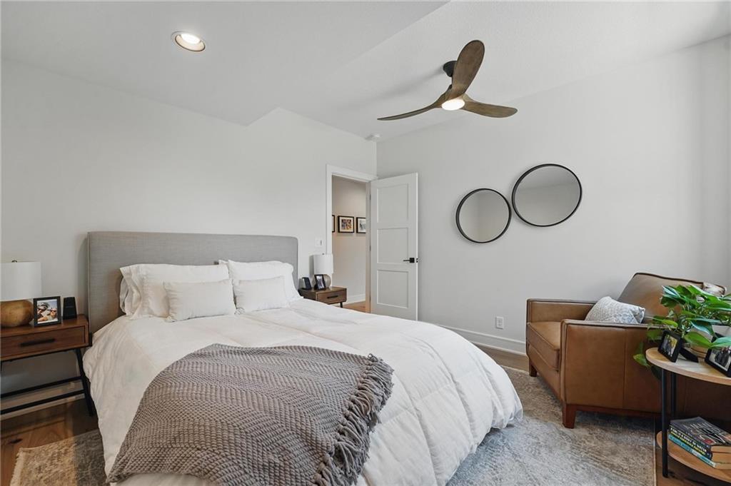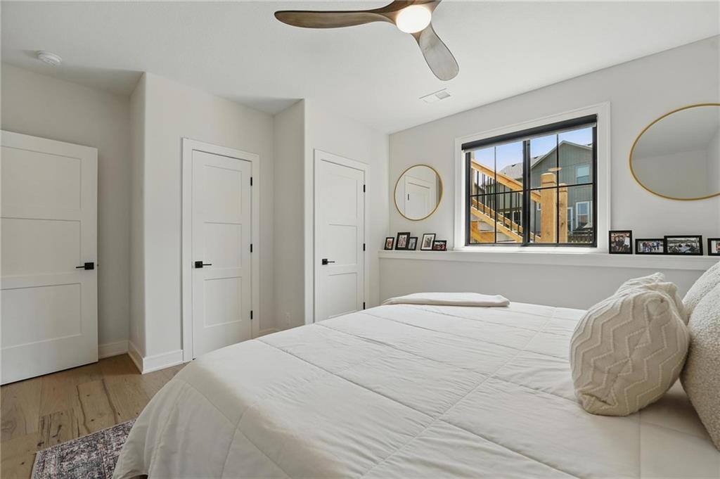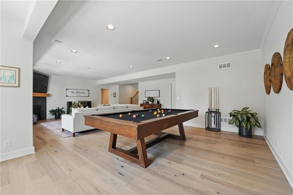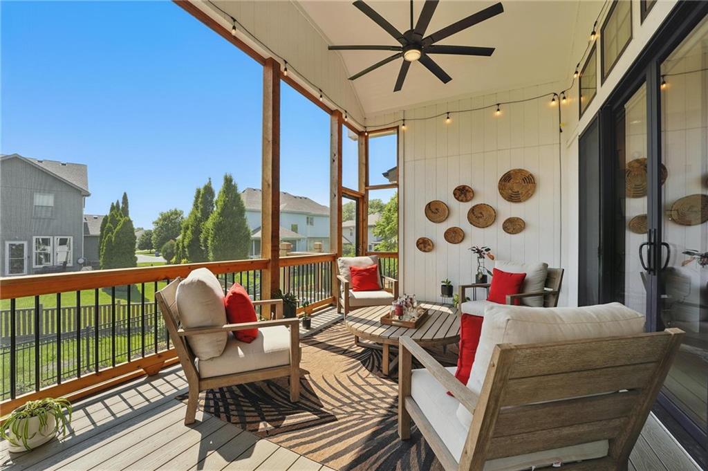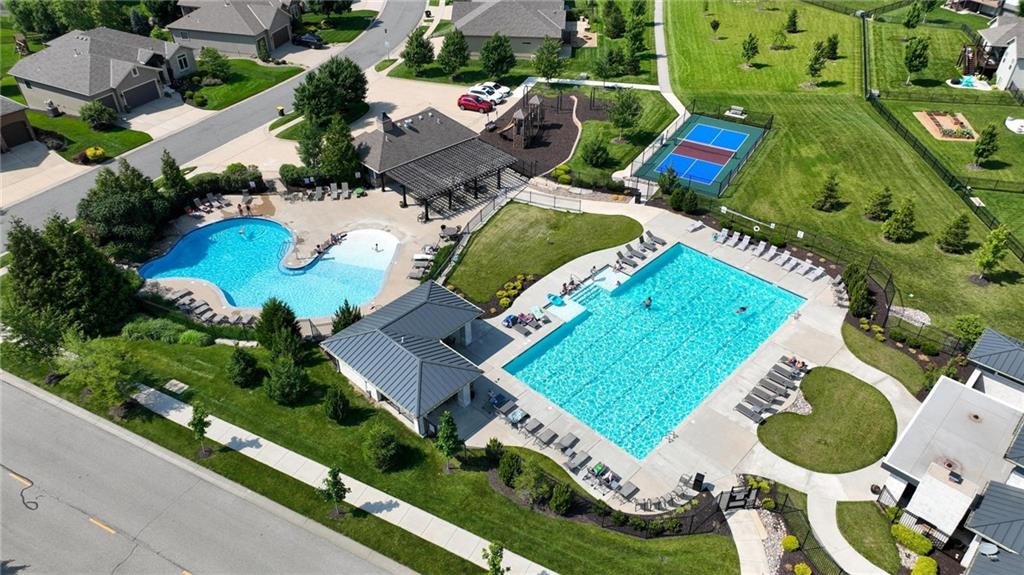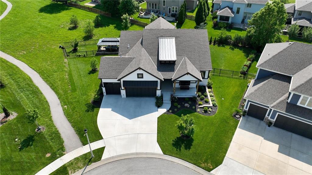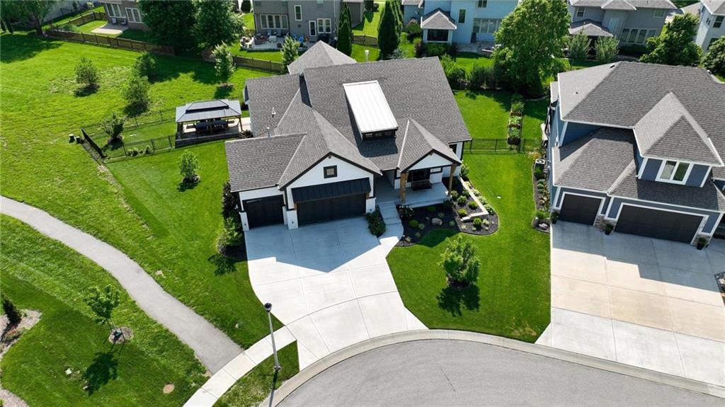 Welcome to this impeccably designed Jefferson EX Reverse 1.5-story home, perfectly situated on a premium cul-de-sac lot With higher end outside light packaging that complements the home. This spectacular home backs to lush green space and walking trail. This showstopper blends luxury and functionality, offering high-end finishes throughout and a setting that feels like a private retreat. Step inside to find 7.5” wide-plank hardwood flooring, custom lighting, and upgraded ceiling fans in every bedroom. The open-concept main level showcases a gourmet kitchen with GE Profile appliances, walk-in custom pantry with built-in baskets, Doubles ovens and a large island perfect for entertaining. Programmable blackout shades throughout the home provide comfort and energy efficiency. The luxurious primary suite features a spa like bath, oversized custom closet with built-in pull-down rods, and direct access to the laundry room for added convenience. Secondary bedrooms are spacious and thoughtfully appointed. Enjoy the outdoors year-round from the screened-in porch and expansive pergola-covered patio. The beautifully landscaped backyard includes drip irrigation, raised planter beds, and a custom dog shower for your furry companions. Additional upgrades include a radon mitigation system, heat circulators, water softener and filtration system, and full-yard automatic sprinkler system. Skip the timelines of building and stress when you can have all the modern features you have been dreaming of with all the upgrades and move-in ready convenince. Neighborhood perks include a community pool, playground, paved walking trails, and quick access to Heritage Park and the Player Golf Course