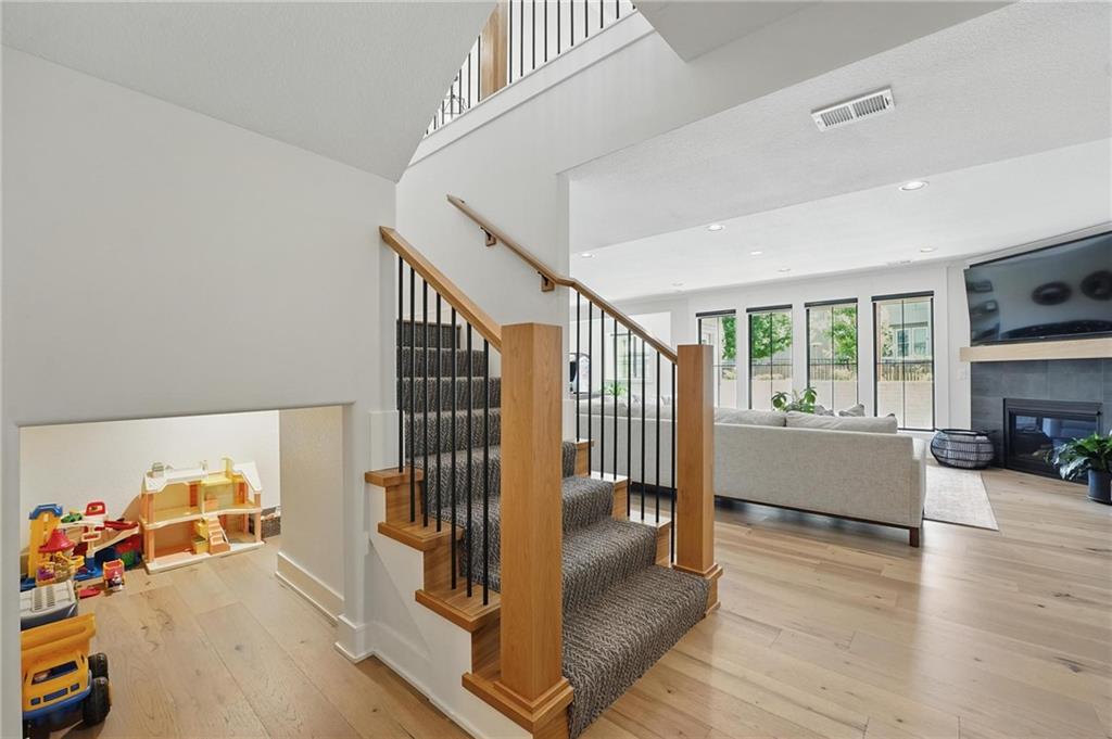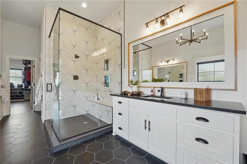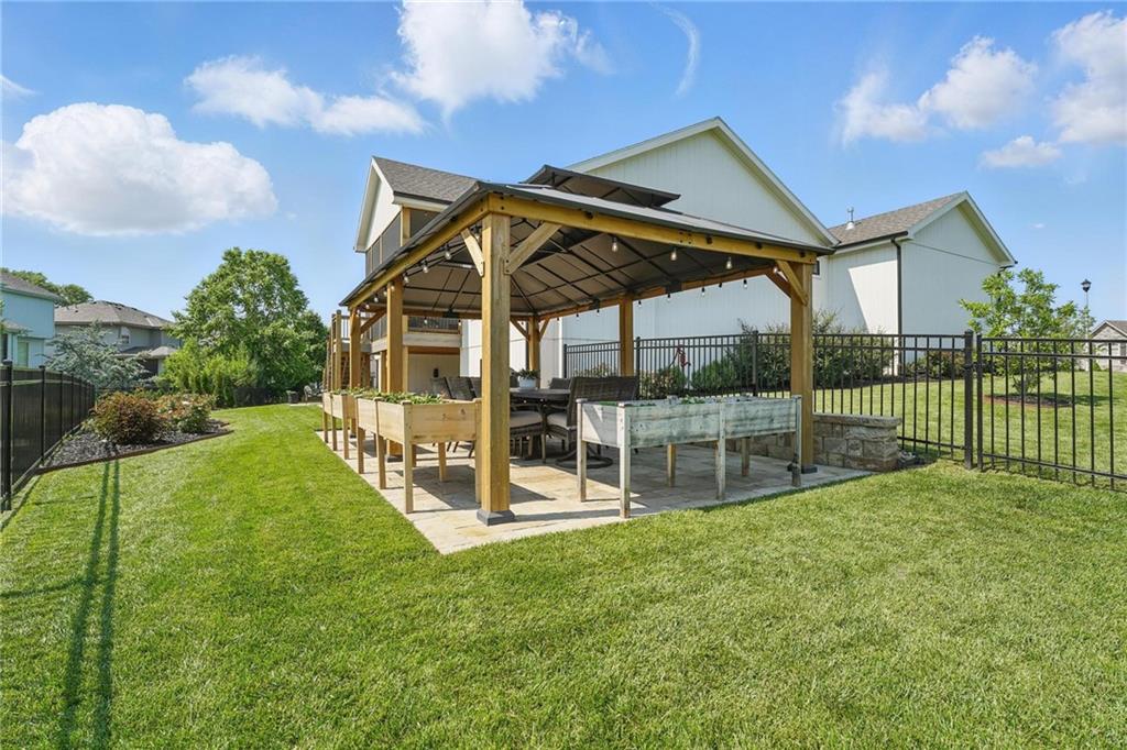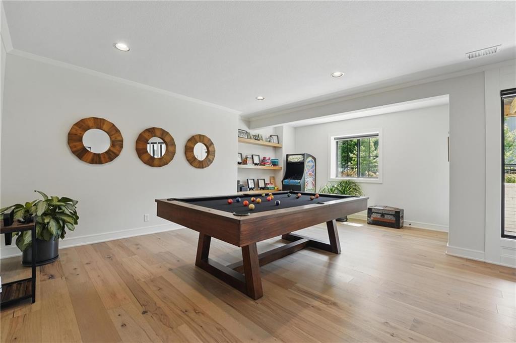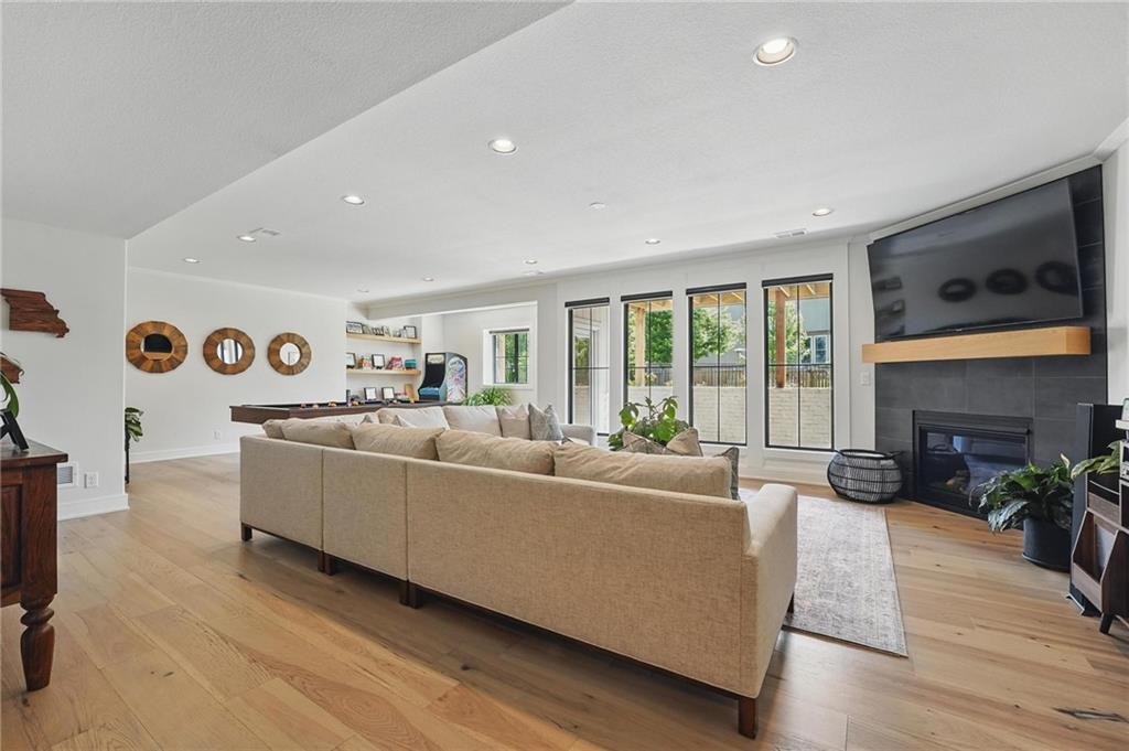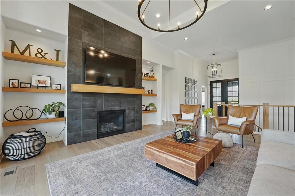 Welcome to this impeccably designed Jefferson EX Reverse 1.5-story home, perfectly situated on a premium cul-de-sac lot With higher end outside light packaging that complements the home. This spectacular home backs to lush green space and walking trail. This showstopper blends luxury and functionality, offering high-end finishes throughout and a setting that feels like a private retreat. Step inside to find 7.5” wide-plank hardwood flooring, custom lighting, and upgraded ceiling fans in every bedroom. The open-concept main level showcases a gourmet kitchen with GE Profile appliances, walk-in custom pantry with built-in baskets, Doubles ovens and a large island perfect for entertaining. Programmable blackout shades throughout the home provide comfort and energy efficiency. The luxurious primary suite features a spa like bath, oversized custom closet with built-in pull-down rods, and direct access to the laundry room for added convenience. Secondary bedrooms are spacious and thoughtfully appointed. Enjoy the outdoors year-round from the screened-in porch and expansive pergola-covered patio. The beautifully landscaped backyard includes drip irrigation, raised planter beds, and a custom dog shower for your furry companions. Additional upgrades include a radon mitigation system, heat circulators, water softener and filtration system, and full-yard automatic sprinkler system. Skip the timelines of building and stress when you can have all the modern features you have been dreaming of with all the upgrades and move-in ready convenince. Neighborhood perks include a community pool, playground, paved walking trails, and quick access to Heritage Park and the Player Golf Course