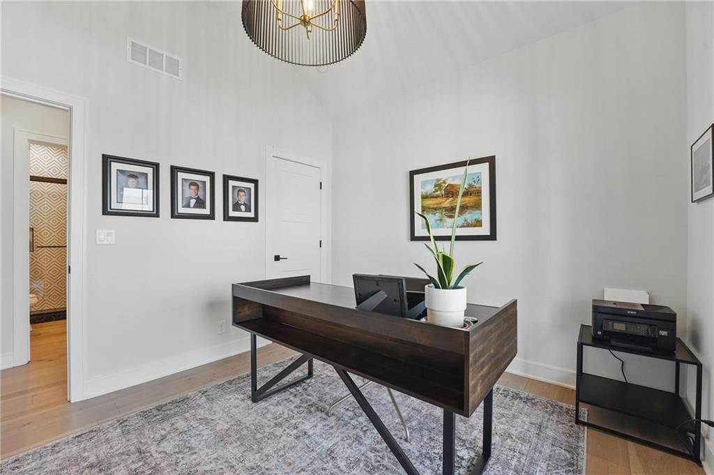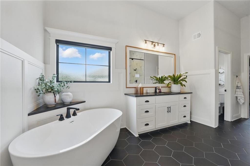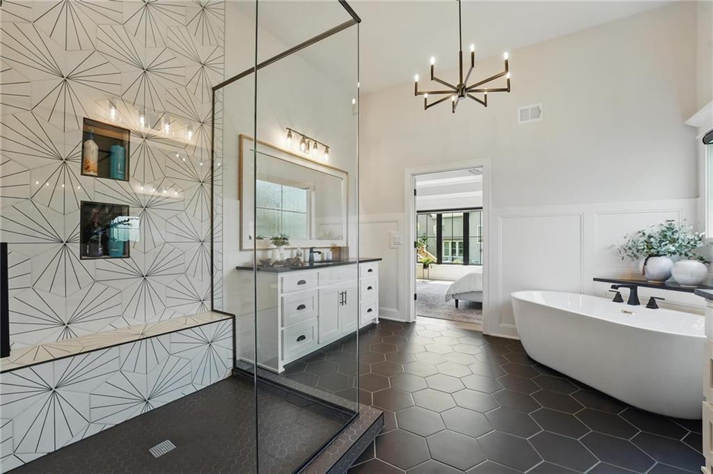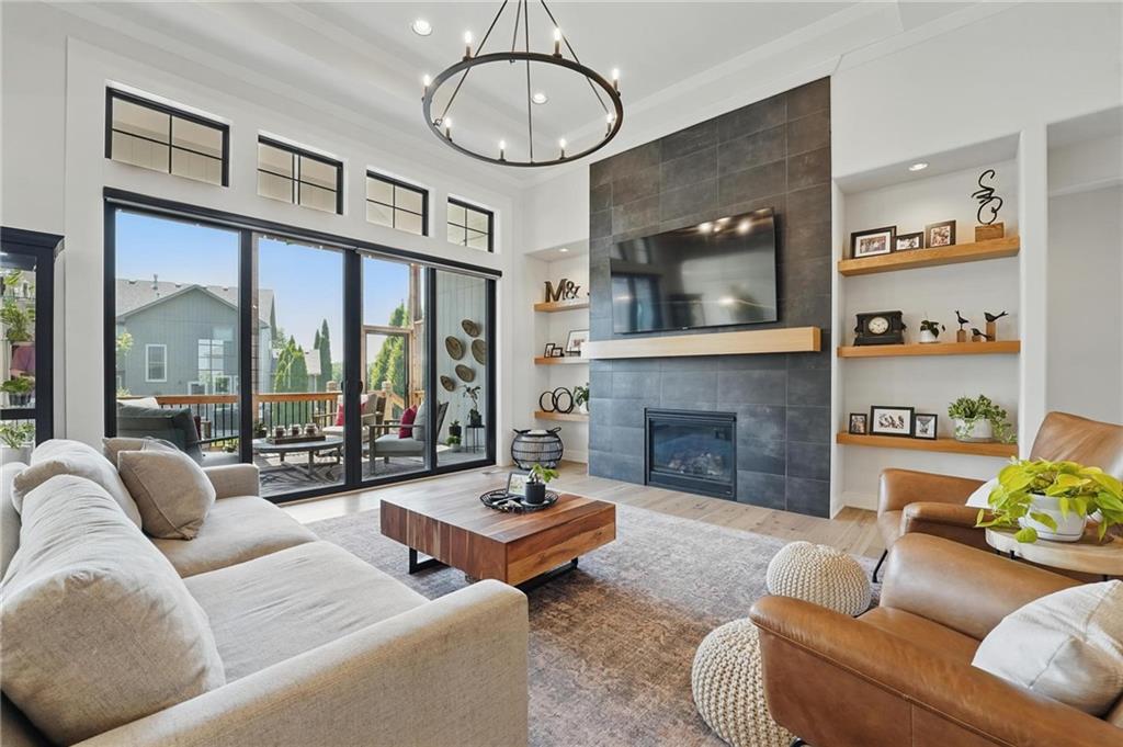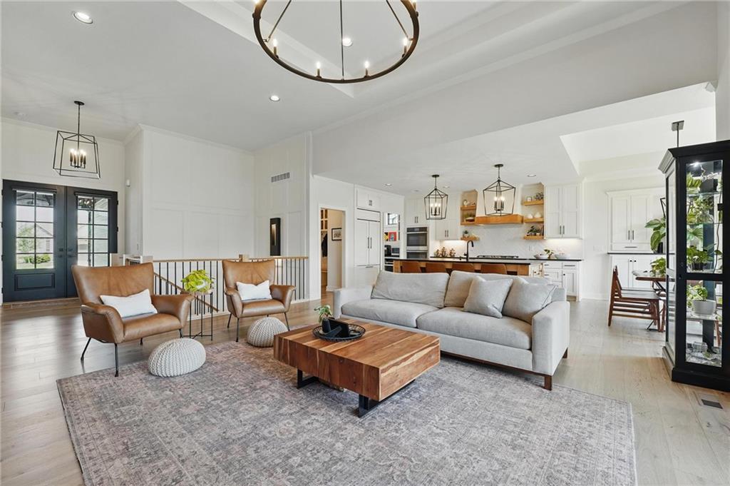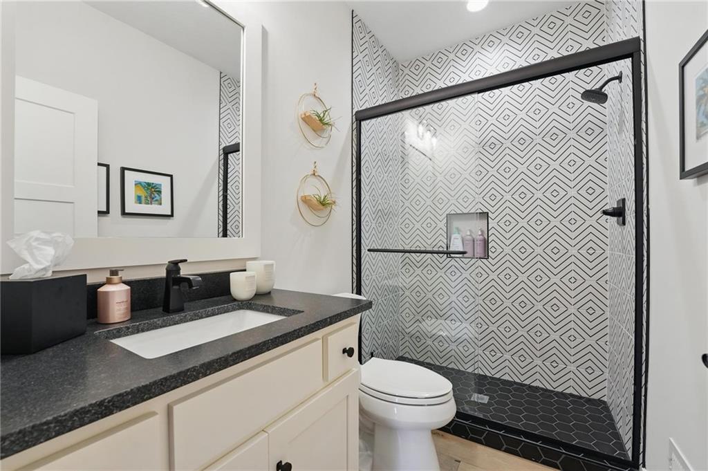 Welcome to this impeccably designed Jefferson EX Reverse 1.5-story home, perfectly situated on a premium cul-de-sac lot With higher end outside light packaging that complements the home. This spectacular home backs to lush green space and walking trail. This showstopper blends luxury and functionality, offering high-end finishes throughout and a setting that feels like a private retreat. Step inside to find 7.5” wide-plank hardwood flooring, custom lighting, and upgraded ceiling fans in every bedroom. The open-concept main level showcases a gourmet kitchen with GE Profile appliances, walk-in custom pantry with built-in baskets, Doubles ovens and a large island perfect for entertaining. Programmable blackout shades throughout the home provide comfort and energy efficiency. The luxurious primary suite features a spa like bath, oversized custom closet with built-in pull-down rods, and direct access to the laundry room for added convenience. Secondary bedrooms are spacious and thoughtfully appointed. Enjoy the outdoors year-round from the screened-in porch and expansive pergola-covered patio. The beautifully landscaped backyard includes drip irrigation, raised planter beds, and a custom dog shower for your furry companions. Additional upgrades include a radon mitigation system, heat circulators, water softener and filtration system, and full-yard automatic sprinkler system. Skip the timelines of building and stress when you can have all the modern features you have been dreaming of with all the upgrades and move-in ready convenince. Neighborhood perks include a community pool, playground, paved walking trails, and quick access to Heritage Park and the Player Golf Course