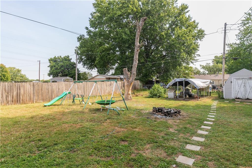 *Back on the market due to buyers financing falling through.* Welcome to this 3 bedroom, 1.5 bathroom ranch. The main floor offers a spacious living room, a kitchen that opens to the dining room, three bedrooms, and a full bathroom. The finished basement provides a large family room that could also be used as a non-conforming fourth bedroom, along with a half bathroom, laundry area, and plenty of storage space. Outside, you will find a fully fenced yard, an attached carport, and a covered patio that is perfect for outdoor living.