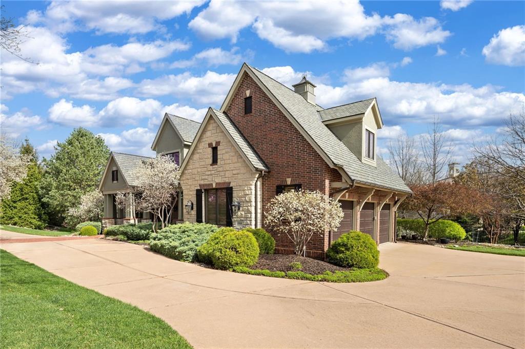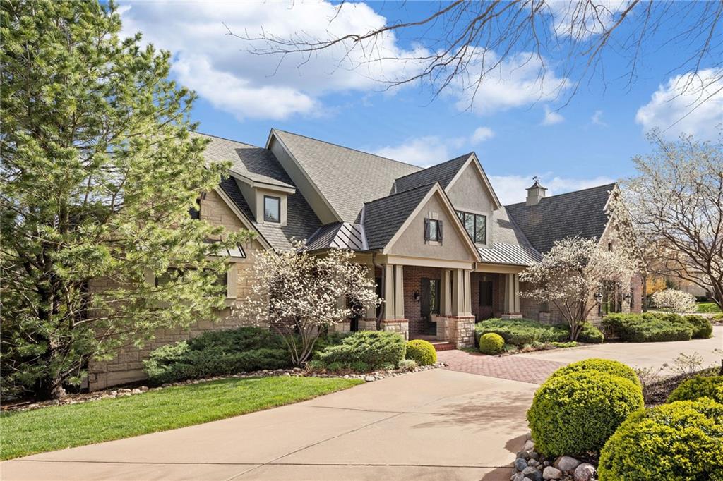$100,000 PRICE REDUCTION! Estimated reproduction value near $4,000,000. Welcome to this ultra high quality estate designed by Scott Bickford and masterfully constructed by Rick Forner in The Estates of GlenEagles. Greeting you is an oversized circle drive with plush landscaping and sprawling all-brick front sitting porch. The home is constructed with an all brick and stone exterior, iron windows, and copper guttering with multiple outdoor areas including an indoor/outdoor sun room and grand elevated veranda with full outdoor kitchen. The walkout lower level leads to a newly refinished all-brick sprawling patio and stained under deck ceiling with expansive space for entertaining. Sound system throughout. All oversized rooms with 14 foot ceilings in main level and vaulted ceilings in the kitchen, primary bedroom, and sun room. Primary suite features expansive closet and island for even more storage. Kitchen with beautifully constructed floor-to-ceiling custom cabinetry, butlers pantry, and new appliances. The upper floor includes three bedroom suites, each with walk-in closets and private baths. The completely redone lower level includes an extra bedroom/office, full bath, theater/living area, game area, and full oversized kitchen with all appliances. Plus, heated floors throughout entire lower level! Plethora of storage space and separate double door entrance with side pathway for garden tool/mower storage. Low energy costs with the entire home running on GEOTHERMAL! Welcome to unrivaled quality and craftsmanship - no expense has been spared. This is an extraordinary opportunity to own one of Overland Park's finest estates.