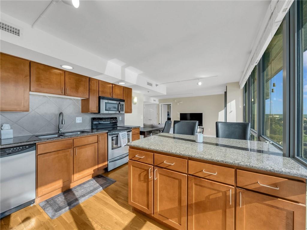 Turnkey condominium living in downtown Kansas City - all that is missing is you! All furniture will be included in this sale. 2 deeded parking spaces - 1 garage, 1 surface. Minutes from freeways, River Market, KC Current Stadium, Power & Light District and Streetcar line, which will soon go all the way to the Plaza and UMKC. The View is a condominium rich with amenities including an outside pool and hot tub; full gym; sauna; theater room; game room; social room for hosting parties; tennis court; dedicated covered storage; helpful concierge and great community. DOG FRIENDLY!