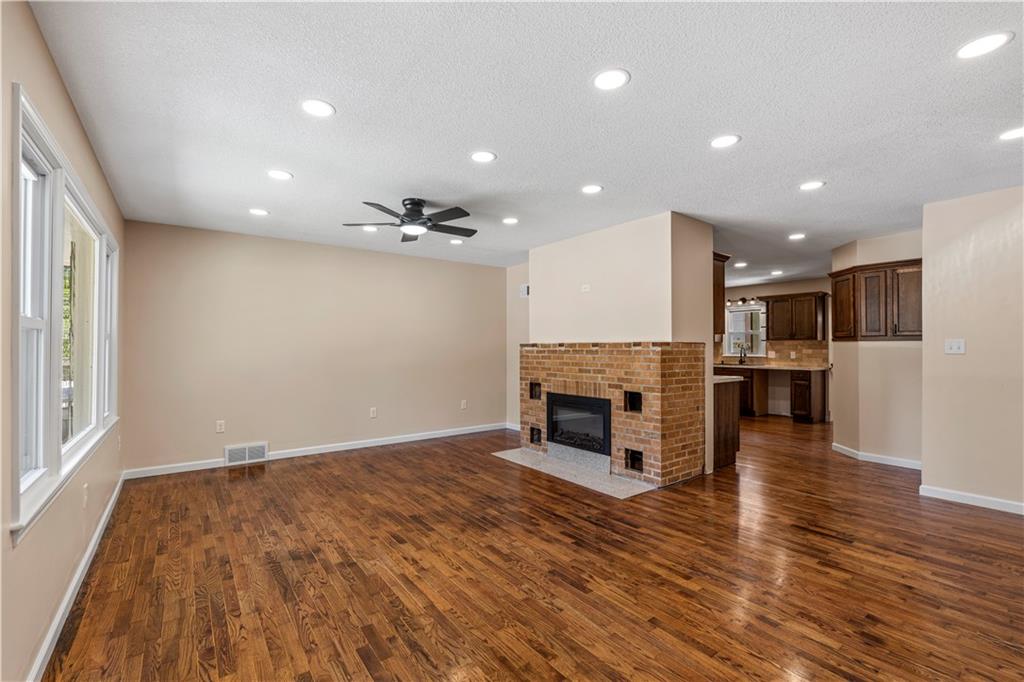 This 3 bedroom, 3 bath home pairs the timeless curb appeal of a Mid-Century brick ranch with the comfort of a full modern remodel. Step inside to discover superior lighting and bright, airy finishes throughout. Refinished hardwood floors, fresh paint, modern fixtures, and a cozy fireplace set the tone in the main living room. The eat-in kitchen and dining area flow together beautifully with updated cabinetry and stylish tile work. The main level offers two bedrooms and two brand-new bathrooms with custom tile showers and sleek vanities. The lower level features a true third bedroom retreat with its own full bath and expansive walk-in closet, along with an unfinished bonus room offering potential for a future fourth bedroom, home office, or second living area. The remodel was completed in 2025, including major system updates: HVAC, water heater, electrical, and plumbing. Outside, you’ll love the brand-new concrete driveway, a metal roof for lasting durability, and the convenience of a drive-through garage with two overhead doors. Move-in ready, beautifully bright, and updated where it matters most, this Mid-Century brick ranch is ready for its next chapter.