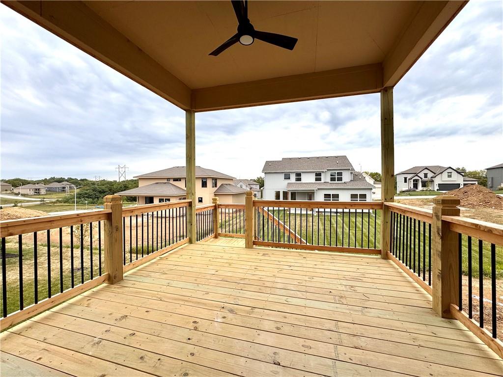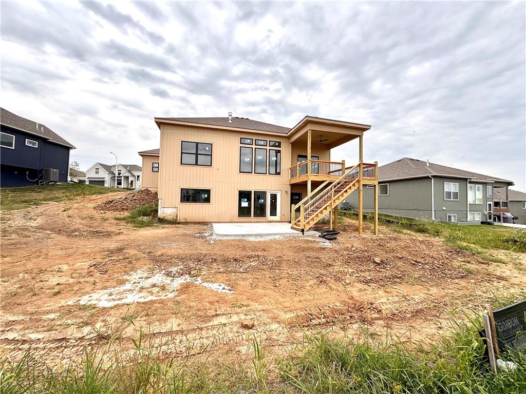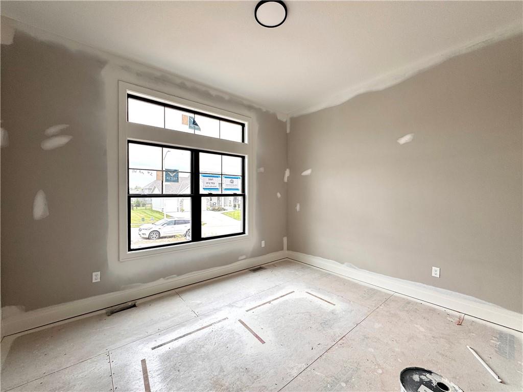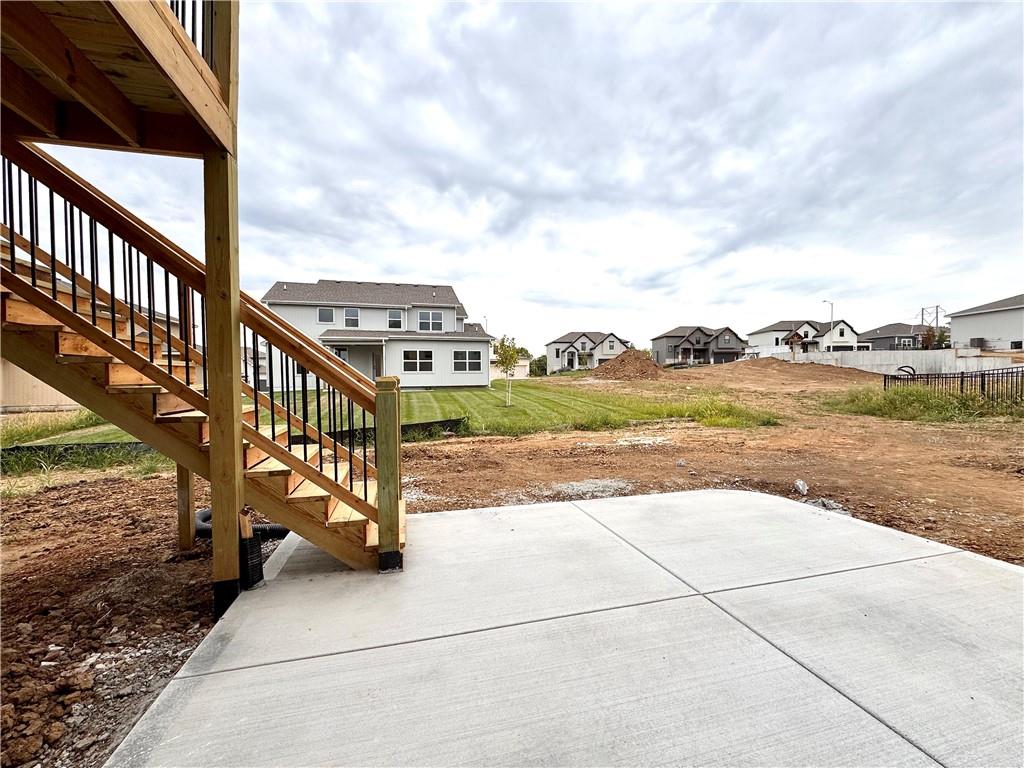 Putting the finishing touches on this McKinley Modern Farmhouse reverse 1.5-story by Hearthside Homes. Offering 4 bedrooms, 3 bathrooms, and nearly 2,900 square feet of finished living space, this home combines thoughtful design with modern convenience. The main floor features a seamless flow between the great room, kitchen, and dining area, anchored by a fireplace and large island that make it perfect for gatherings. A walk-in pantry, covered deck, and 3-car garage with EV plug add function and flexibility. The primary suite includes a retreat-worthy bath with a freestanding tub, tiled shower, and double vanity, along with a massive walk-in closet that connects directly to the laundry room. A second bedroom and full bath complete the main level. Downstairs, the finished lower level offers a spacious family room with built-in wet bar, two additional bedrooms, a full bath, and generous storage. A walkout to the extended patio provides an ideal setting for outdoor entertaining or quiet evenings at home. Every Hearthside home includes a 12-month builder warranty and exceeds industry standards with third-party inspections covering cosmetic and mechanical systems, sewer line, and HVAC duct cleaning. Located in Benson Place, residents enjoy two community swimming pools, a splash park, fishing lake, playgrounds, walking trails, and abundant green space. Convenient access to major highways, the new KCI airport, and downtown Kansas City makes this Northland location a standout. With on-trend black framed windows and timeless farmhouse character, the McKinley blends comfort, style, and everyday livability in one remarkable package.