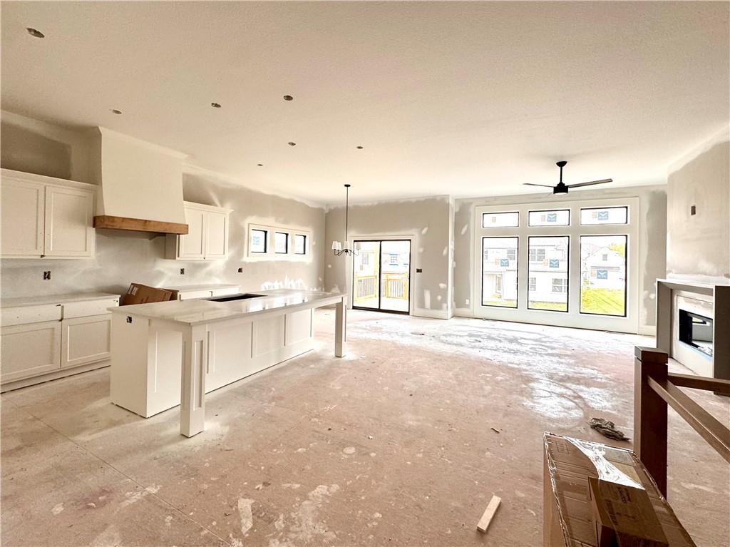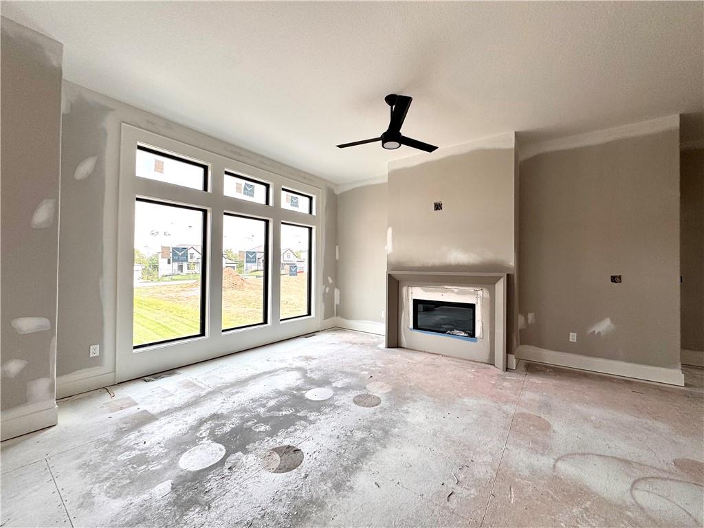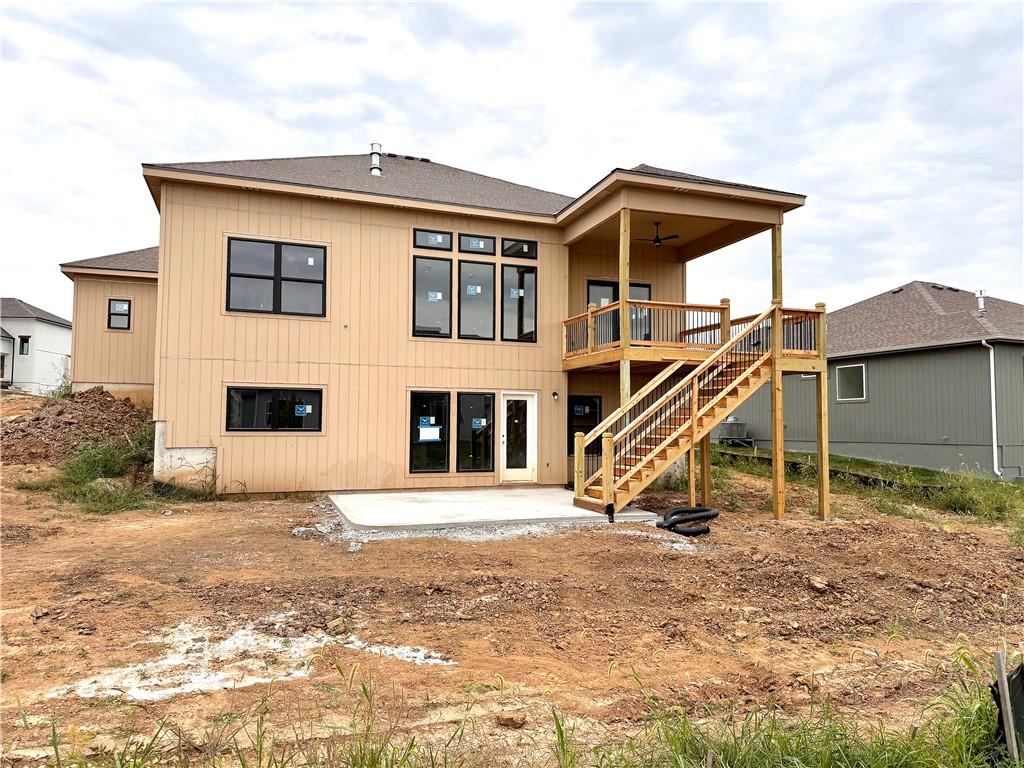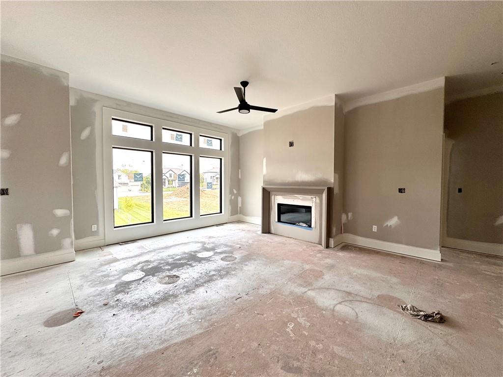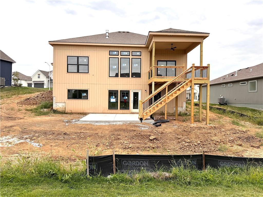 Putting the finishing touches on this McKinley Modern Farmhouse reverse 1.5-story by Hearthside Homes. Offering 4 bedrooms, 3 bathrooms, and nearly 2,900 square feet of finished living space, this home combines thoughtful design with modern convenience. The main floor features a seamless flow between the great room, kitchen, and dining area, anchored by a fireplace and large island that make it perfect for gatherings. A walk-in pantry, covered deck, and 3-car garage with EV plug add function and flexibility. The primary suite includes a retreat-worthy bath with a freestanding tub, tiled shower, and double vanity, along with a massive walk-in closet that connects directly to the laundry room. A second bedroom and full bath complete the main level. Downstairs, the finished lower level offers a spacious family room with built-in wet bar, two additional bedrooms, a full bath, and generous storage. A walkout to the extended patio provides an ideal setting for outdoor entertaining or quiet evenings at home. Every Hearthside home includes a 12-month builder warranty and exceeds industry standards with third-party inspections covering cosmetic and mechanical systems, sewer line, and HVAC duct cleaning. Located in Benson Place, residents enjoy two community swimming pools, a splash park, fishing lake, playgrounds, walking trails, and abundant green space. Convenient access to major highways, the new KCI airport, and downtown Kansas City makes this Northland location a standout. With on-trend black framed windows and timeless farmhouse character, the McKinley blends comfort, style, and everyday livability in one remarkable package.