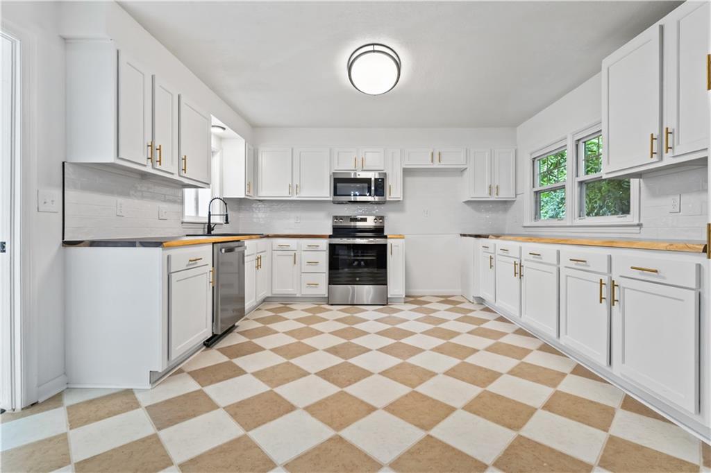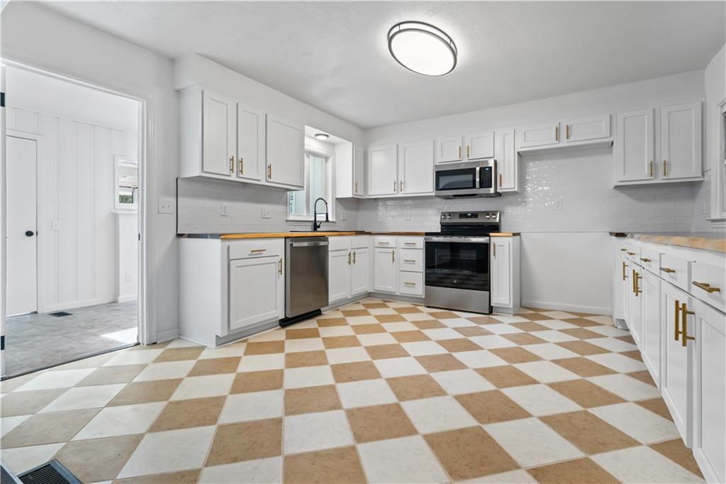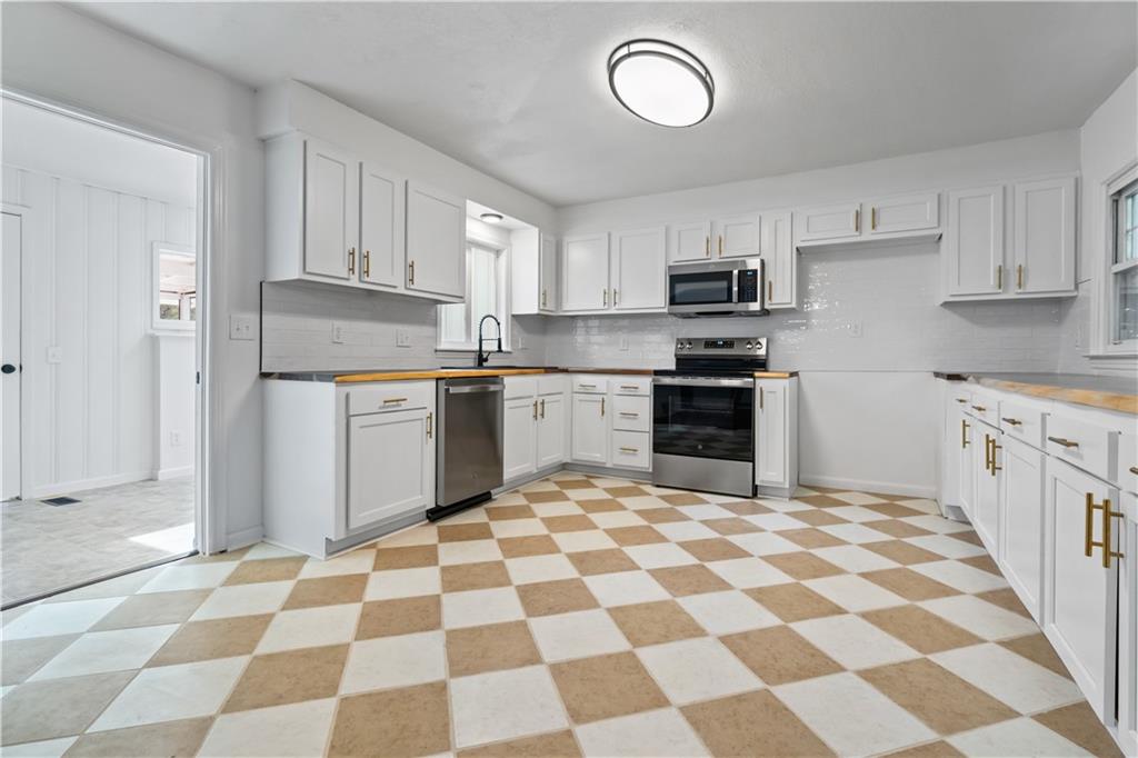 Welcome to this fully remodeled 4 bedroom, 2.5 bathroom home. Step inside to a spacious living room featuring a cozy wood burning fireplace, built ins, a bay window, and newly refinished hardwood floors. The dining room offers plenty of space for entertaining and also showcases built ins and gleaming hardwoods, seamlessly connecting to the show stopping kitchen. The kitchen is truly the heart of this home, boasting a ton of custom cabinets, a designer backsplash, live edge butcher block countertops, and tile flooring. On the main level, you’ll also find a stunning bathroom with a rain shower head, the primary suite with a private bath, a second bedroom, a light filled laundry room with skylights, and a relaxing screened in porch. Upstairs, discover two additional bedrooms, one with built ins and a walk in closet, along with a convenient half bath. The home also includes a two car garage, a spacious backyard (almost half an acre!), and a brand new roof. This property has been given a top to bottom makeover, replacing the old with the new but still keeping the charm and character that this home has. It's ready for its new owners to move right in and enjoy!