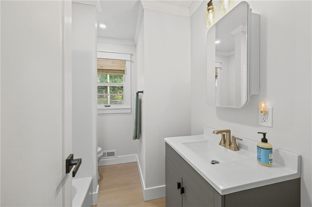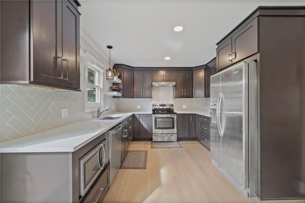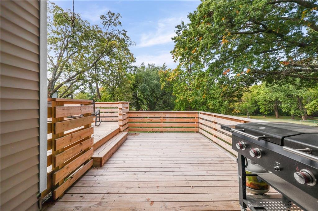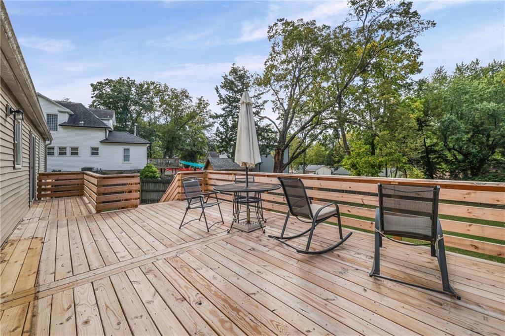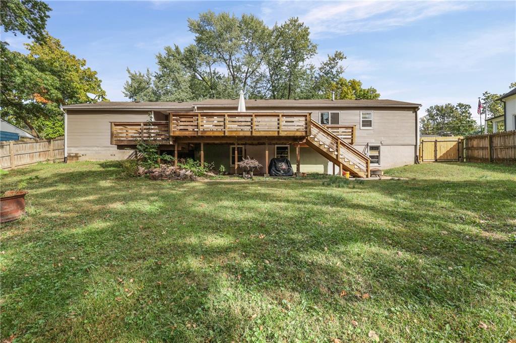 Updated Ranch with Huge Backyard and Deck This beautifully updated ranch is move-in ready and full of modern touches. The seller has done the hard work for you — with fresh flooring, neutral paint, crisp trim, and updated lighting throughout. The bright, open layout connects the living, dining, and kitchen areas seamlessly, creating a comfortable flow for everyday living. The kitchen features updated cabinetry, backsplash, and stainless steel appliances, with direct access to a large, multi-level deck perfect for grilling or entertaining. covered breezeway between the garage and the home makes it great to bring in your groceries. The basement provides plenty of extra storage and laundry space. The fully fenced backyard is spacious and private, offering room for kids, pets, or gatherings under the trees. With a two-car garage, excellent outdoor living space, and a convenient location, this home blends comfort, function, and style — all move-in ready and beautifully maintained. Buyer(s) and/or Buyer's Agent to verify all taxes, sqft, school district information, etc. Room, basement and lot size are approximate.