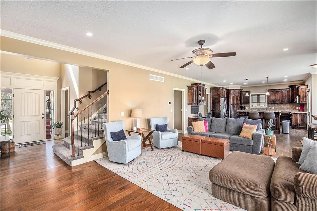 This stunning 5-bedroom home offers the perfect blend of style, comfort, and convenience—all within the highly sought-after Lee’s Summit School District. Step inside to find gorgeous hardwood floors, a bright and inviting living space, and a kitchen designed for both cooking and gathering—featuring granite countertops, stainless steel appliances, and plenty of storage. The oversized primary suite is truly a retreat, complete with a spa-like en-suite bathroom and a huge walk-in closet you’ll fall in love with. Fresh updates throughout include new exterior paint, plush new carpet, and tasteful modern touches that make this home move-in ready. The finished lower level is the ultimate space for entertaining, hosting game nights, or creating the perfect media room. Sitting on almost 1/2 an acre, privacy & space is abundant!