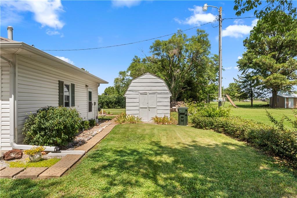 Welcome home to this charming one-level property just east of Nevada, Missouri! Built in 1985, this 3-bedroom, 1-bathroom home is ready for its new owners. Enjoy peace of mind with a list of recent improvements. The heat and air systems and water heater were all replaced in 2025, ensuring comfort and efficiency for years to come. The home's exterior features durable vinyl siding, while the interior boasts newer flooring and appliances. The beautifully landscaped yard is a true standout, complete with mature shade trees and a storage shed for all your tools. The property offers easy access to 54 Highway with convenient highway frontage.