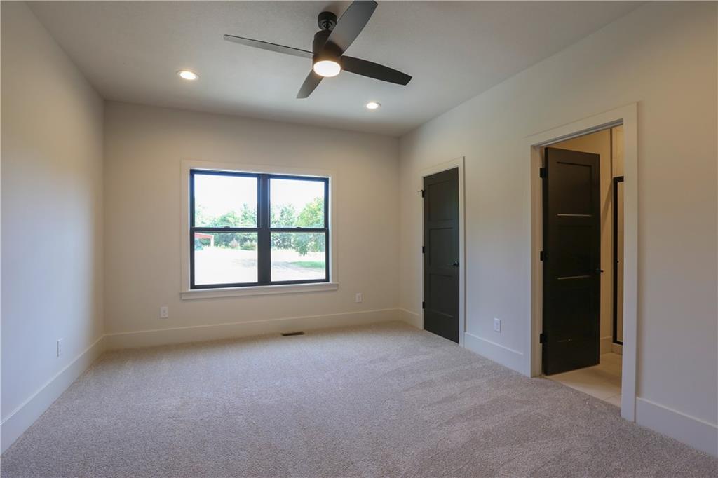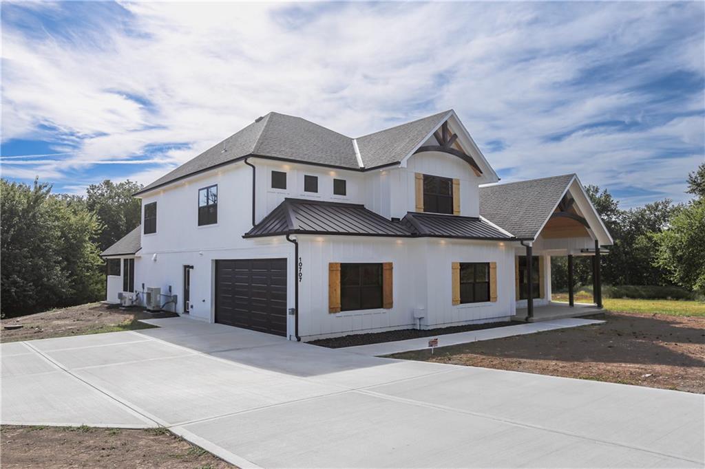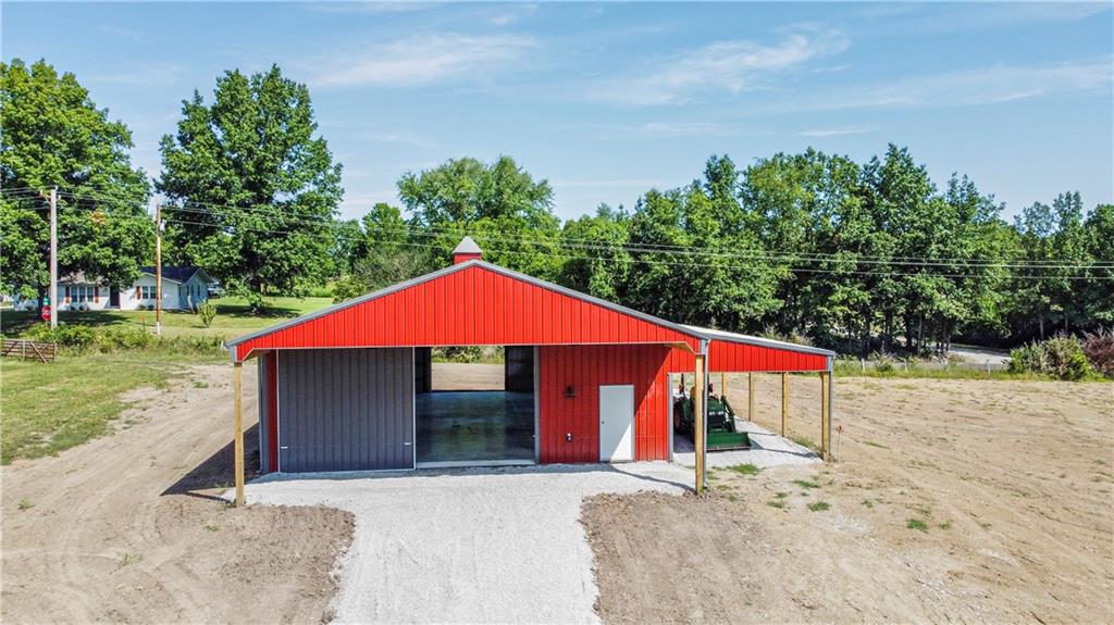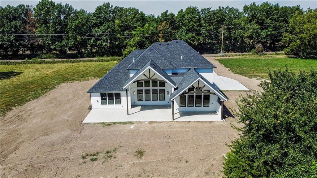 Luxury meets country living in The Westbrook by KC Custom Homes! This 1.5-story custom estate sits on 10+ rolling acres with a meandering creek and 12-ft deep pond. Featuring over 3,400 finished sq ft, the home showcases soaring 18-ft ceilings, a 40-ft wide great room, and a designer kitchen with oversized island, quartz counters, custom cabinetry, accent lighting, and a vaulted dining area. The main-level primary suite offers a spa-like bath with freestanding tub, tiled walk-in shower, and custom walk-in closet, plus a private office and designer half bath. Upstairs, 3 bedrooms each include en-suite baths and walk-in closets. Designer details throughout: exposed wood beams, tall trim, wainscoting, feature walls, curated lighting, and cedar arches with LED up-lighting. Outdoor living includes a cathedral-ceiling front porch, covered patio, and outdoor cooking area with gas/electric hookups. A new 40’x50’ barn offers a concrete floor, full power, two 15’ sliding doors, 3 horse doors, a 15’x50’ lean-to, and 10’ front overhang—perfect for livestock, storage, or workshop needs. Additional highlights: extra-deep garage, spray-foam insulation, sound-insulated walls, soffit lighting, in-wall Yamaha speakers, wired for generator/hot tub/security/future pond power, Tamko Titan shingles, HBW 210 warranty, and a full pet station with wash area, kennel, pet door & Dutch door. A rare opportunity to enjoy luxury living with country serenity just minutes from city conveniences.