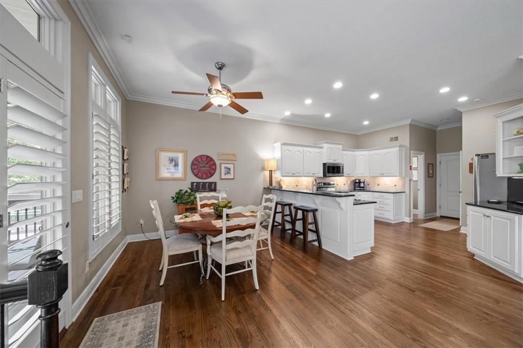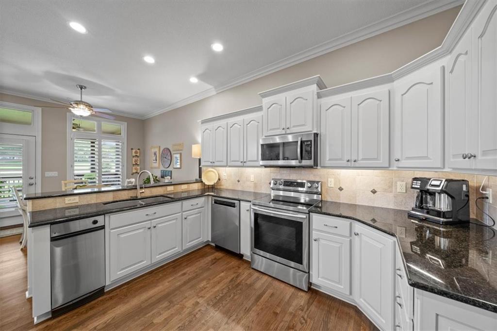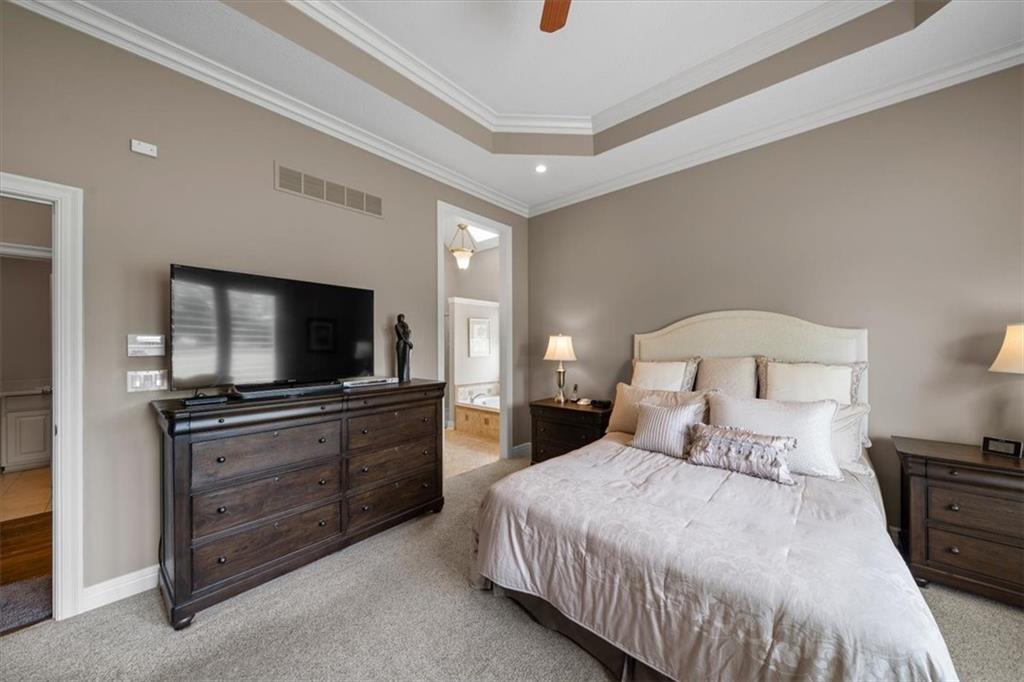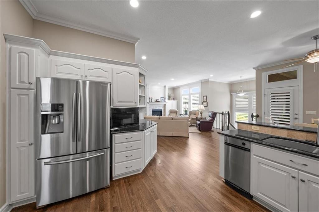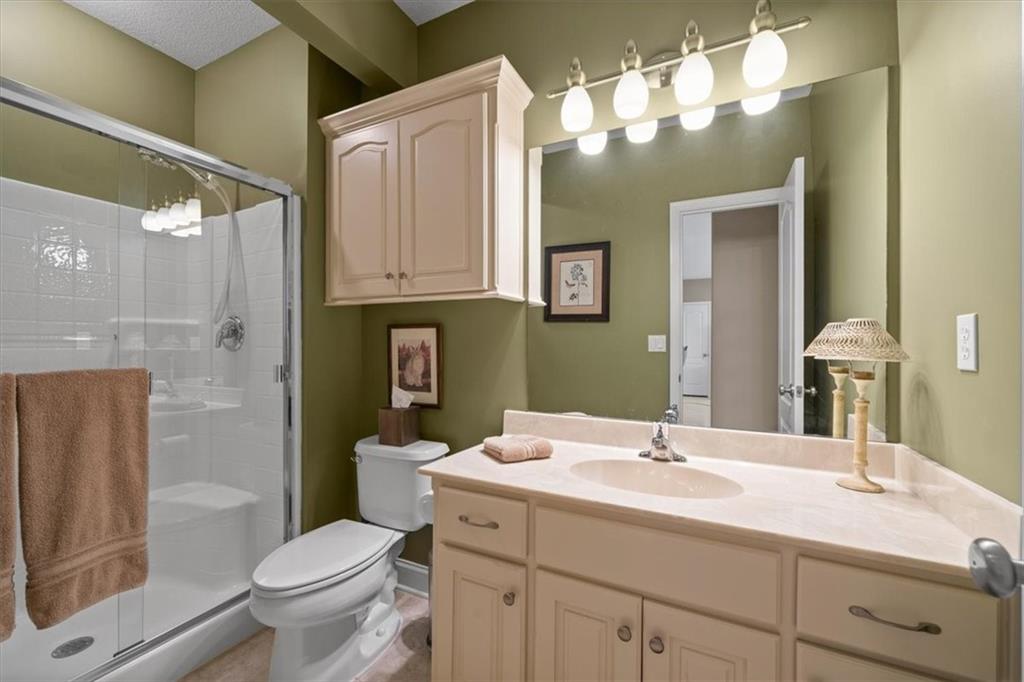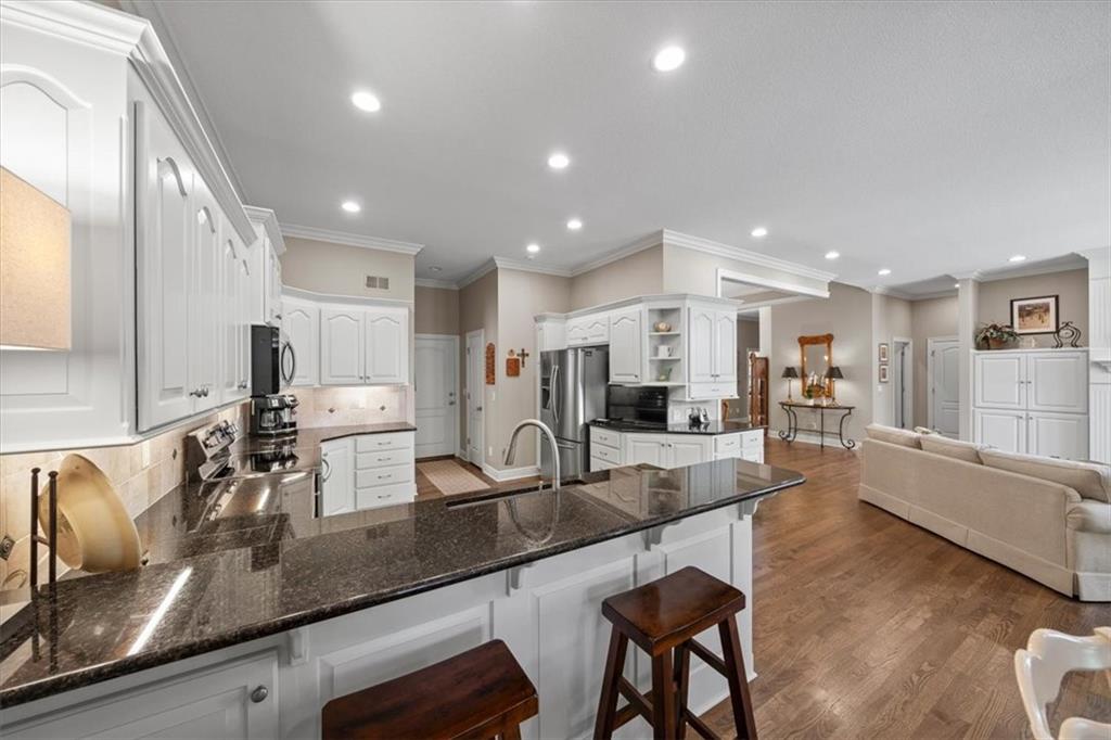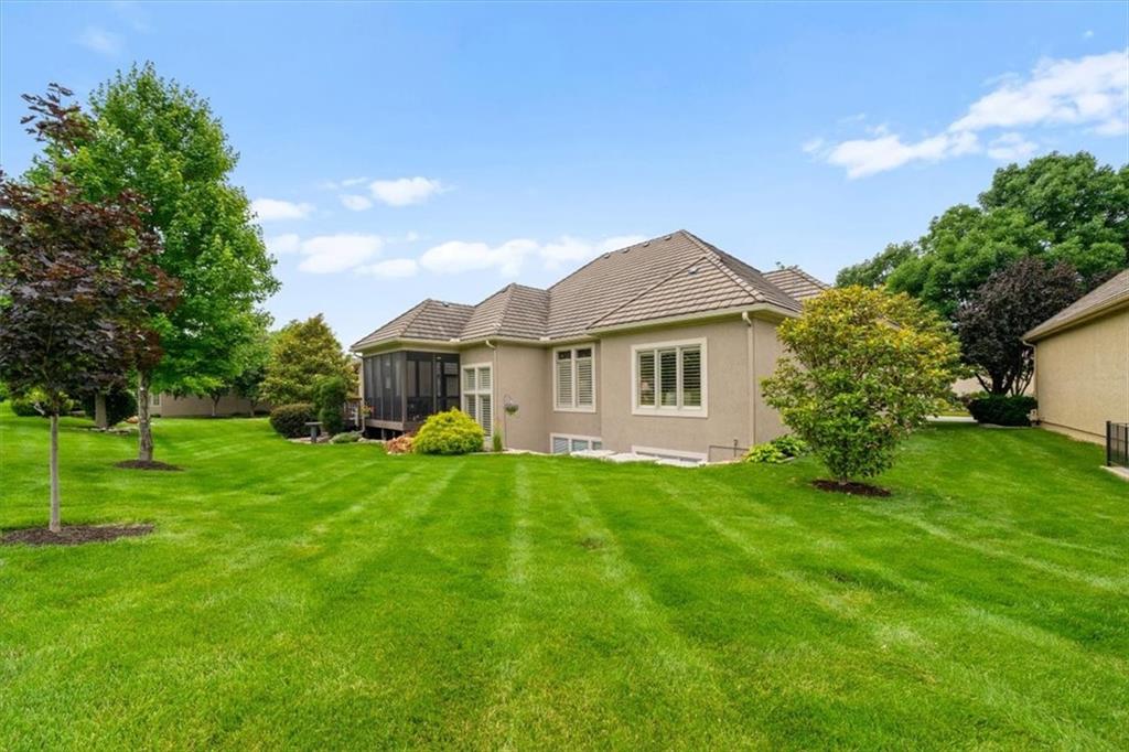 Welcome home to this wonderful reverse villa, a perfect blend of comfortable living and thoughtful updates. The main level is open and filled with natural light, featuring 2 bedrooms and 2.5 baths along with a spacious living room with custom built-ins and a decorative rock tile surround fireplace, a formal dining room, and breakfast area. The modern kitchen includes stainless steel appliances, walk-in pantry, under-cabinet lighting, and convenient slide-out drawers—perfect for home chefs and entertaining. Custom plantation shutters throughout the main level frame beautiful views of Falcon Ridge Golf Course. Step out to the screened-in porch overlooking the 18th fairway. With an east-facing view, it’s the perfect place to watch the sunrise with your morning coffee and, in the evening, enjoy happy hour or dinner. The attached composite deck invites guests outside to take in more golf course views and fire up the grill. The primary suite is a restful retreat with neutral finishes, walk-in closet, and spa-like bath with an ONYX shower. A 2nd bedroom and full bath on the main level make an ideal setup for overnight guests or a home office. A convenient laundry room with sink and folding counter completes the main floor. Downstairs, the finished lower level offers a spacious family room with wet bar and walk-in closet that’s perfect for games and entertainment. Two additional bedrooms, each with a walk-in closet, and full bath provide plenty of space for family or guests. A workshop with a direct staircase from the garage makes projects easy without bringing mess through the home. Numerous thoughtful upgrades include a composite deck, water mitigation system, central vacuum, backup battery for the sump pump, extensive storage, R-51 attic insulation, hardwood floors, new lighting, carpet, and exterior paint. Plus, lawn service and snow removal are provided.