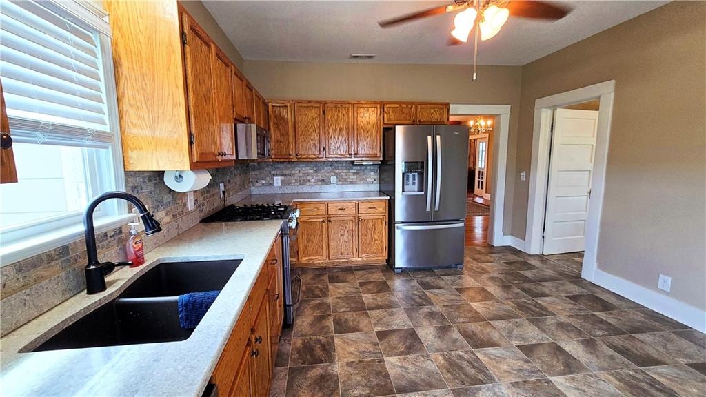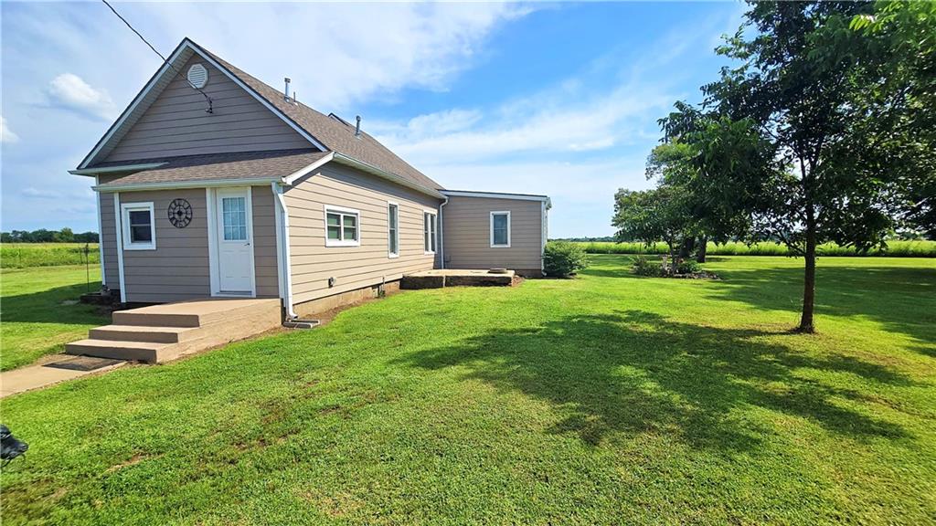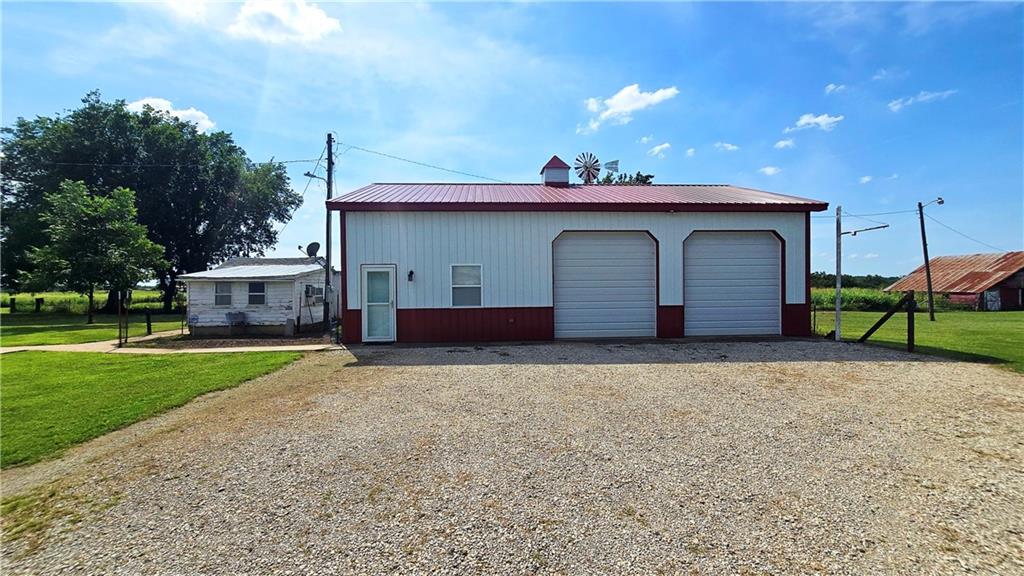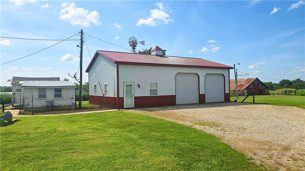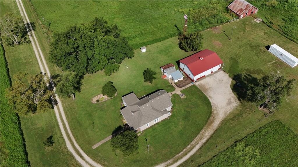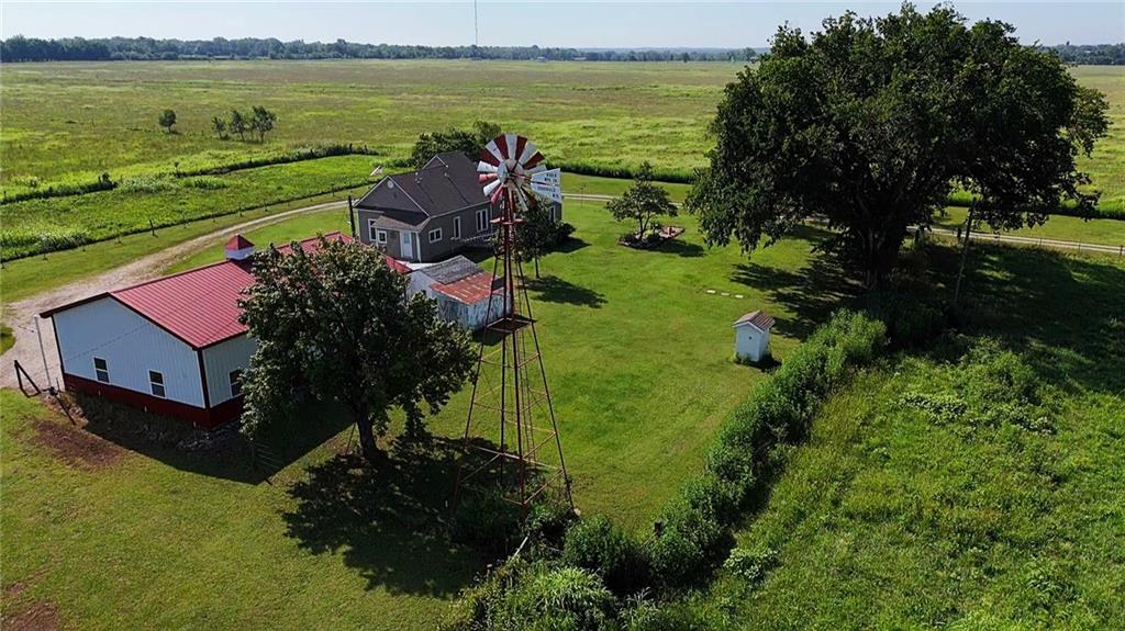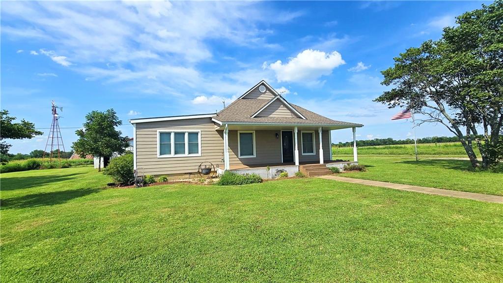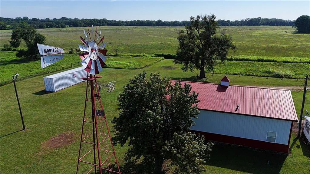House + Apartment!! Discover the perfect blend of country charm and modern convenience with this beautifully updated turn-of-the-century farmhouse and bonus apartment on 25 acres! The main home offers 1,430 SF of comfortable living space showcasing gorgeous refinished hardwood floors and tasteful updates throughout. The kitchen has been remodeled with oak cabinetry adorned with quartz countertops and stone tile backsplash. In addition to the kitchen remodel, the spacious bathroom has been updated as well. Two bedrooms are situated off the large living room, which adjoins a cozy den clad with solid knotty pine paneling. A mudroom and laundry area is conveniently located right inside the back door. The home features new central H&A, ensuring year-round comfort and efficiency, and high-speed fiber internet to allow for modern connectivity in the serene rural setting. Complementing the main residence is a versatile 1300 SF metal shop building that also has central H&A. One side houses an apartment that provides an additional 500 SF of living space consisting of a bedroom, full bathroom, and kitchen—ideal for guests, extended family, or even rental opportunities. On the other side, approximately 800 SF of shop space provides ample room for projects, hobbies, and storage, with two large 10x10 garage doors and convenient attic storage above. In addition to the shop, outbuildings include a 1,200 SF old metal barn, a canning shed with cellar, and a 40' shipping container complete with electric. Outside, the sprawling acreage is adorned with perimeter fencing, established landscaping, and a charming historic windmill with an original 90' well beneath (not in use). All of this is tucked back off the road, down a gated lane that provides privacy and security. This unique property offers the best of both worlds - the timeless appeal of a classic farmhouse, combined with the peace of mind that comes from knowing it has undergone extensive updates. The perfect homestead awaits!