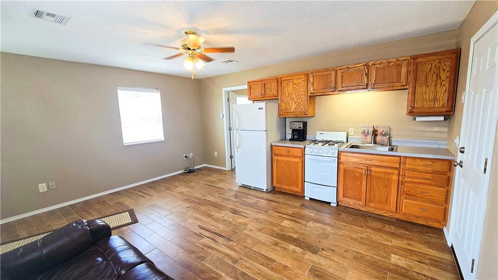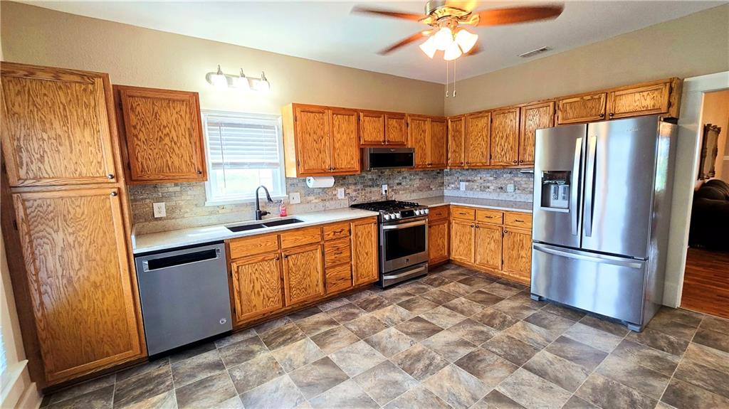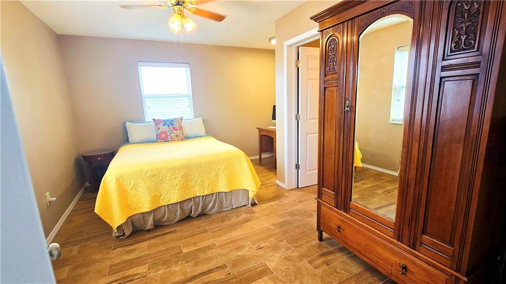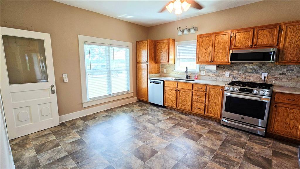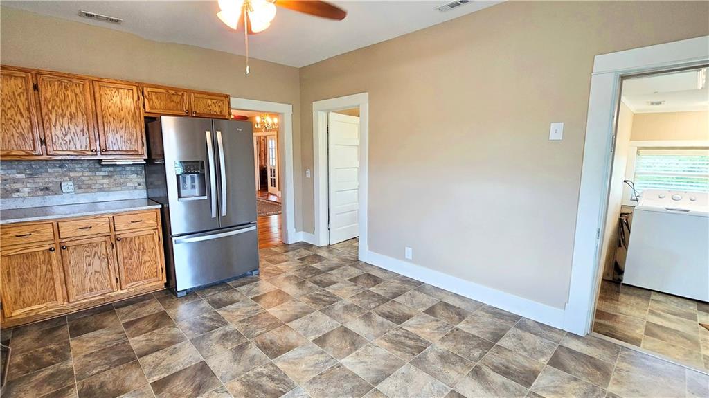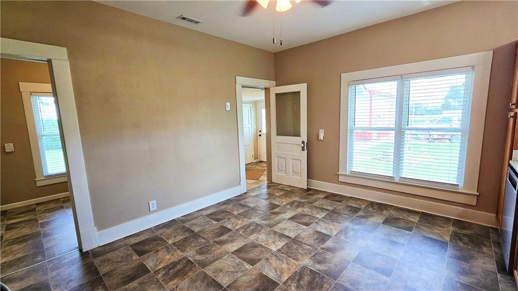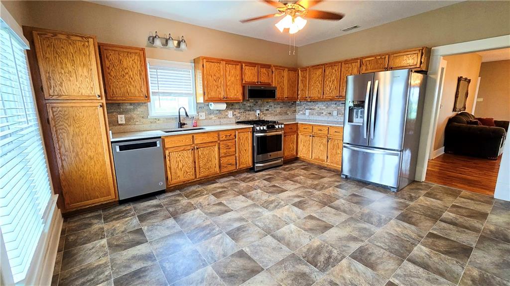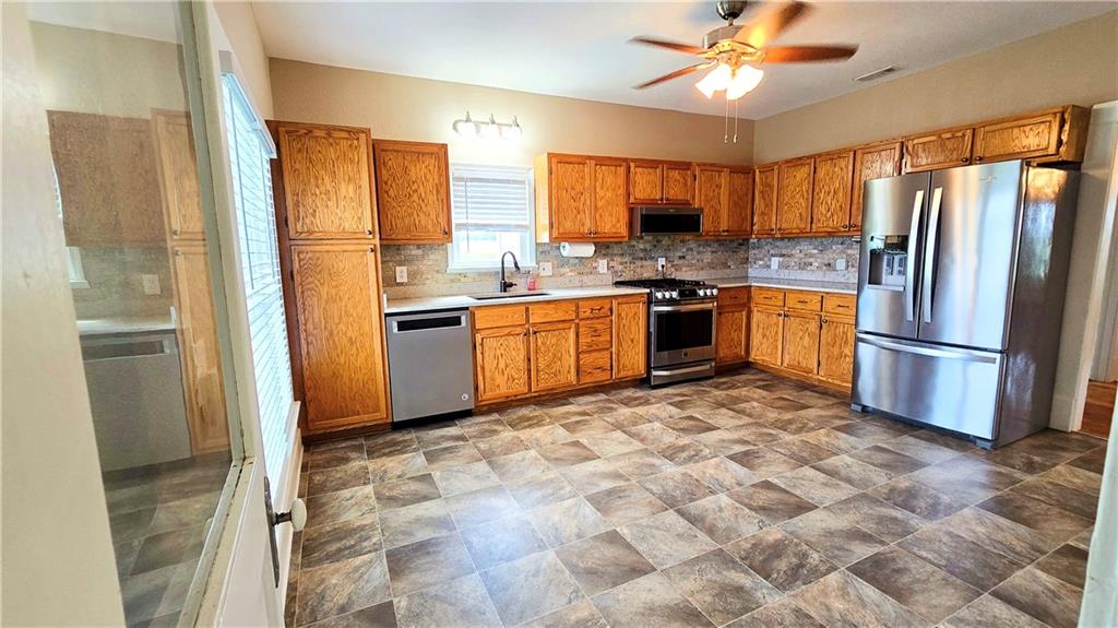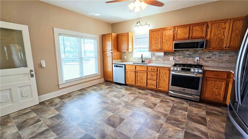 House + Apartment!! Discover the perfect blend of country charm and modern convenience with this beautifully updated turn-of-the-century farmhouse and bonus apartment on 25 acres! The main home offers 1,430 SF of comfortable living space showcasing gorgeous refinished hardwood floors and tasteful updates throughout. The kitchen has been remodeled with oak cabinetry adorned with quartz countertops and stone tile backsplash. In addition to the kitchen remodel, the spacious bathroom has been updated as well. Two bedrooms are situated off the large living room, which adjoins a cozy den clad with solid knotty pine paneling. A mudroom and laundry area is conveniently located right inside the back door. The home features new central H&A, ensuring year-round comfort and efficiency, and high-speed fiber internet to allow for modern connectivity in the serene rural setting. Complementing the main residence is a versatile 1300 SF metal shop building that also has central H&A. One side houses an apartment that provides an additional 500 SF of living space consisting of a bedroom, full bathroom, and kitchen—ideal for guests, extended family, or even rental opportunities. On the other side, approximately 800 SF of shop space provides ample room for projects, hobbies, and storage, with two large 10x10 garage doors and convenient attic storage above. In addition to the shop, outbuildings include a 1,200 SF old metal barn, a canning shed with cellar, and a 40' shipping container complete with electric. Outside, the sprawling acreage is adorned with perimeter fencing, established landscaping, and a charming historic windmill with an original 90' well beneath (not in use). All of this is tucked back off the road, down a gated lane that provides privacy and security. This unique property offers the best of both worlds - the timeless appeal of a classic farmhouse, combined with the peace of mind that comes from knowing it has undergone extensive updates. The perfect homestead awaits!