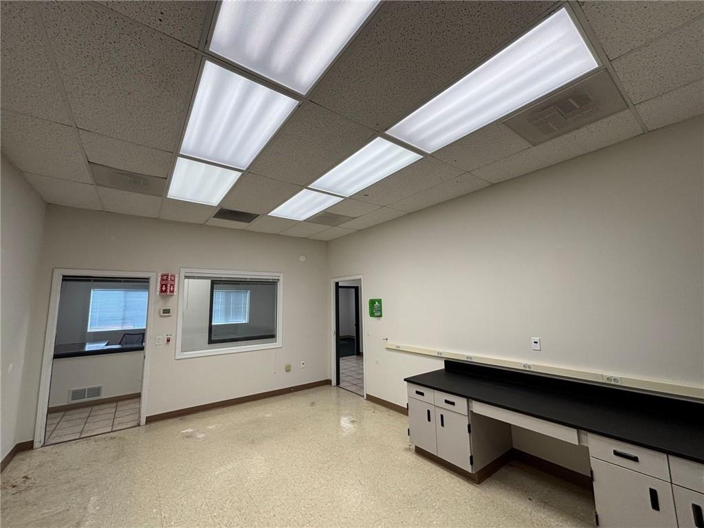Available for lease, this well-maintained flex office/warehouse space offers a versatile footprint in a highly accessible Lawrence, KS location just off 23rd Street and Haskell Avenue. The building totals approximately 5,000 SF, evenly divided between 2,500 SF of office space and 2,500 SF of warehouse space—an ideal setup for businesses needing both administrative and operational functionality under one roof. The office portion includes six private offices, two workrooms, a break room, two bathrooms, a copier room, and a wash room, providing ample space for staff and workflow needs. This area is fully climate-controlled with zoned heating and cooling (three thermostats) to maximize comfort and efficiency across different areas. The warehouse is heated, has A/C capabilities, and features two overhead roll-up doors—one 12'x11' drive-through and the other 12'x12' with rear drive-up access for efficient loading and unloading. With open floor space and 16' ceiling height, the warehouse is well suited for storage, light manufacturing, or a variety of other business operations, ensuring year-round usability. Additional property highlights include 17 dedicated parking spaces, wheelchair accessibility, and an installed security system. The site’s layout supports smooth traffic flow, while the combination of office and warehouse functionality provides a unique opportunity for businesses seeking flexibility and efficiency in a single location. The property owner is open to considering layout modifications and reasonable improvements. Positioned near one of Lawrence’s busiest commercial corridors, this property combines accessibility with practical amenities for businesses looking to expand or relocate.
