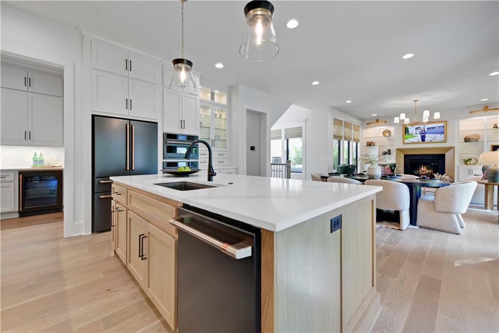 Welcome to 5215 W. 71st Terrace, a stunning residence built by the award-winning James Engle Custom Homes fully furnished and ready for viewing featuring the highly sought-after Aurora floor plan. This home features decorator curated selections, making this a great opportunity for buyers that prefer a more streamlined new home buying approach. Step inside to discover 5 bedrooms 5 full, and 1 half baths. The property has an incredible opportunity for a home office complete with a cozy fireplace and picturesque views of the amazing courtyard that is beautifully decorated and landscaped, creating the perfect setting for productivity or relaxation. The heart of the home is the gourmet kitchen, featuring high-end GE Café appliances and an additional prep kitchen as well as a walk in pantry making it a chef’s dream. The finished lower level is equally impressive, boasting a stylish wine closet, bar, and a plethora of additional features that enhance both comfort and convenience. Home features permanent holiday exterior soffit lighting making this great and convenient for any and all occasions. This home will truly be turn key and ready for it's new homeowners in March 2026. Don’t miss your chance to experience this exceptional property.