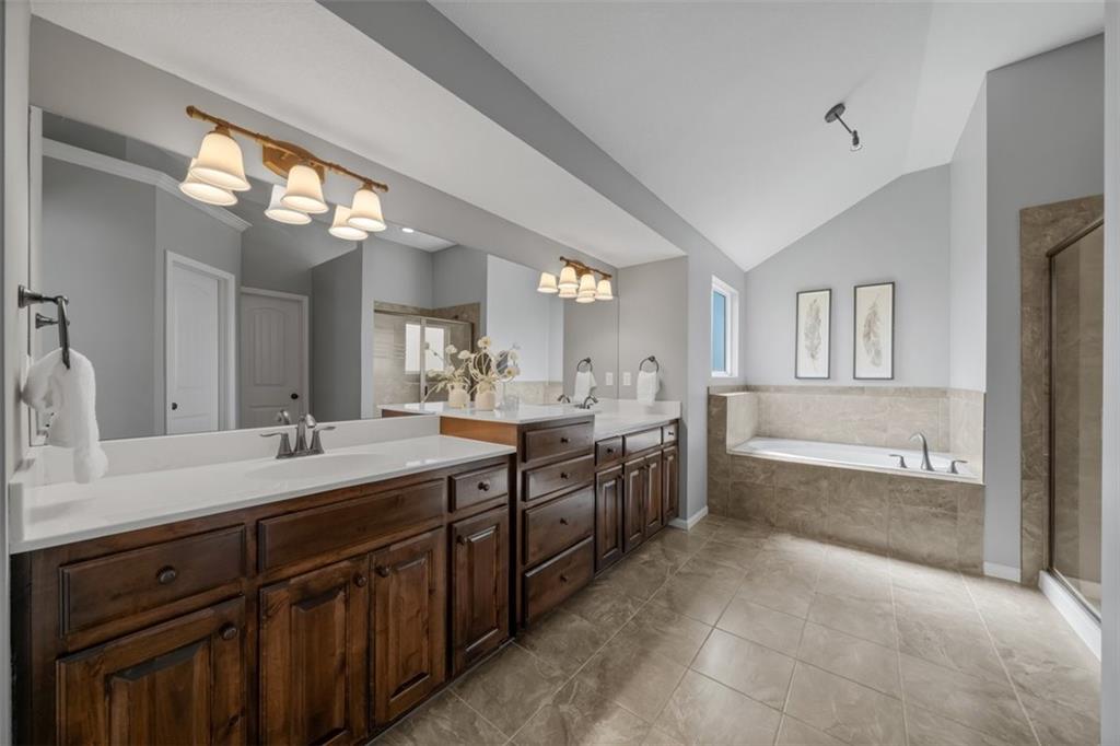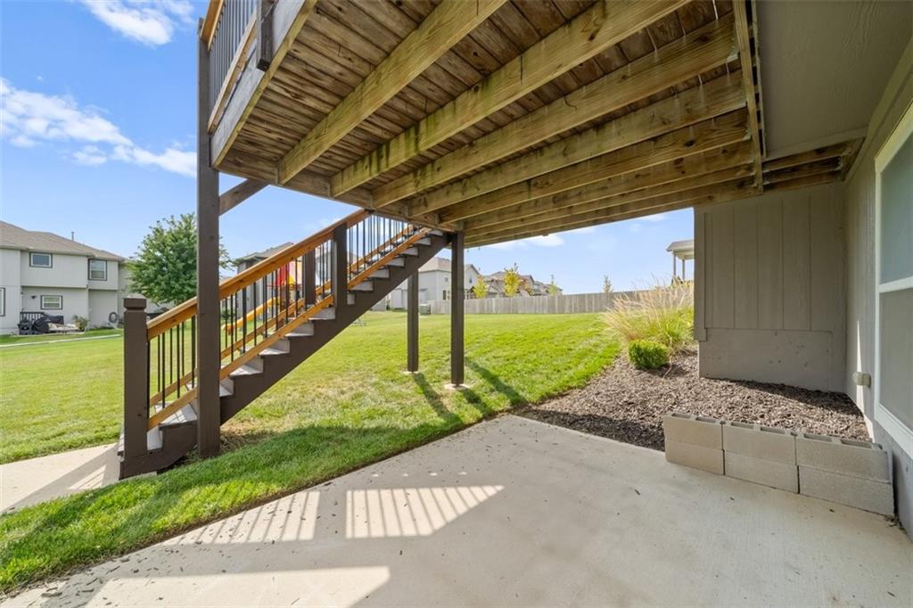 Beautifully Maintained and Move-In Ready! This stunning home sits on one of the largest lots in the neighborhood and shows like new. From the welcoming front porch to the bright, open-concept floor plan, every detail has been carefully designed. The main level features a versatile formal dining room that easily serves as a home office, playroom, or additional living space. Upstairs, the spacious primary suite offers an inviting ensuite bath, an oversized walk-in closet, and convenient access to the second-floor laundry. Each secondary bedroom includes its own walk-in closet and easy access to a full bath. The finished walkout basement features a large rec room, full bath, and sleek wet bar perfect for entertaining! There’s even space to add a fifth bedroom without compromising unfinished storage space if desired. Recent updates within the past five years include fresh interior and exterior paint, new carpet, updated appliances, several new windows, a new hot water heater, and more. The garage includes an extended-height door to accommodate larger vehicles plus a newly epoxy-coated floor. Perfectly located within minutes of top-rated schools, major highways, shopping, restaurants, coffee shops, Lake Olathe, and Cedar Niles Park with miles of scenic trails. Homes in this condition are hard to find. Don't let this one slip by!