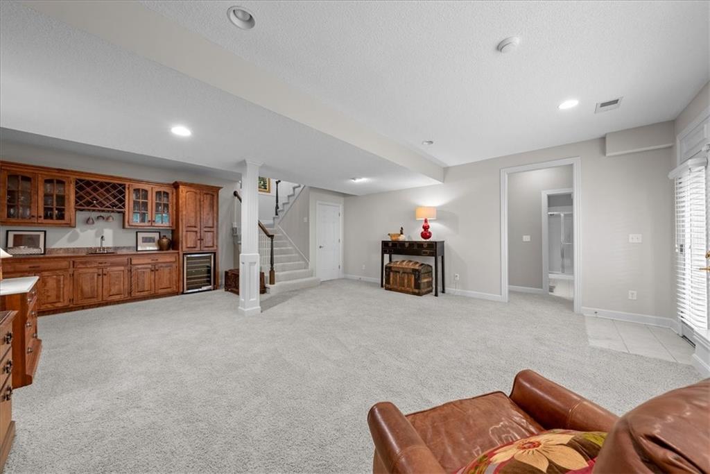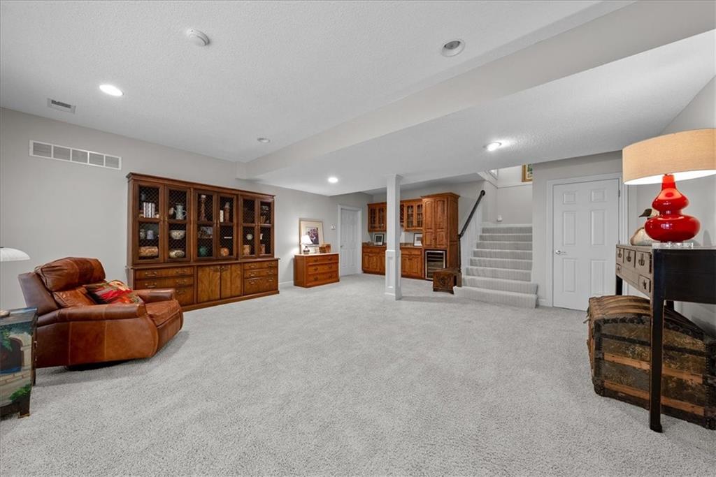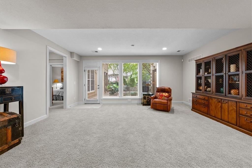 The Estate Sale is complete and the sellers are ready for offer on this beautiful maintenance-provided free-standing villa in the highly desirable Villas of St. Andrews. It sits on a premier interior walkout lot and showcases a very flexible floorplan with an office/second bedroom adjoining the primary suite. Offering 4 bedrooms and 2.1 bathrooms, the home has been refreshed with new carpet and paint in the main living areas. The spacious primary suite and secondary bedroom each feature large walk-in closets and are connected by a generous primary bath. The kitchen provides abundant cabinetry and opens to the dining area and hearth room, creating an inviting space for everyday living. A delightful three-season room overlooks the backyard, perfect for morning coffee or evening relaxation. The walkout finished lower level adds incredible versatility with two additional bedrooms, a full bath, and a spacious recreation room—ideal for guests or entertaining. Conveniently located in southern Johnson County, this exceptional villa offers both comfort and convenience in a sought-after neighborhood.