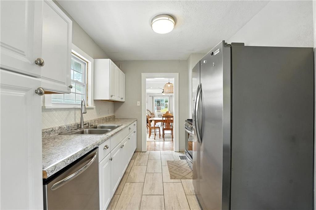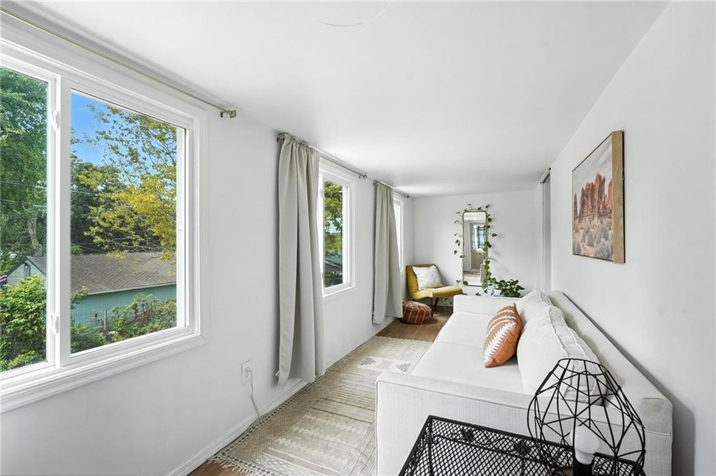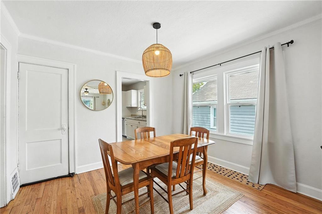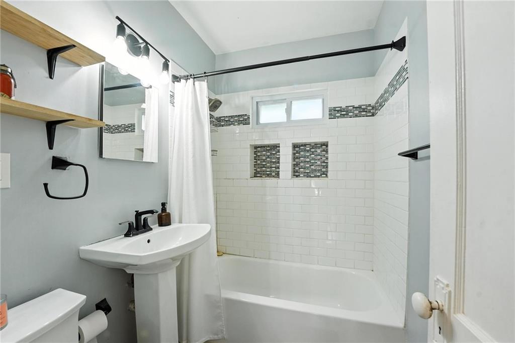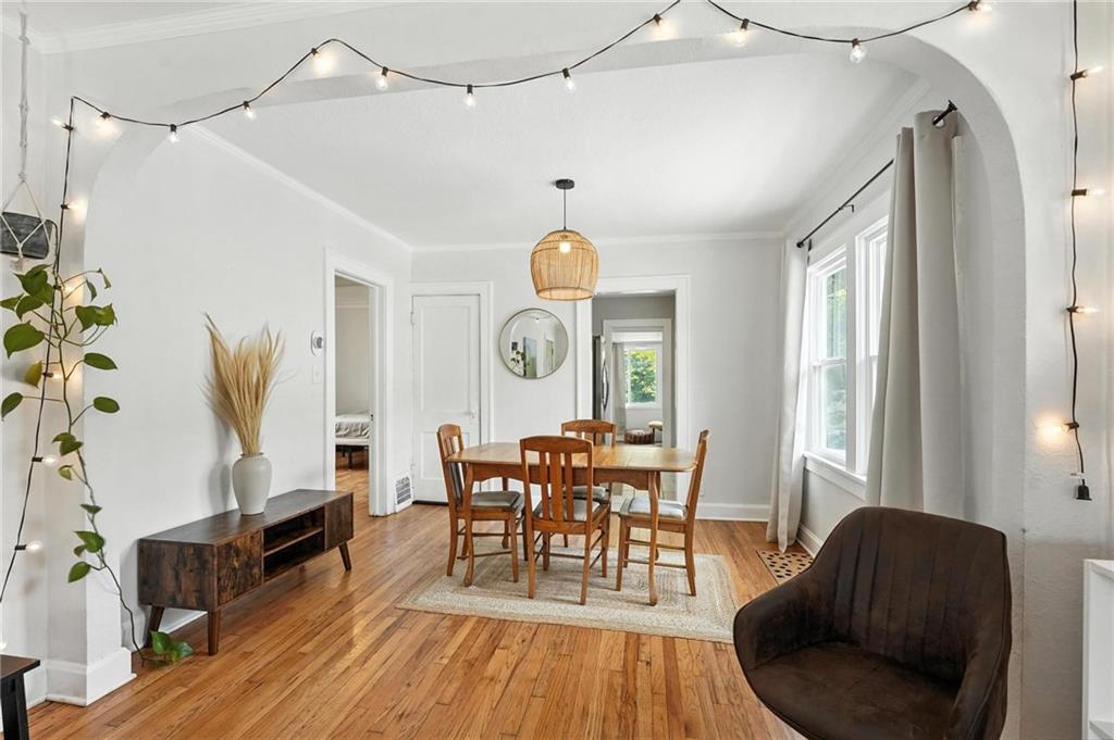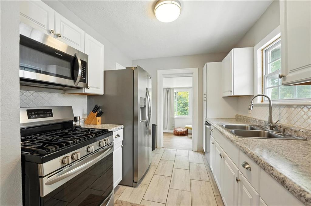 **Sellers are willing to contribute to the buyer's closing costs with an acceptable offer.** Charming home with the white picket fence of your dreams! New windows, a/c, water heater, gutters and refinished hardwood floors in 2022. This charming 2-bedroom, 1-bath bungalow is full of character, starting with its welcoming, covered front porch. Inside, the living room features hardwood floors, a brick fireplace, ceiling fan, and a large picture window that fills the space with natural light. The dining room showcases refinished hardwoods and an arched cased opening, creating a seamless flow into the updated kitchen with tile flooring, laminate counters, and newer stainless appliances including a gas stove. The recently finished sunroom with new windows and exterior door adds extra living space, perfect for relaxing or entertaining. Both bedrooms include hardwood floors, while the full bath offers a tiled shower surround. The stone basement provides storage and includes a garage door. Outside, enjoy the side deck, shared driveway, and rear parking. The attic includes windows and stairs, offering the potential to be converted into additional living space.