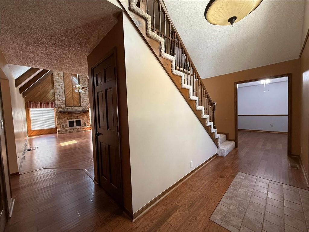 SELLER IS MOTIVIATE!!! Check out this gorgeous 1.5 story home located in the heart of Ridgefield community. This fabulous 3,642 sq. ft. 4 beds 3.5 baths home designed for luxury living space & entertaining is READY FOR A NEW OWNER. On the Main level we a Great room with tall ceiling, Master bedroom with spa like a private bath and the 2nd bedroom with full size bathroom private or could be share with guest. A formal dining area, ideal for hosting those special occasions, as well as an eat-in kitchen for your everyday meals nicely updated 5 years ago with new lights, brighter kitchen with island and plenty of cabinet/counter space. Eat-in kitchen area gives access to multi-level deck cover overseeing a beautiful backyard. Moving on to the Upper level we have 2 bedrooms and a full size bathroom with standing up shower. Cat walk overlooks the spacious Great room soaking in natural light, boasting its tall ceilings & beautiful stone fireplace. Basement finished with large work shop & craft area along with a fabulous family room with fine-looking brick fireplace & wet bar ideal for entertaining friend & family. Two Car Garages, plenty of parking spaces, Huge backyard, Extra Storage space. North Kansas City School District, Oak Park High School walking distance, Restaurants, Walmart, Hy-vee 1.8 miles, Easy access to all major HWY with short driving distance. This 3,642 sq ft. home have a lot to OFFERS! COME AND CHECK IT OUT TODAY. Google Fiber available.