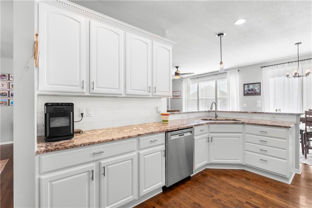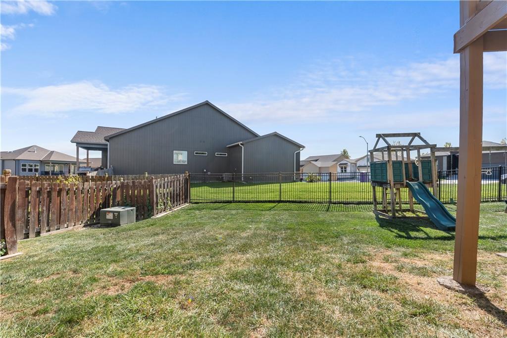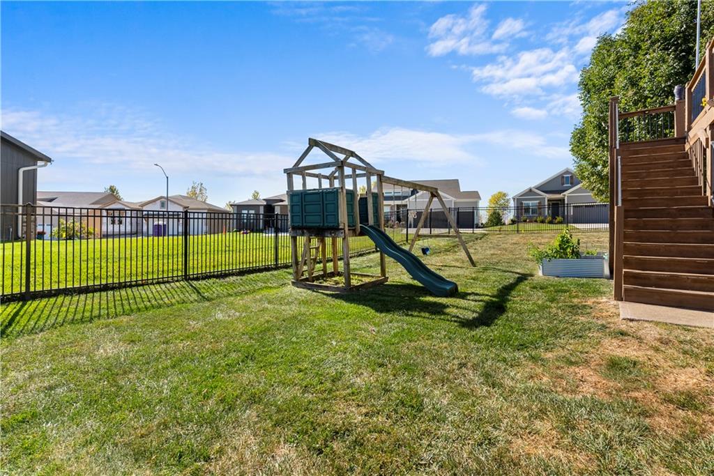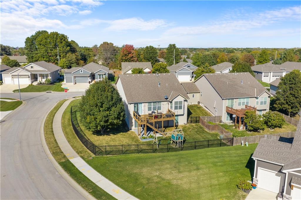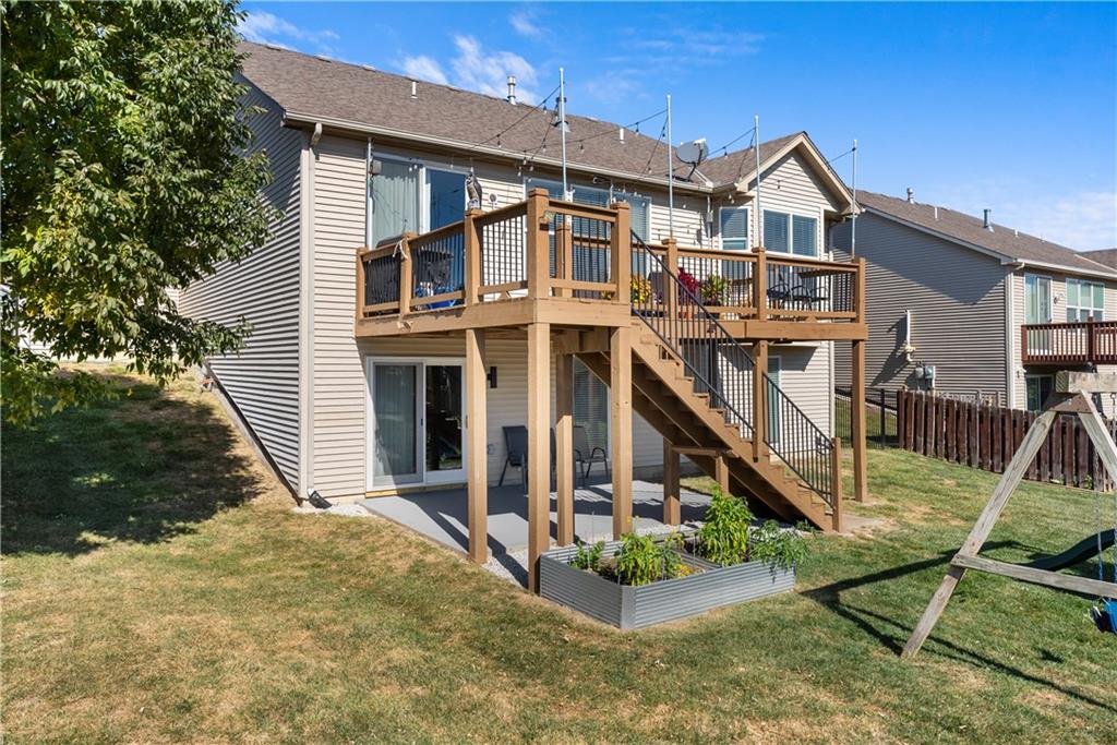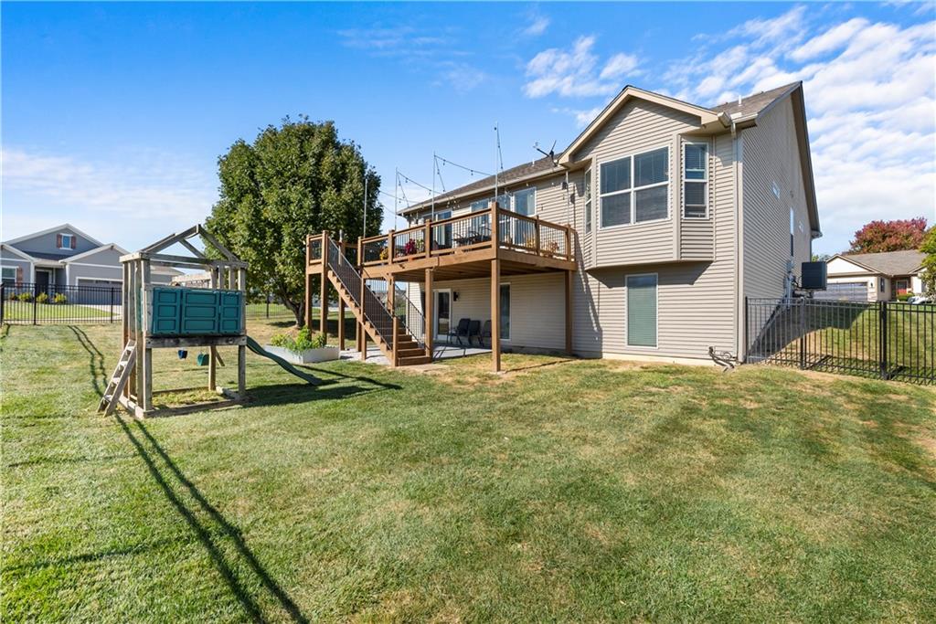 Set on a premium corner lot with a fenced backyard and beautiful south/west sunset exposure, this home offers true main-level living with a desirable split bedroom layout — the primary suite privately positioned on one side of the home and two secondary bedrooms on the other. The open floor plan features a bright living room with gas fireplace, formal dining room, and an updated eat-in kitchen with white cabinetry, granite counters, tile backsplash, pantry, stainless appliances, and double ovens. A finished walkout basement adds two additional bedrooms, a full bath, generous recreation space, and an oversized storage area — perfect for guests, teens, multigenerational living, or a home office setup. The main-level primary suite includes a vaulted ceiling, double sinks, separate tub and shower, plus a large walk-in closet (and a second additional closet). The laundry room is also conveniently located on the main level just off the garage entry, allowing truly stair-free day-to-day living. With over 1,800 sq ft on the main floor alone, there is room to spread out, host, and gather without sacrificing privacy or comfort. Outside, the fenced yard and corner placement provide extra space and a more open feel from neighboring homes. Enjoy golden-hour evenings on the 12x24 deck or additional privacy on the lower patio overlooking the yard. The home has been well cared for and offers the ideal combination of functional layout, generous square footage, and natural light. New roof prior to closing. A fantastic fit for anyone seeking one-level living without giving up space, storage, or flexibility. Easy access to major routes and local shopping means you keep suburban tranquility without sacrificing convenience.