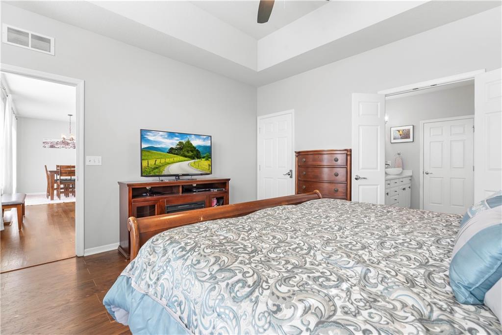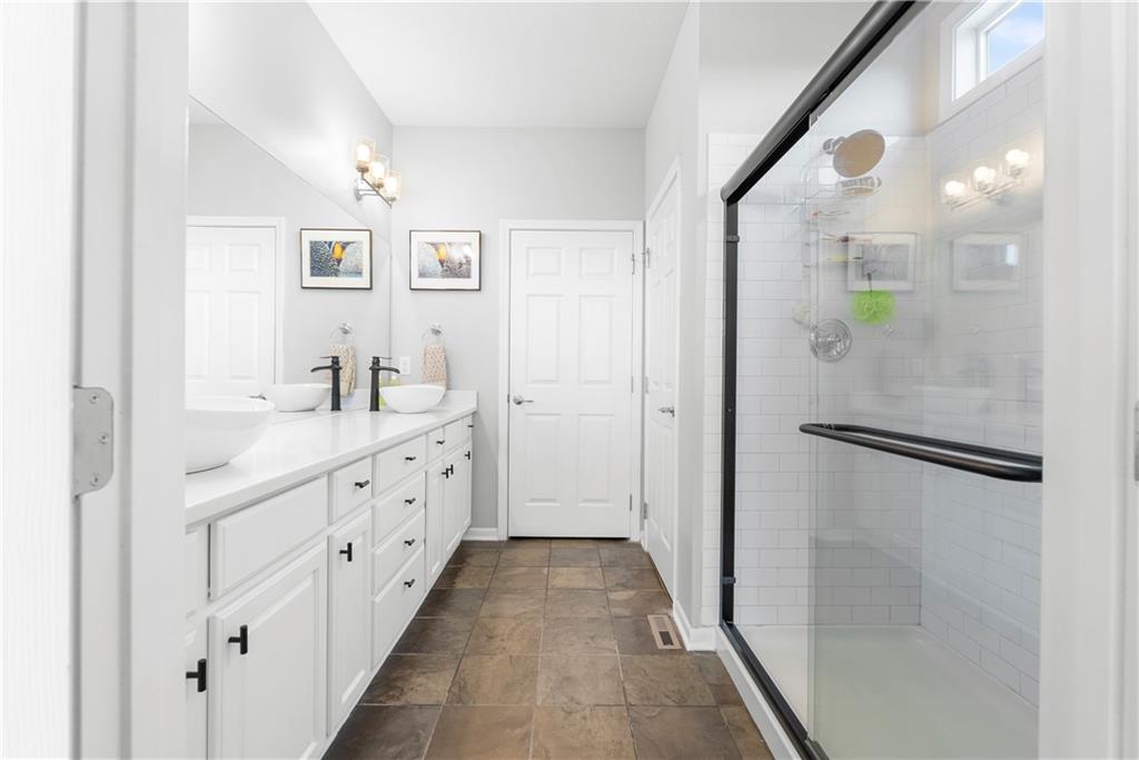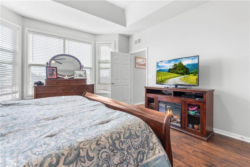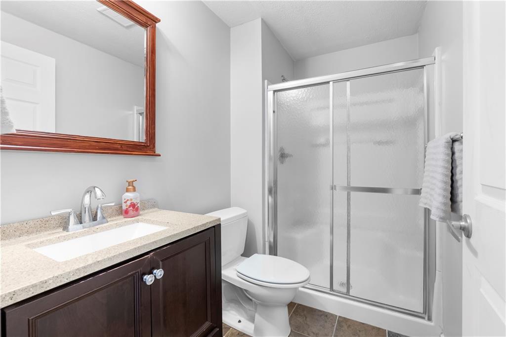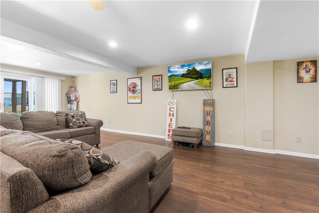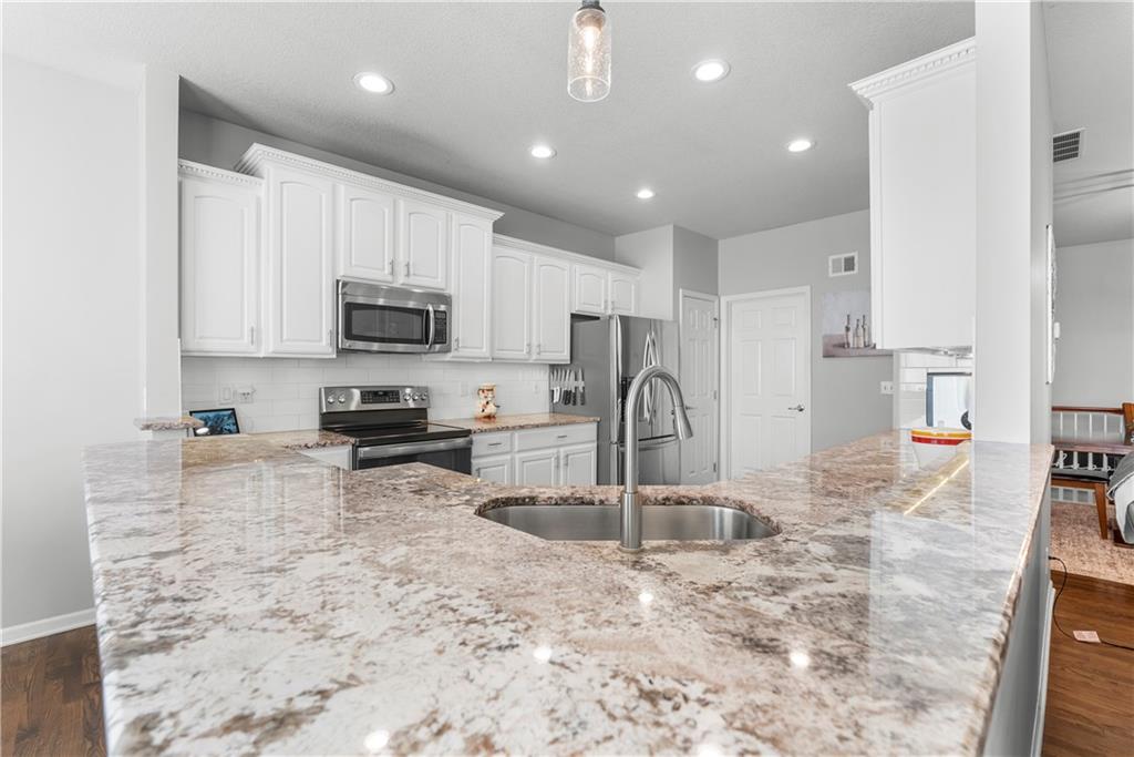 Set on a premium corner lot with a fenced backyard and beautiful south/west sunset exposure, this home offers true main-level living with a desirable split bedroom layout — the primary suite privately positioned on one side of the home and two secondary bedrooms on the other. The open floor plan features a bright living room with gas fireplace, formal dining room, and an updated eat-in kitchen with white cabinetry, granite counters, tile backsplash, pantry, stainless appliances, and double ovens. A finished walkout basement adds two additional bedrooms, a full bath, generous recreation space, and an oversized storage area — perfect for guests, teens, multigenerational living, or a home office setup. The main-level primary suite includes a vaulted ceiling, double sinks, separate tub and shower, plus a large walk-in closet (and a second additional closet). The laundry room is also conveniently located on the main level just off the garage entry, allowing truly stair-free day-to-day living. With over 1,800 sq ft on the main floor alone, there is room to spread out, host, and gather without sacrificing privacy or comfort. Outside, the fenced yard and corner placement provide extra space and a more open feel from neighboring homes. Enjoy golden-hour evenings on the 12x24 deck or additional privacy on the lower patio overlooking the yard. The home has been well cared for and offers the ideal combination of functional layout, generous square footage, and natural light. New roof prior to closing. A fantastic fit for anyone seeking one-level living without giving up space, storage, or flexibility. Easy access to major routes and local shopping means you keep suburban tranquility without sacrificing convenience.