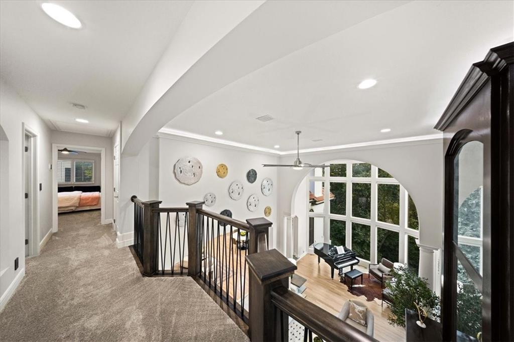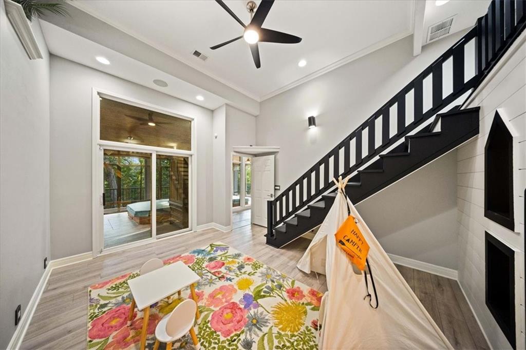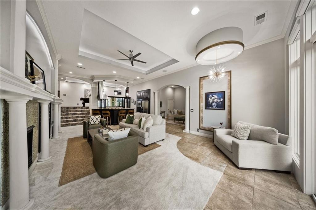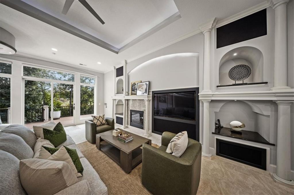 Priced below appraised value! Luxury Living in Falcon Ridge – A Private, One-of-a-Kind Retreat. Welcome to luxury living redefined in this extraordinary 6,300 sq. ft. estate nestled on a private, wooded cul-de-sac in the sought-after Falcon Ridge community. Perched among the treetops with no rear neighbors and breathtaking views of the Falcon Ridge Golf Course and a tranquil water feature, this residence offers unmatched privacy, serenity, and sophistication. Blending Mediterranean architectural charm with refined modern design, the home showcases over $450,000 in recent upgrades, including a chef-inspired gourmet kitchen with custom dovetail soft-close cabinetry, full-size Sub-Zero refrigerator and freezer, quartzite countertops, Cove dishwasher, backsplash and designer ambient lighting. The rare two-tiered lower level boasts soaring ceilings, a home office, expansive recreational space, a climate-controlled room prepped for a 10-person hot tub, and a secret door leading to a hidden storage room—perfect for seasonal decor or valuables. A $40,000 indoor playroom and thoughtfully designed laundry room on main level with built-in pet crates add functionality for the modern lifestyle. No detail has been overlooked—from Hunter Douglas window treatments, rich hardwood floors, custom curved staircase, new carpeting, Legrand smart outlets, whole-home audio, state-of-the-art electronics, water softener, and a premium RO water system. Outdoors, step into meticulously manicured English-style tiered gardens with curated perennials, mature trees, shrubs, flagstone hardscapes, and a charming gazebo—perfect for garden parties or peaceful mornings. The show-stopping screened-in porch features low-maintenance Trex decking, a cozy stone fireplace, a full outdoor kitchen, and generous seating for intimate evenings under the stars. This is not just a home—it's a luxurious private sanctuary, perfectly tailored for entertaining, relaxing, and creating unforgettable memories.