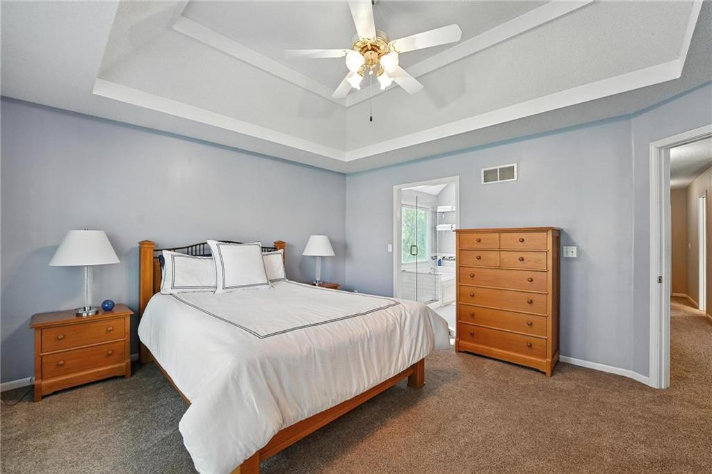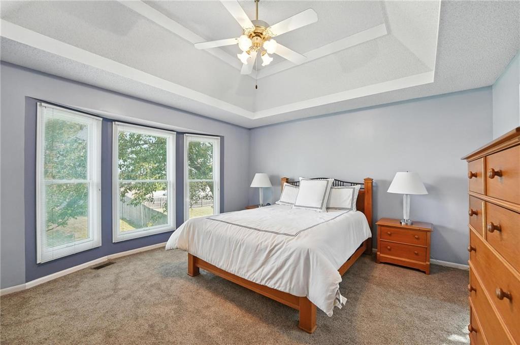 Welcome to this one-owner beauty in the highly sought-after New Mark Subdivision! This beautifully maintained Atrium Split is light and bright with it's wall of Pella windows and offers 3 bedrooms, 2.5 baths, and a spacious loft—perfect for a home office, reading nook, or play space. The finished sub-basement provides additional living space and could serve as a non-conforming 4th bedroom, theatre room or home office. Fresh new carpet adds to the inviting feel, and you’ll appreciate the pride of ownership that shines through every detail. This home is spotless and has been lovingly cared for and is truly move-in ready. Conveniently located on a quiet cul-de-sac lot near schools, parks, shopping, and dining, this home combines comfort and convenience in one of Kansas City’s most desirable neighborhoods.